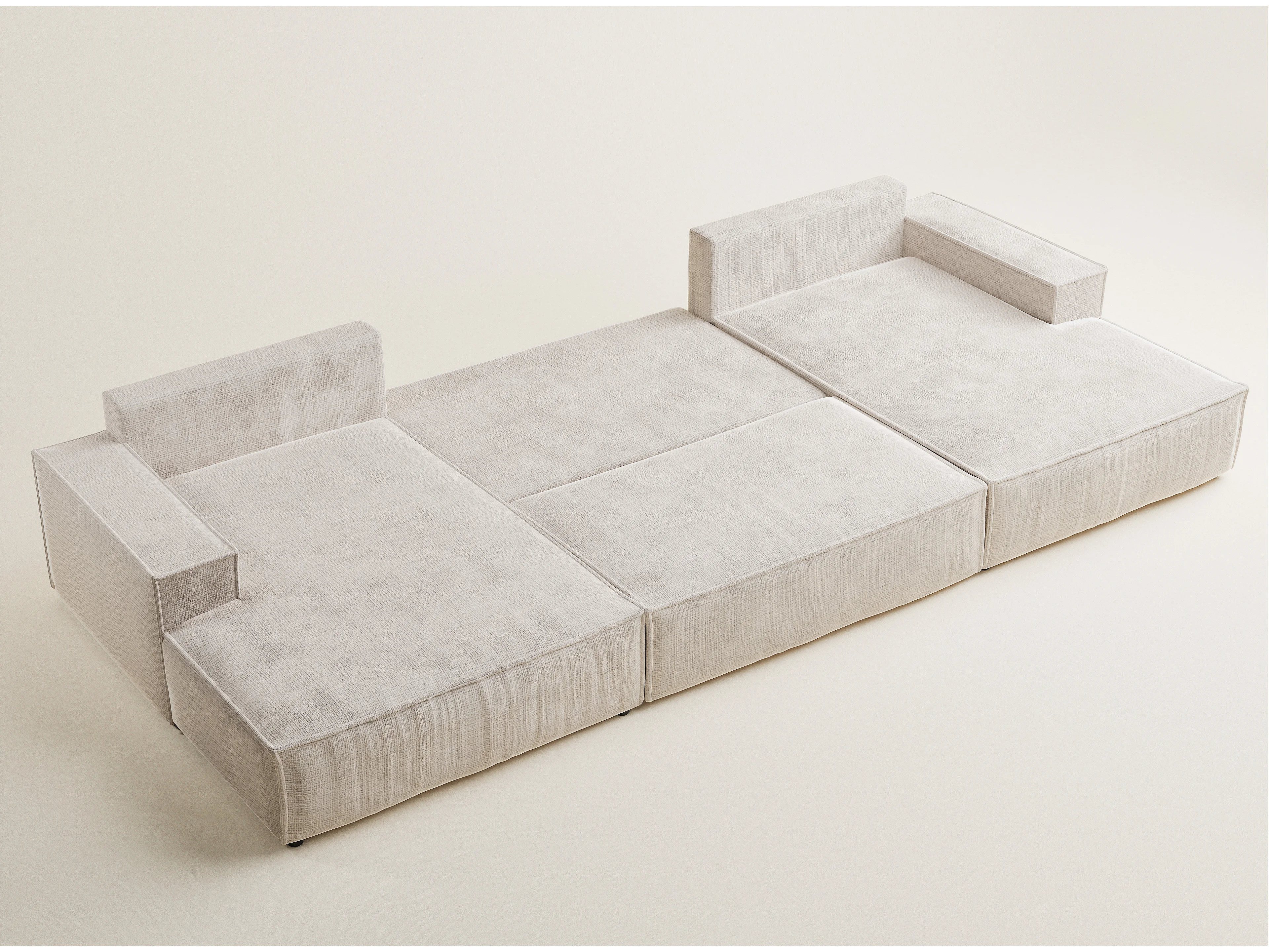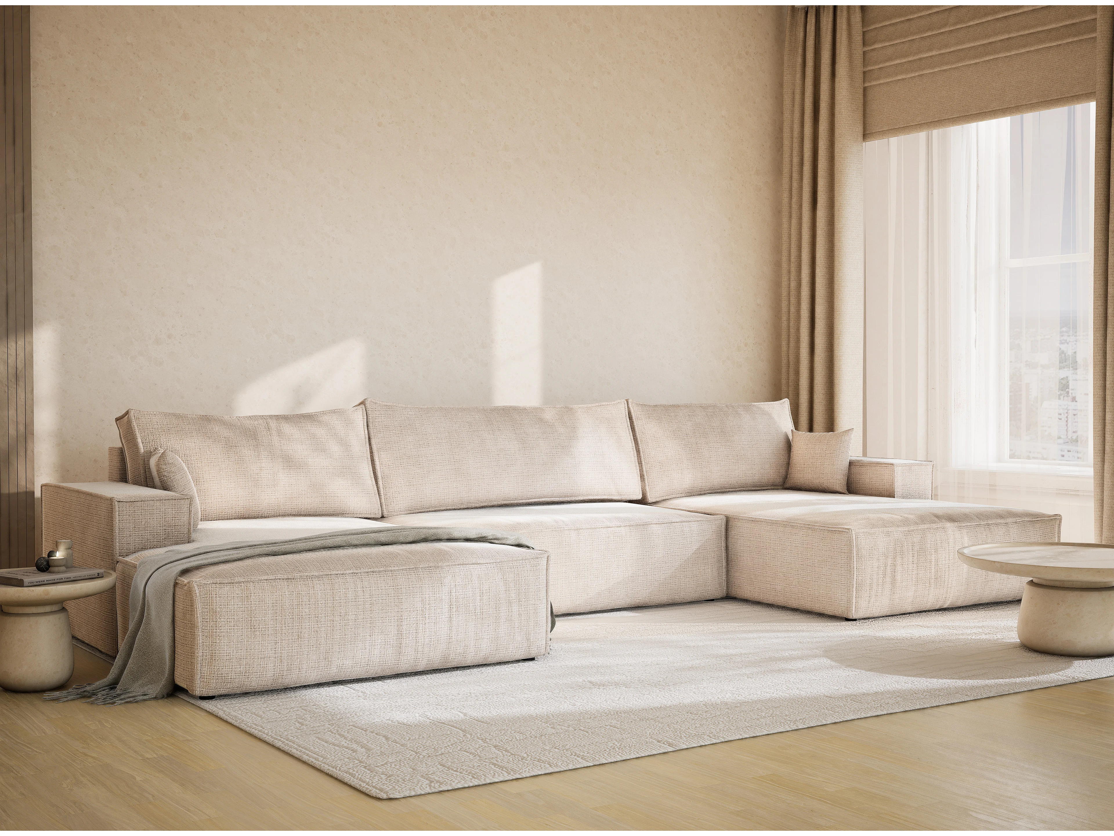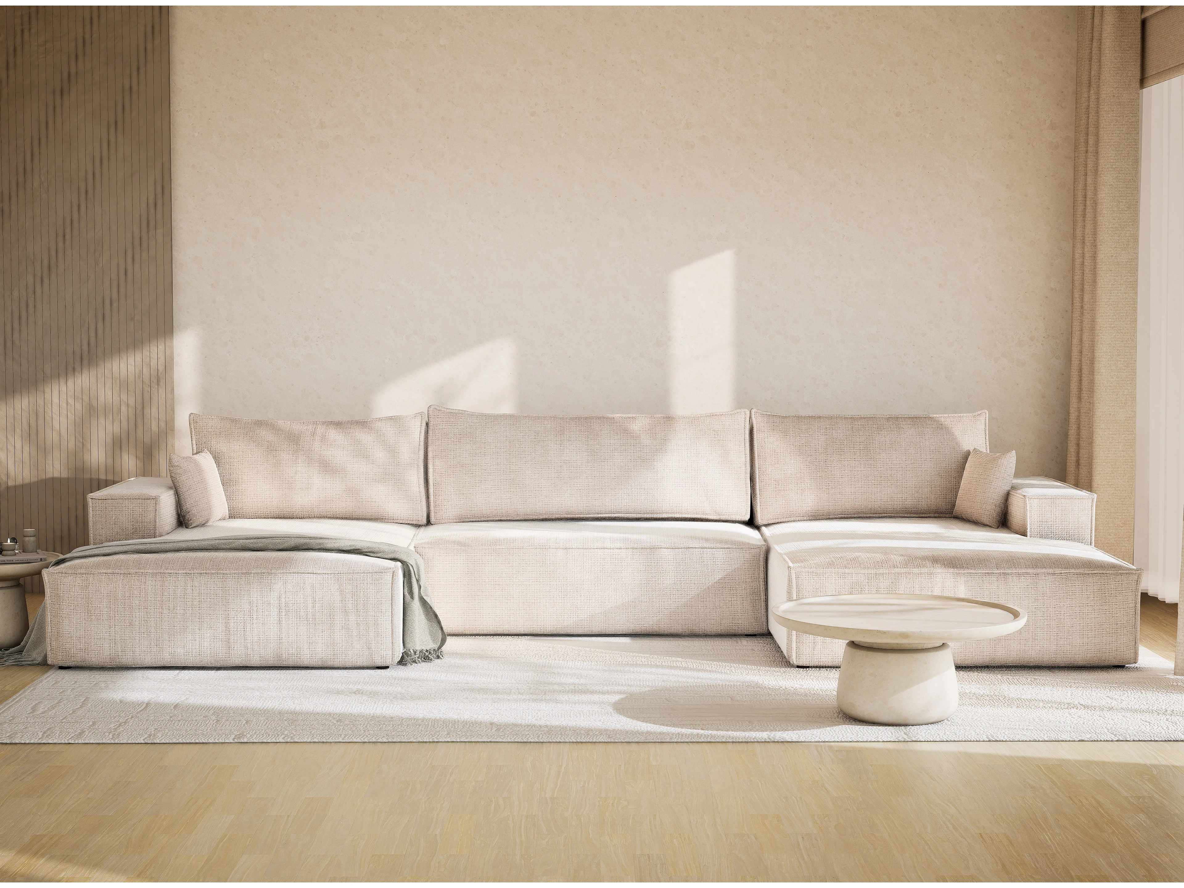 Canapé d'angle panoramique avec fonction lit en tissu chenille creme KYOTO