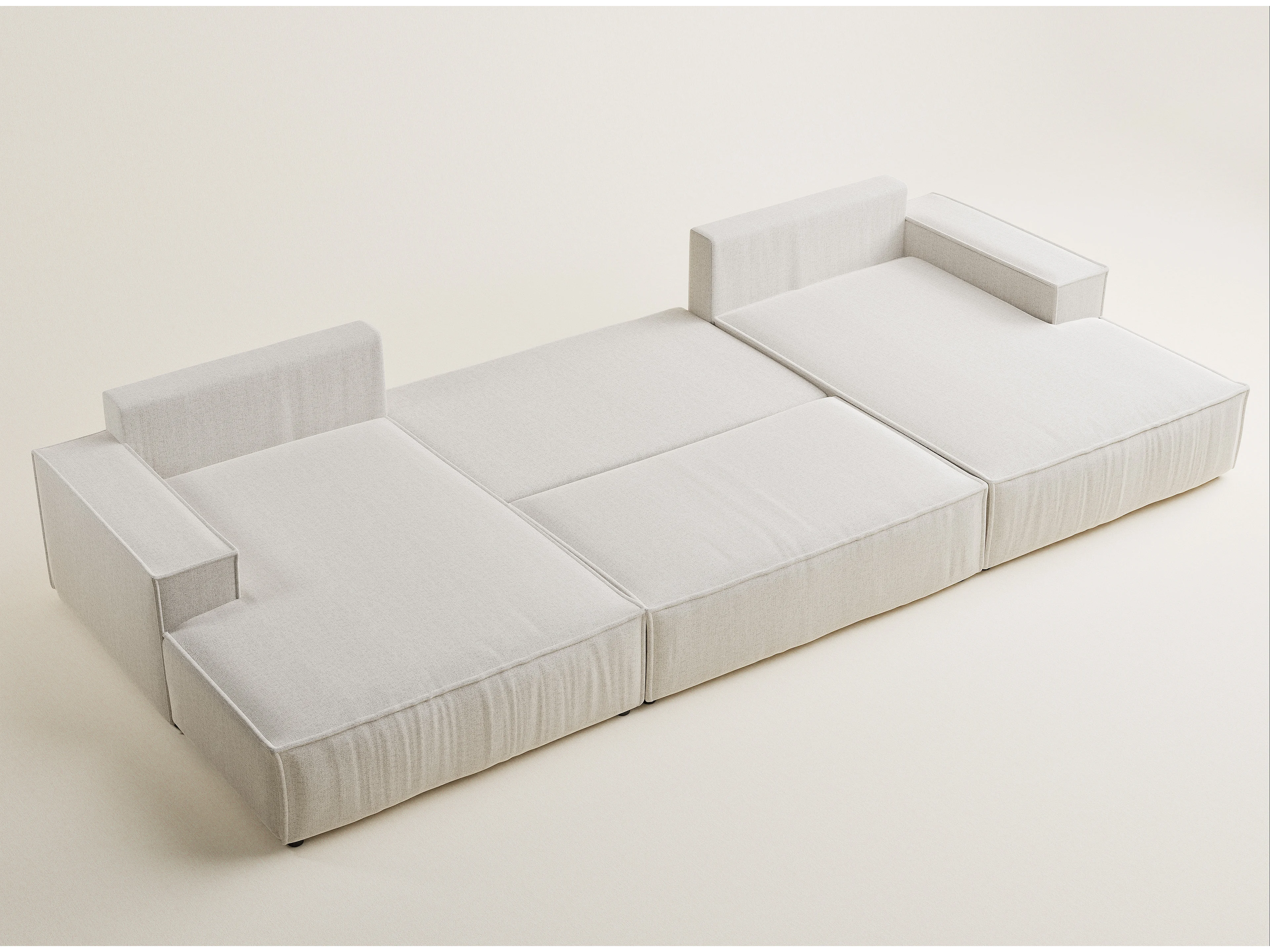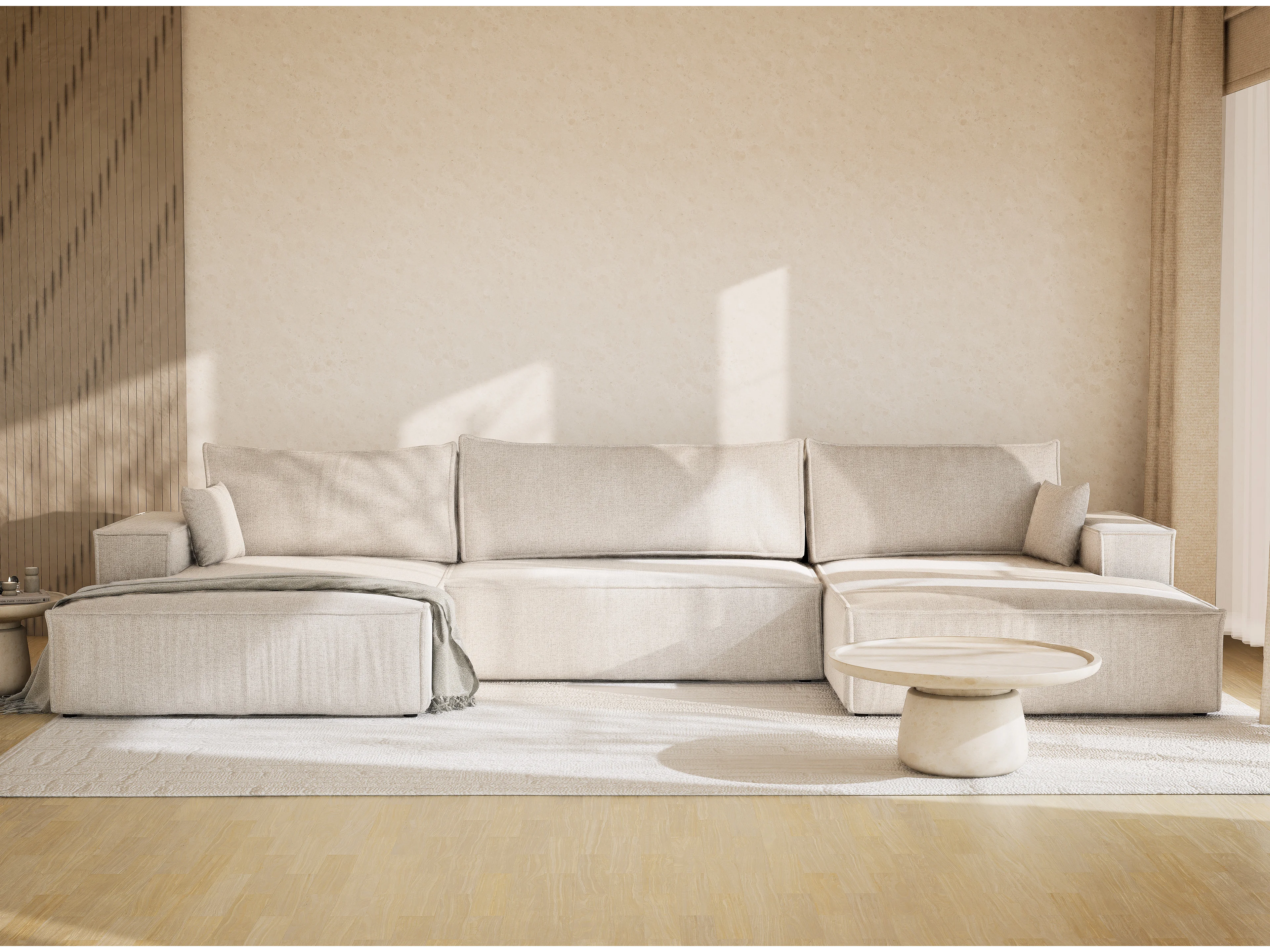 Canapé d'angle panoramique avec fonction lit en tissu tressé beige clair KYOTO