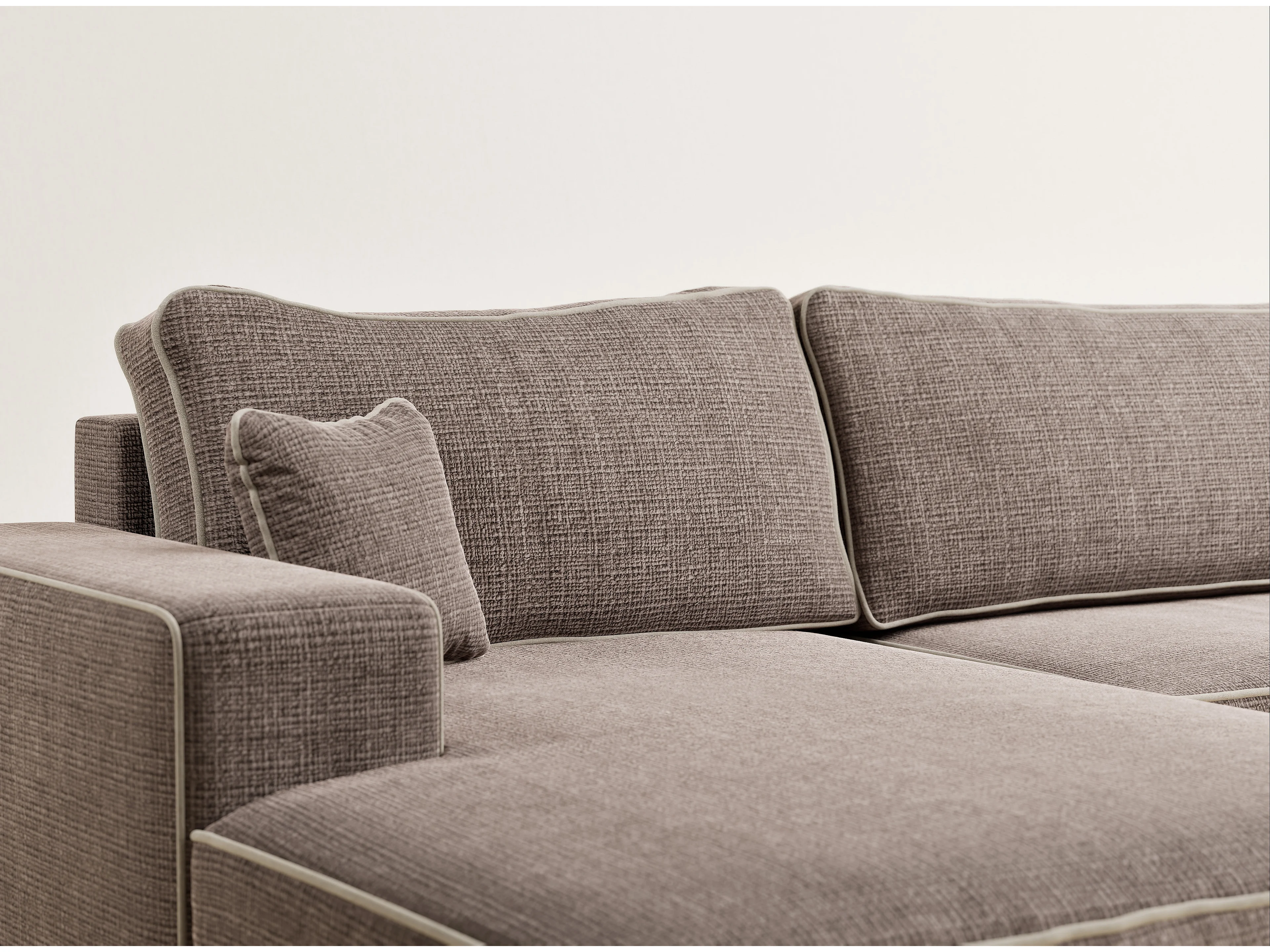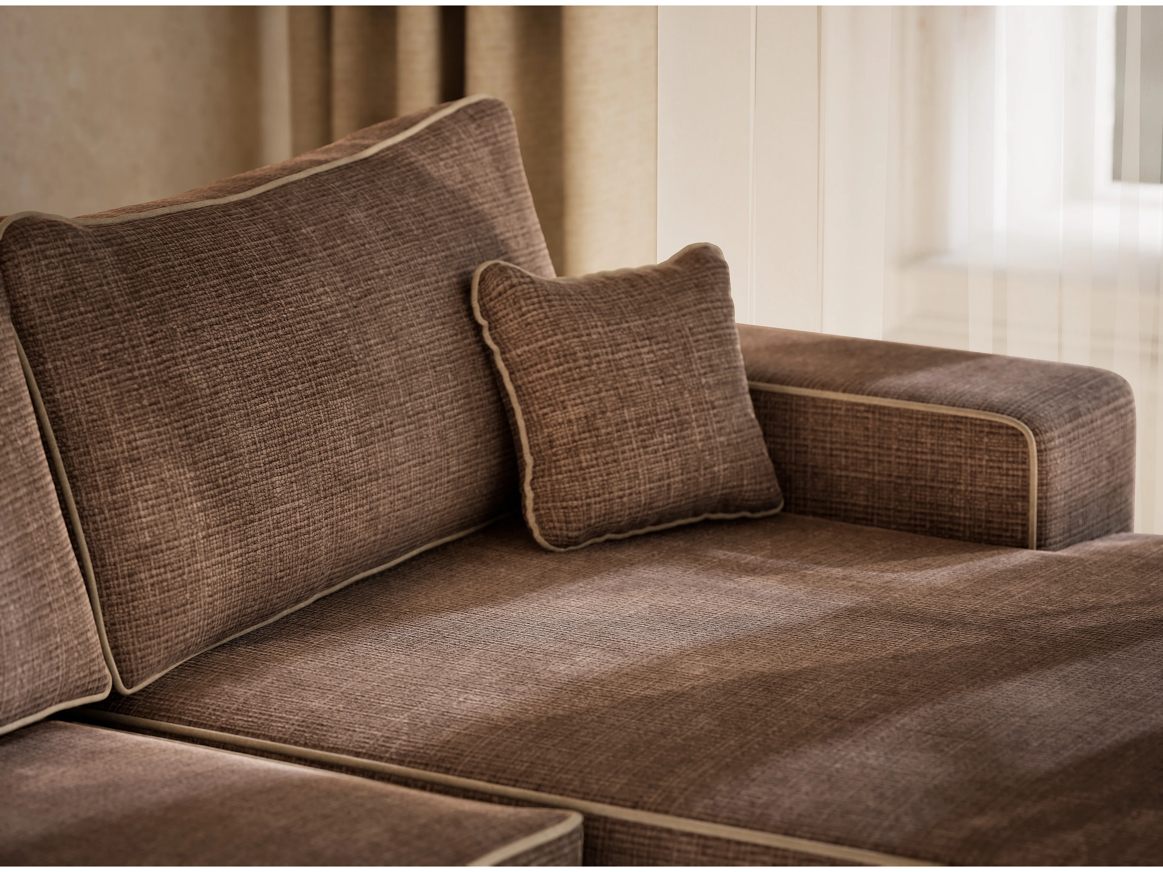 Canapé d'angle panoramique convertible en tissu chenille brun-beige DESEO