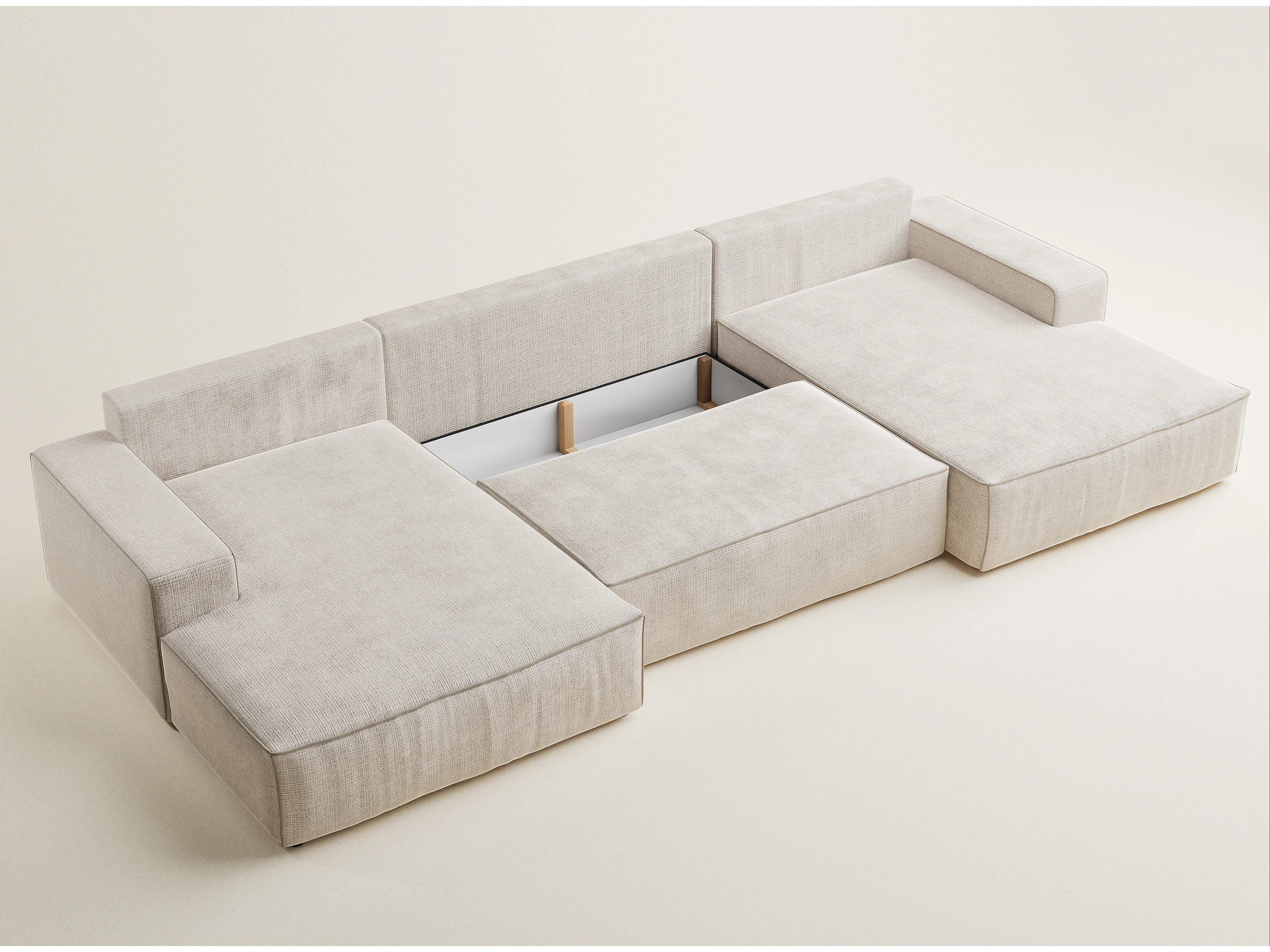 Canapé d'angle panoramique convertible en tissu chenille creme-beige DESEO