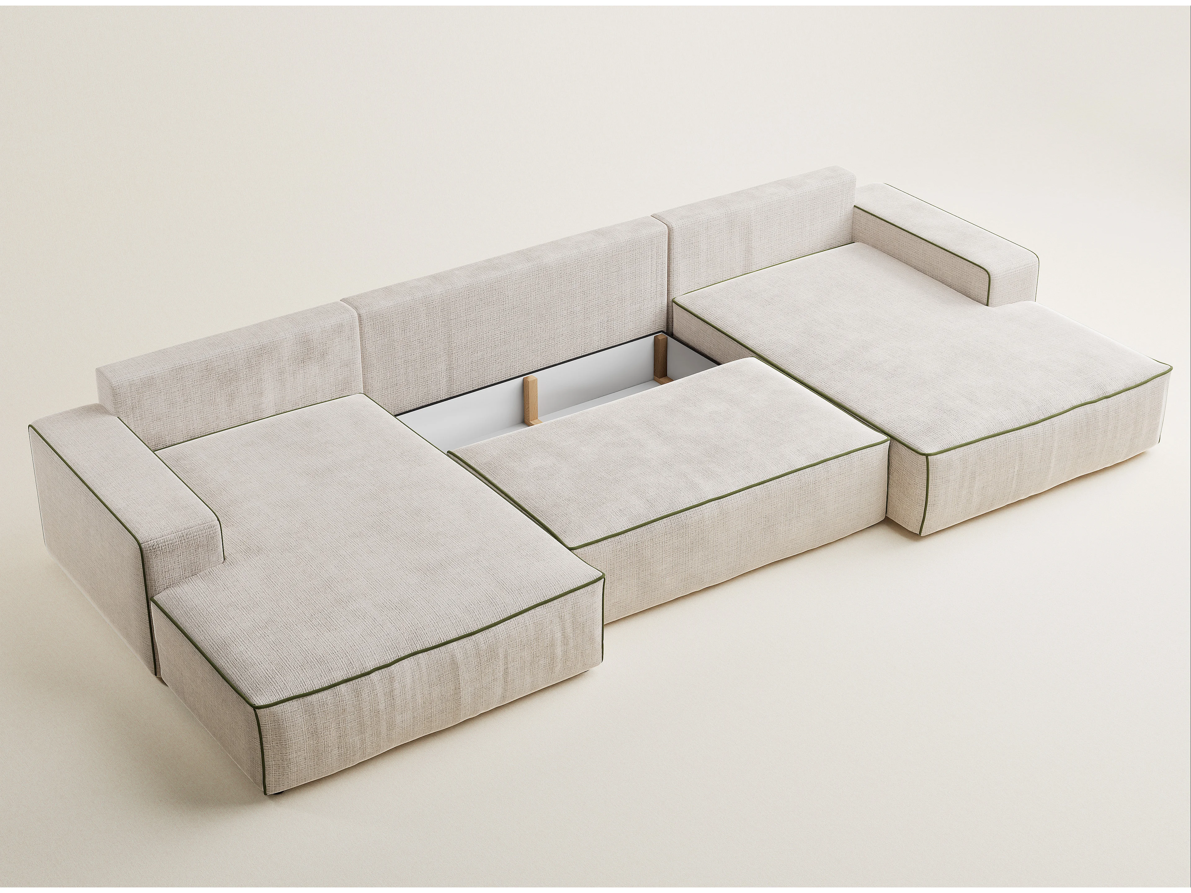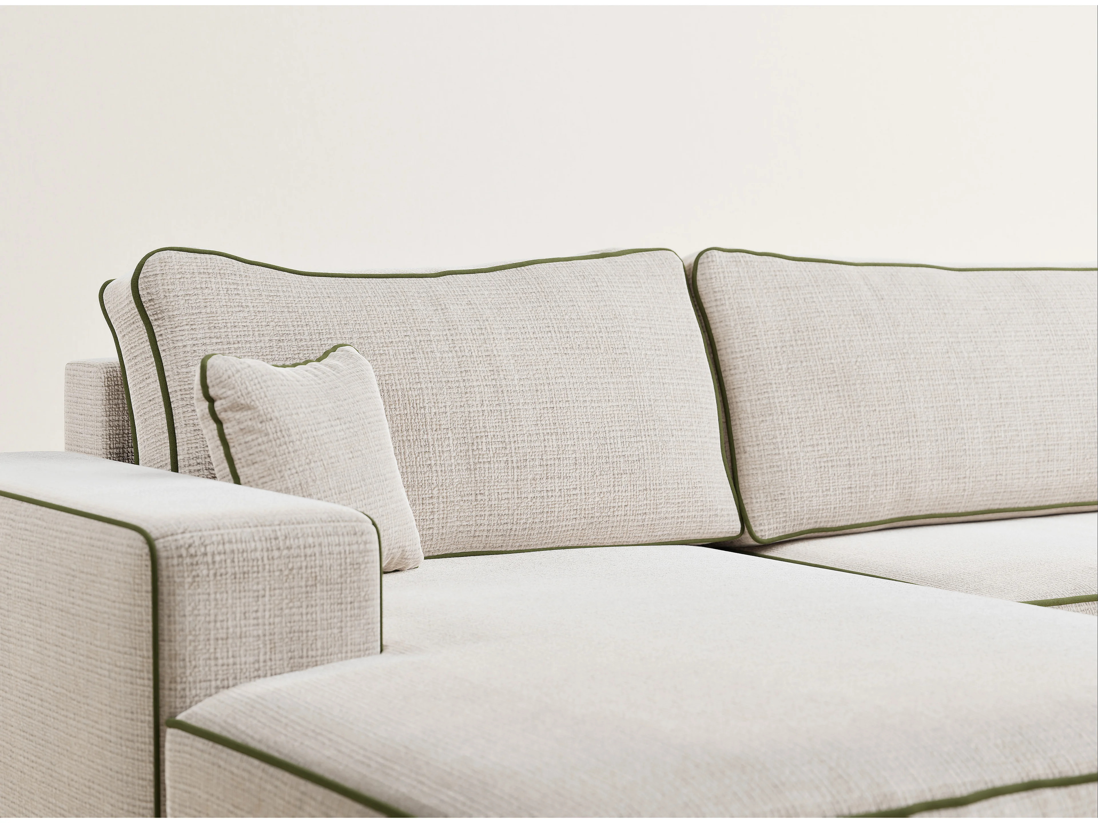 Canapé d'angle panoramique convertible en tissu chenille creme-vert olive DESEO