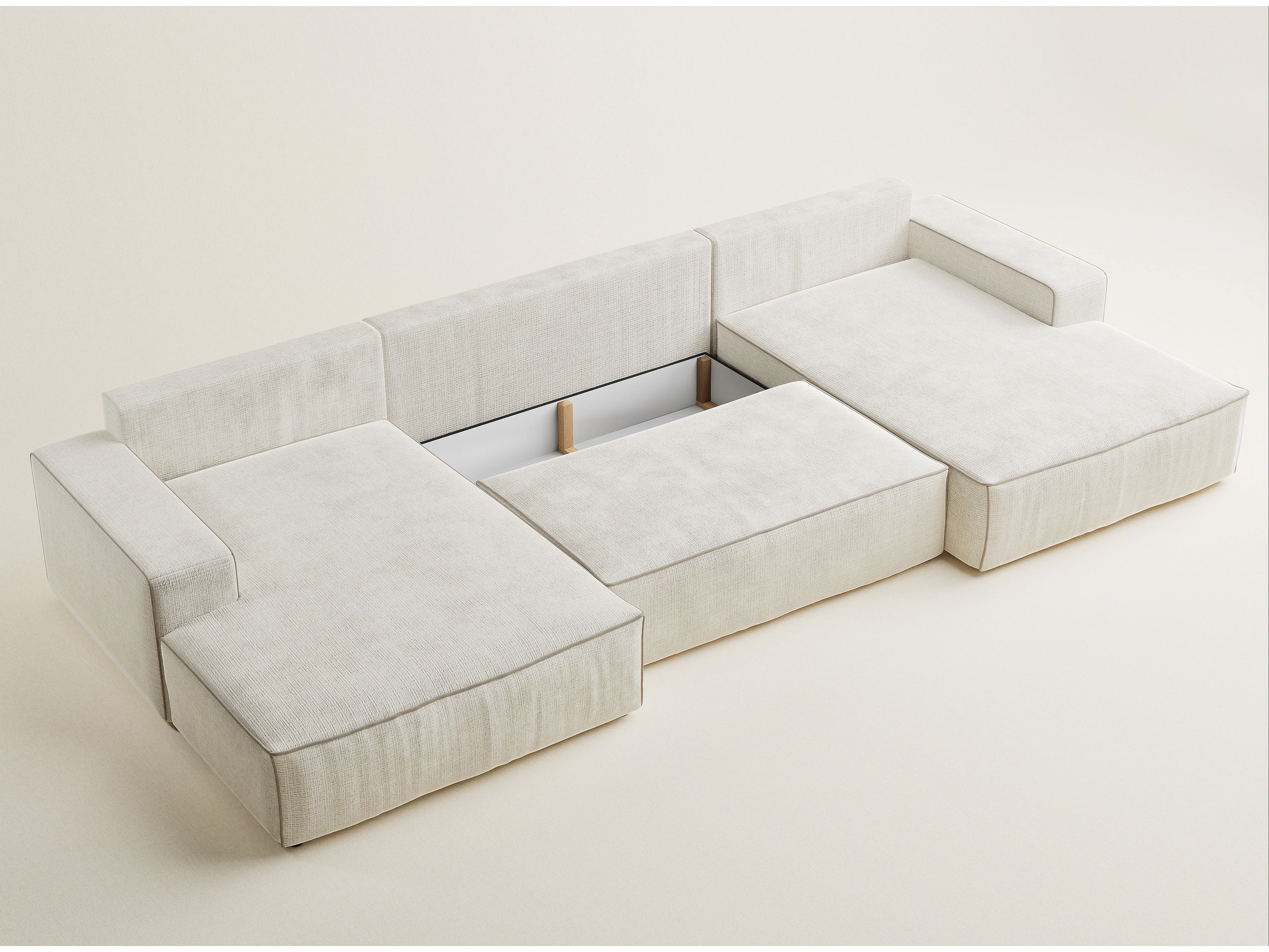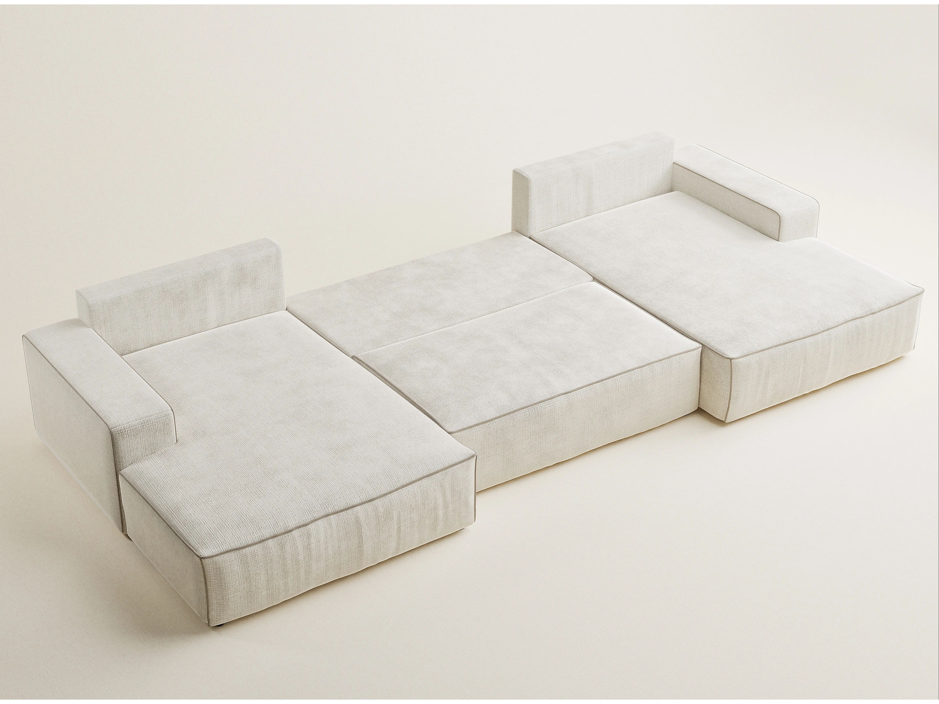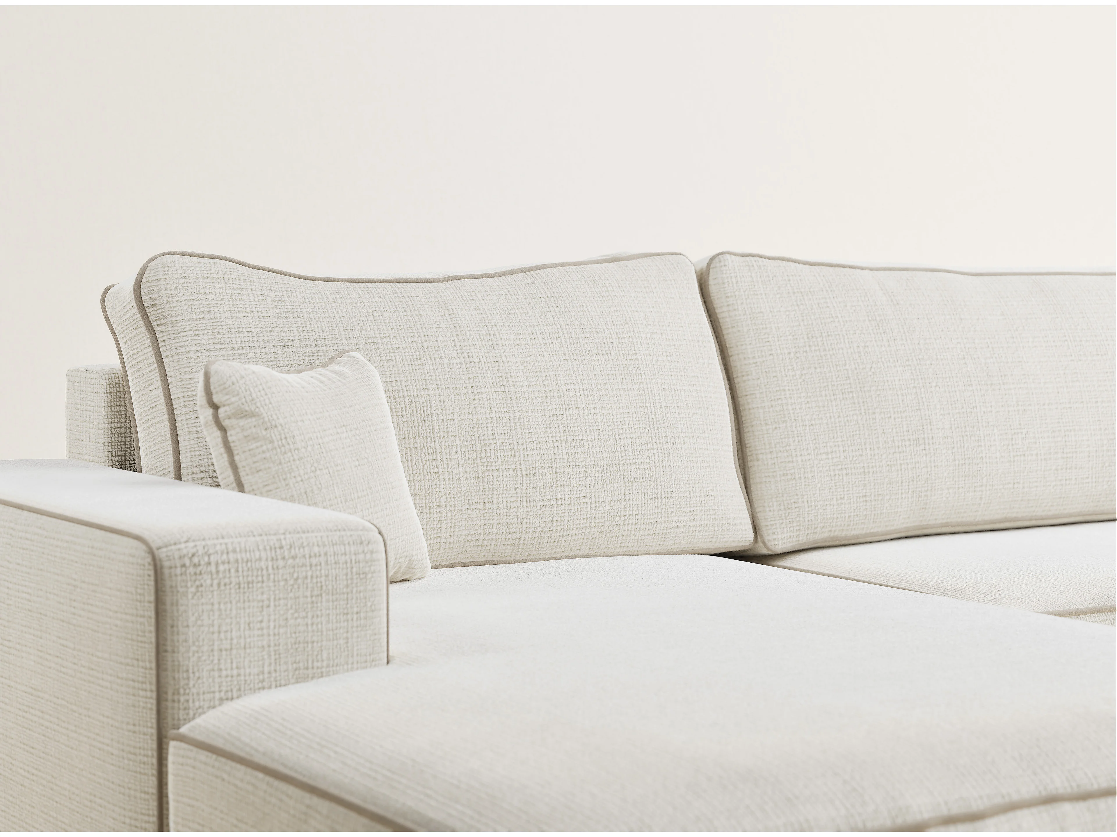 Canapé d'angle panoramique convertible en tissu chenille ivoire-beige DESEO