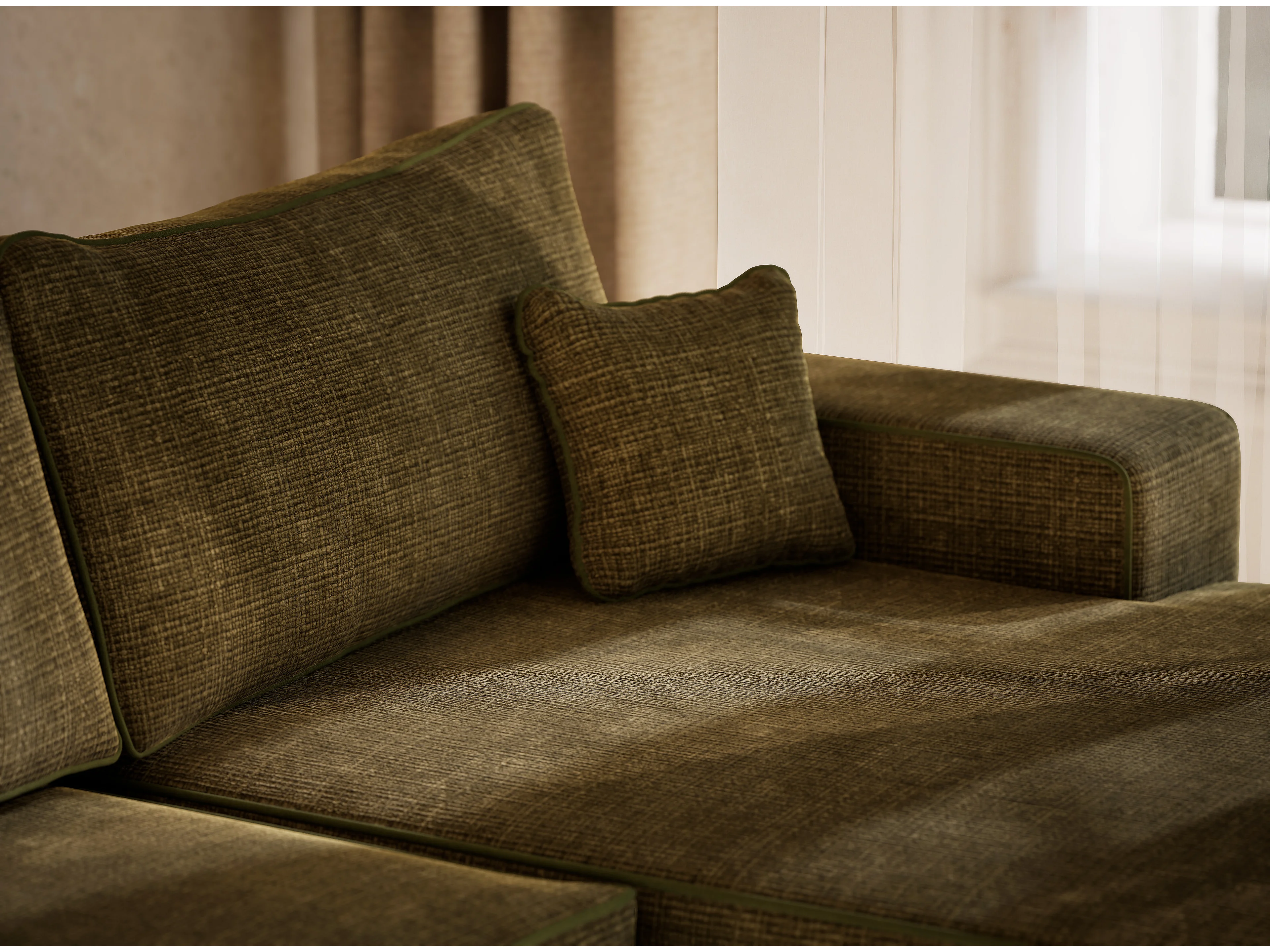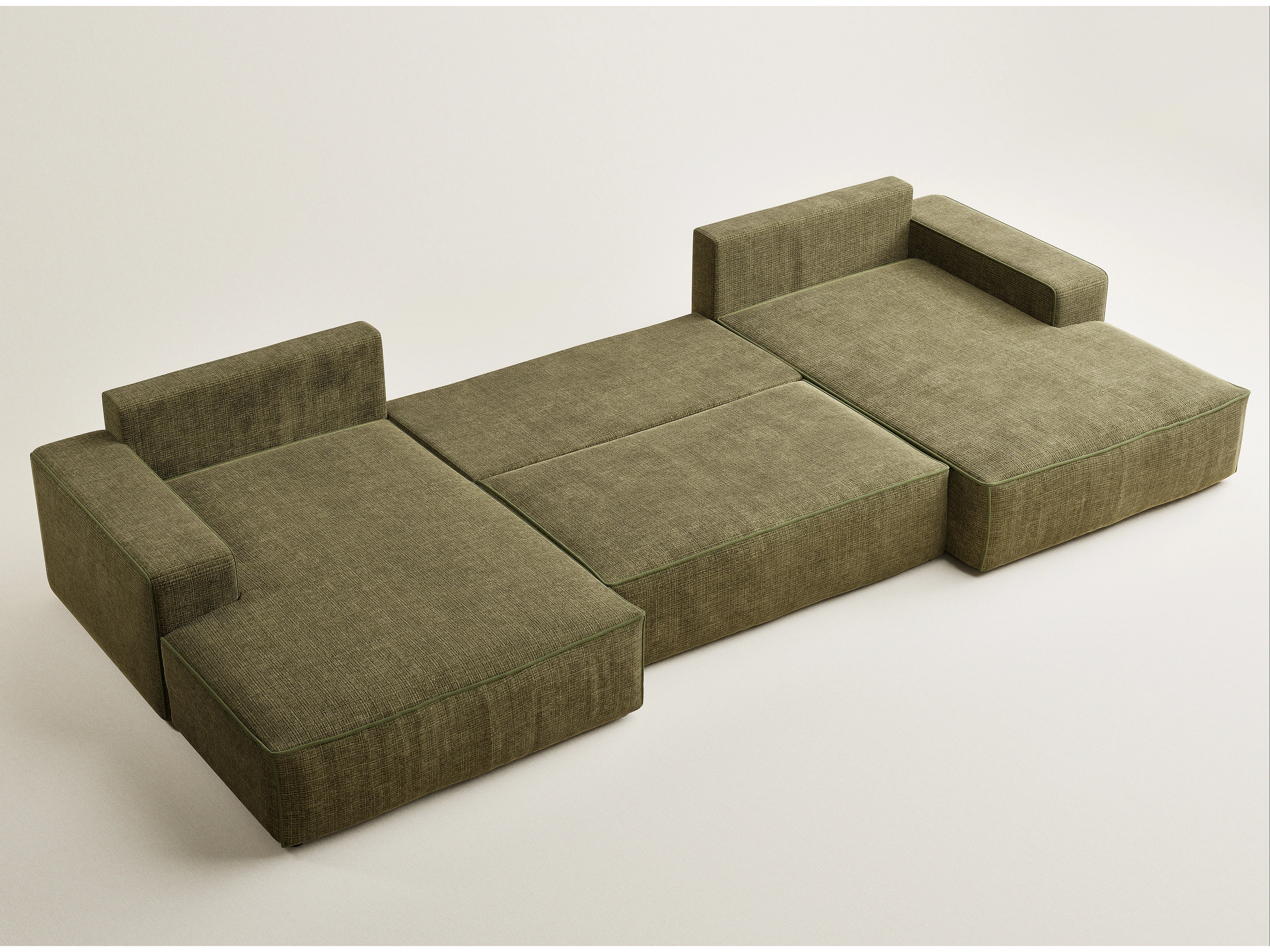 Canapé d'angle panoramique convertible en tissu chenille vert olive DESEO
