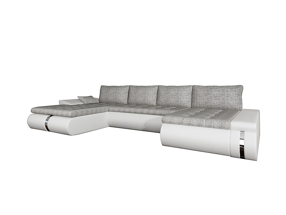 Canapé d'angle panoramique convertible et réversible en tissu et simili AZELMA - Blanc et gris