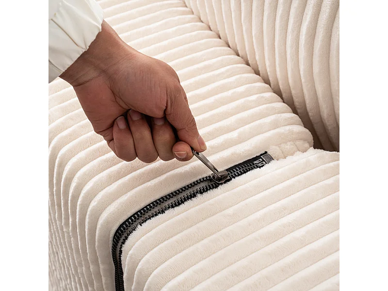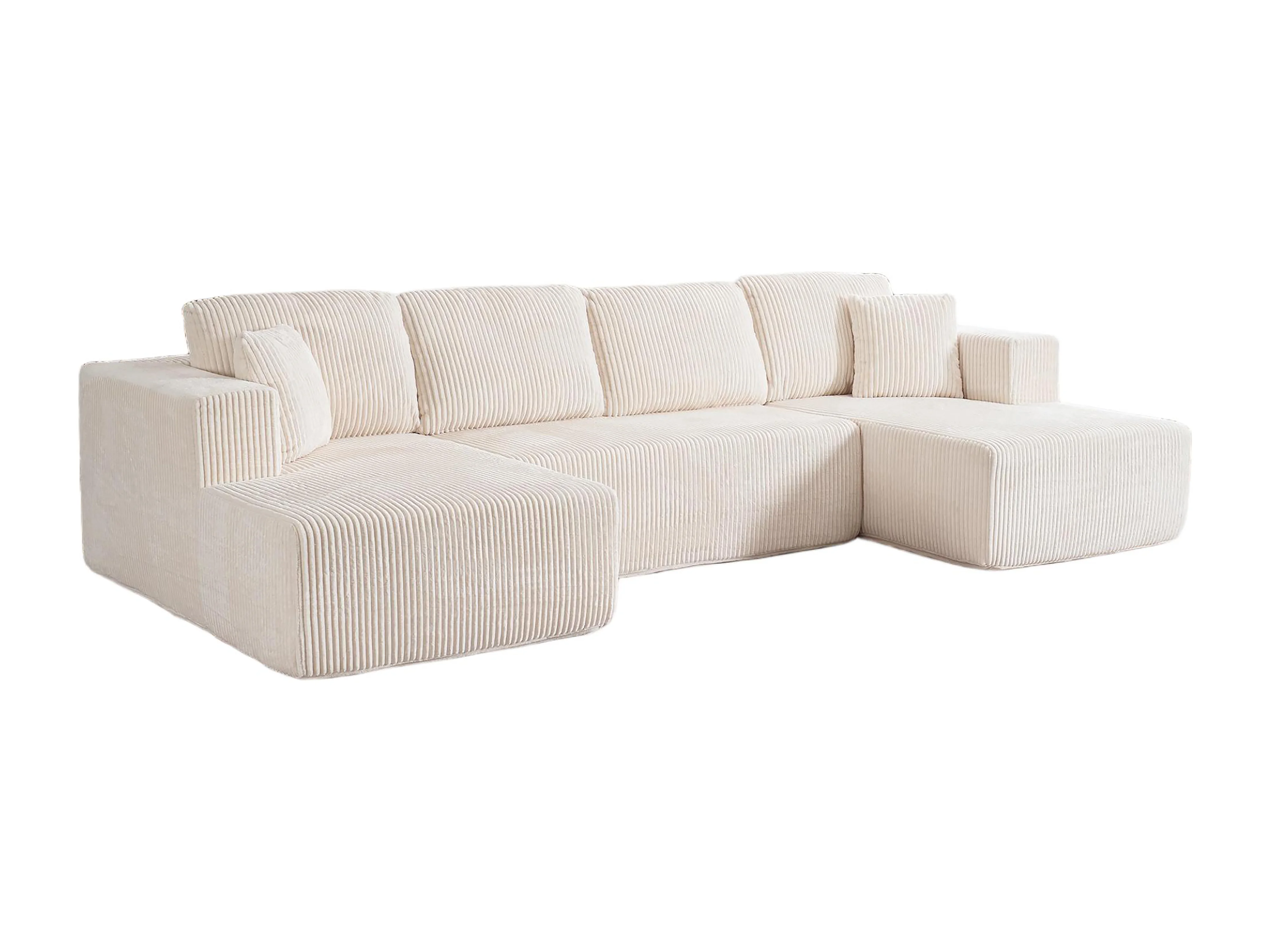 Canapé d'angle panoramique - en Velours côtelé Beige - avec 4 coussins, 2 oreillers et 2 méridiennes - 332x156x88cm