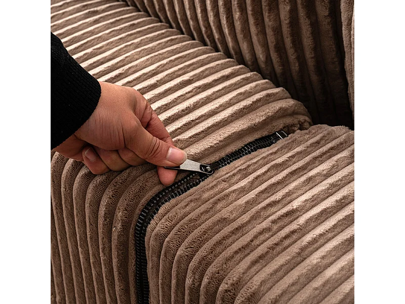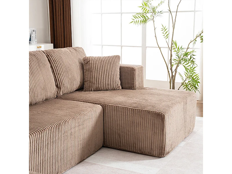 Canapé d'angle panoramique - en Velours côtelé Marron - avec 4 coussins, 2 oreillers et 2 méridiennes - 332x156x88cm