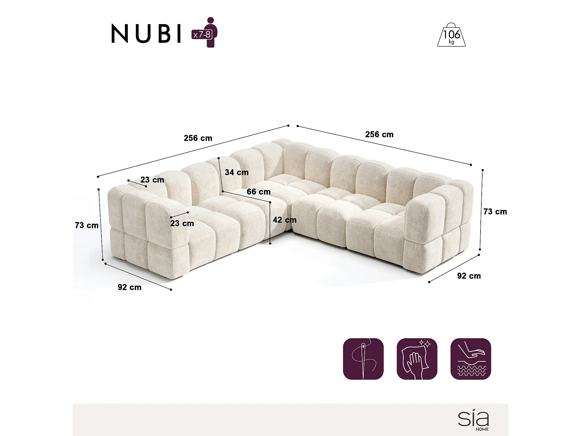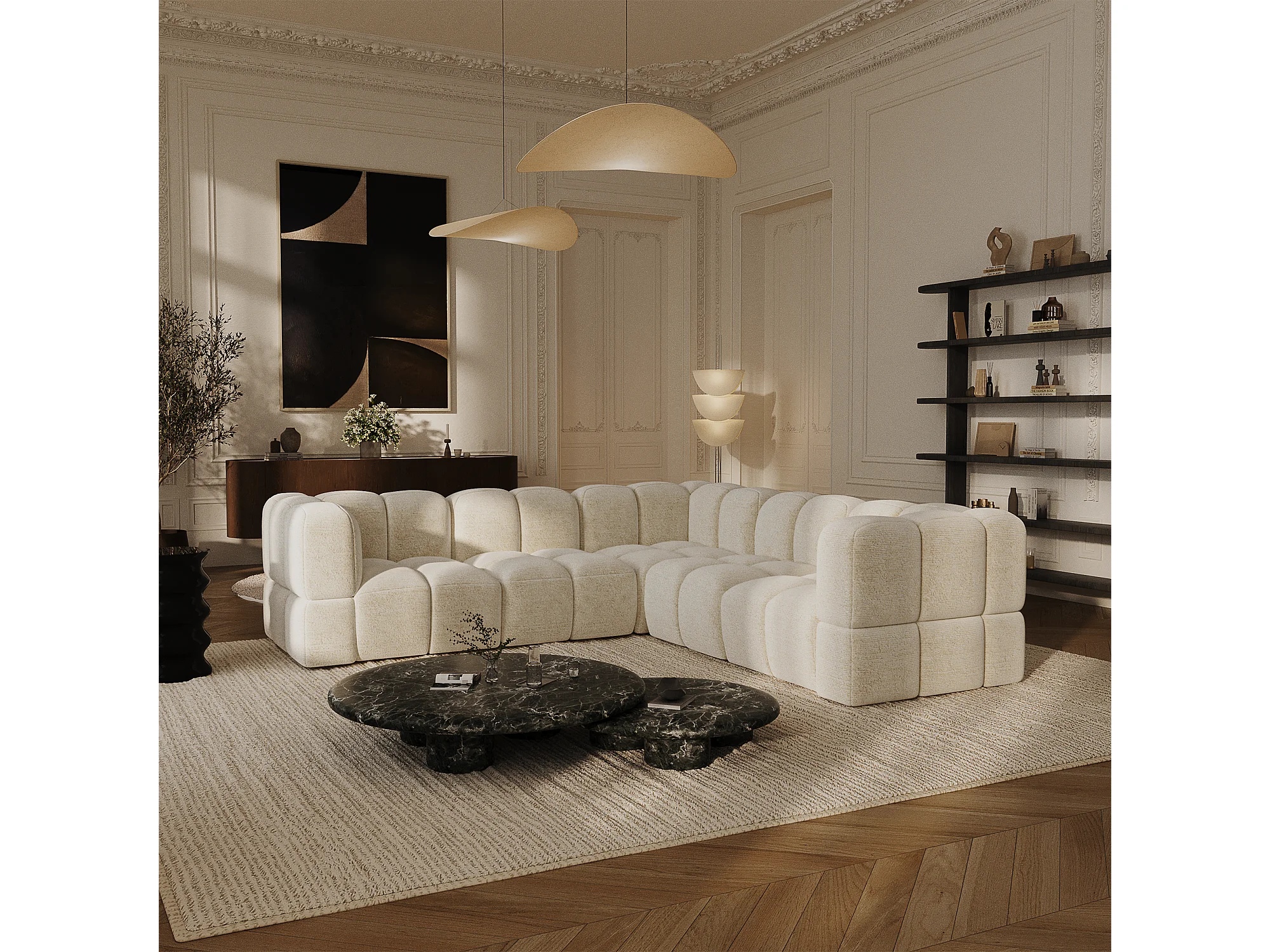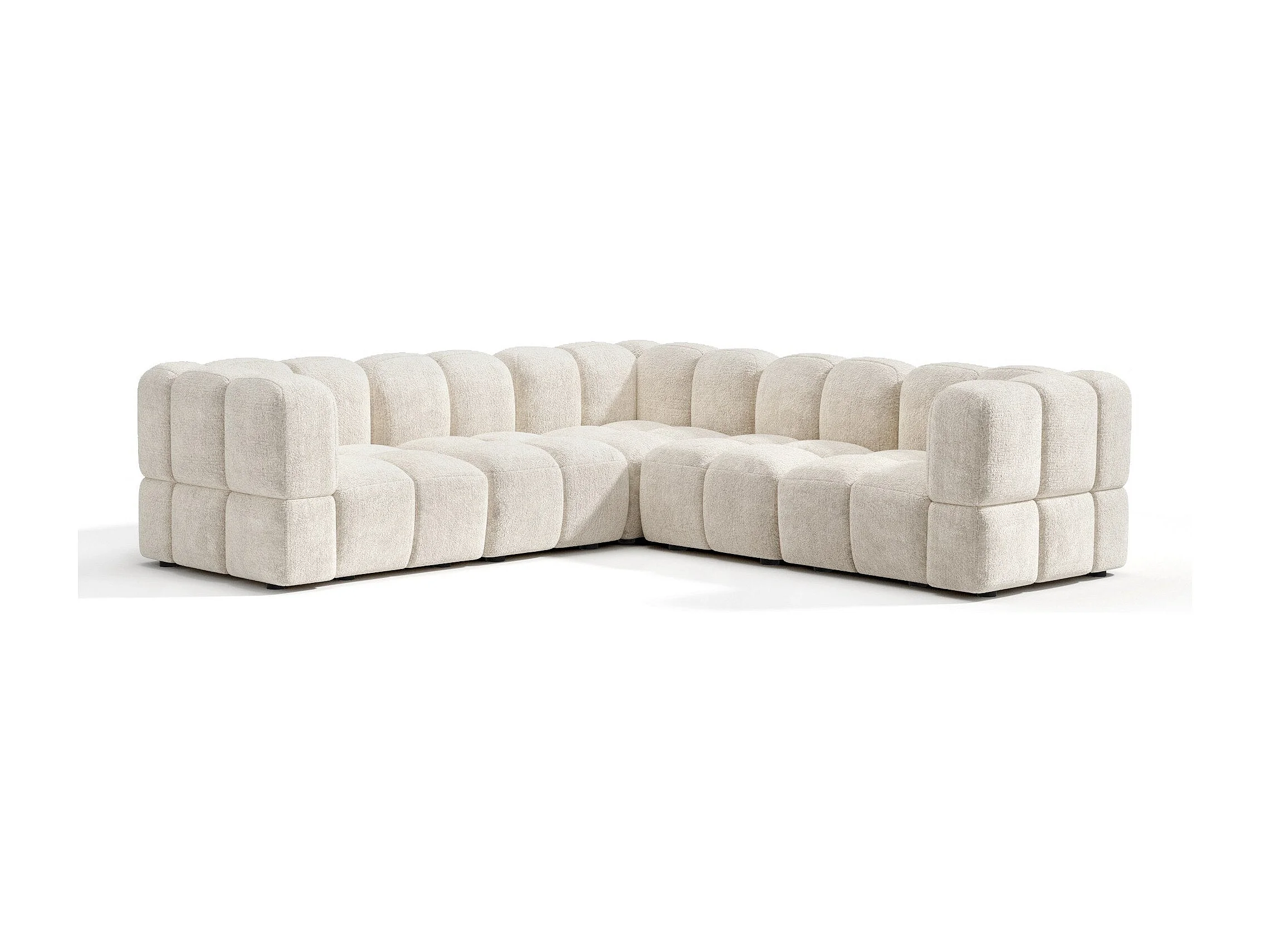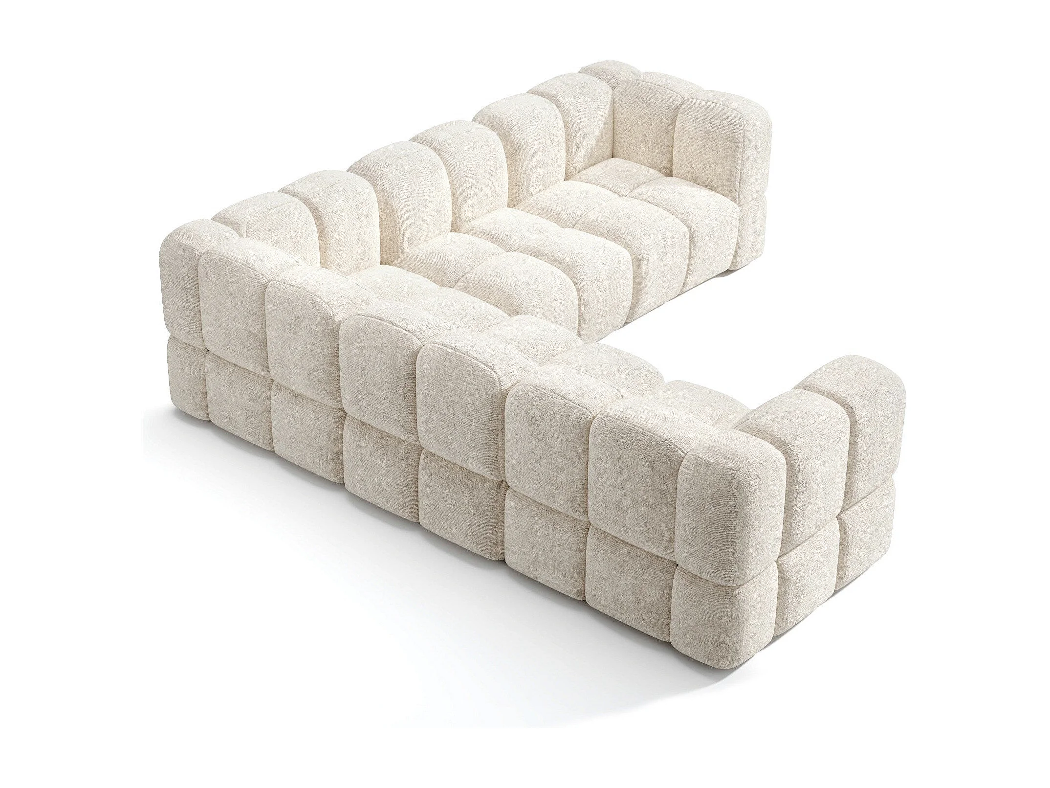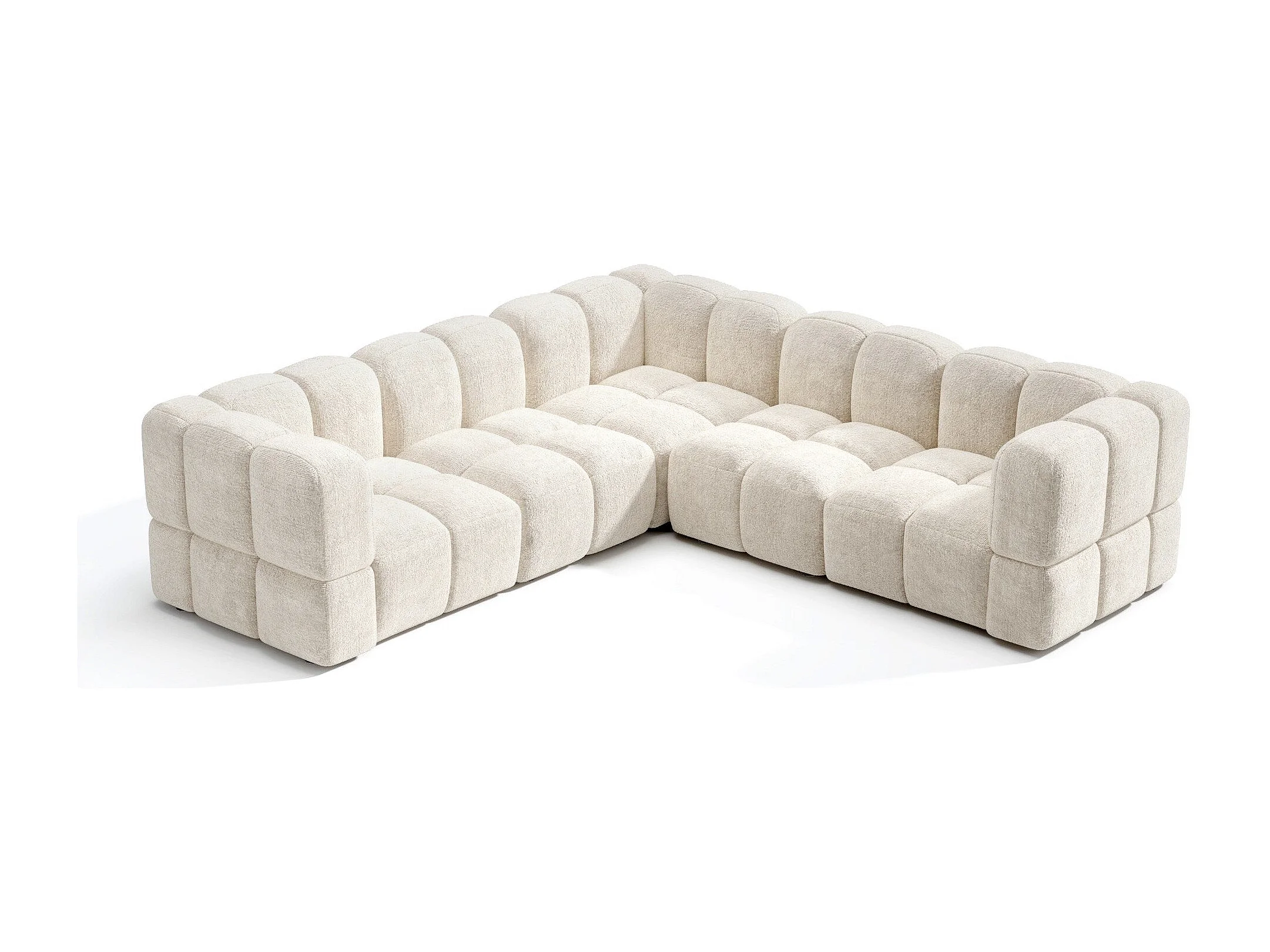 Canapé d'angle panoramique modulable 7-8 places velours texturé crème NUBI
