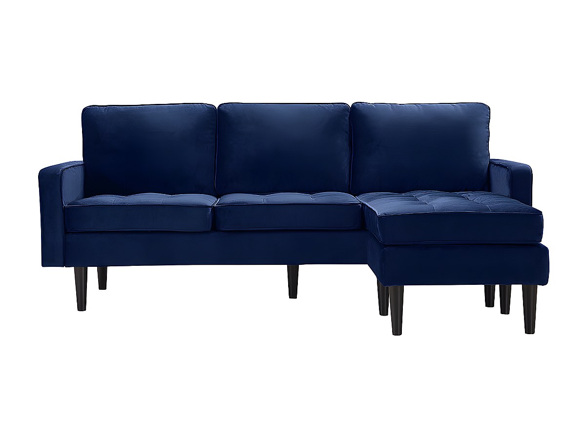 Canapé d'angle réversible en velours FLEUET - Bleu foncé