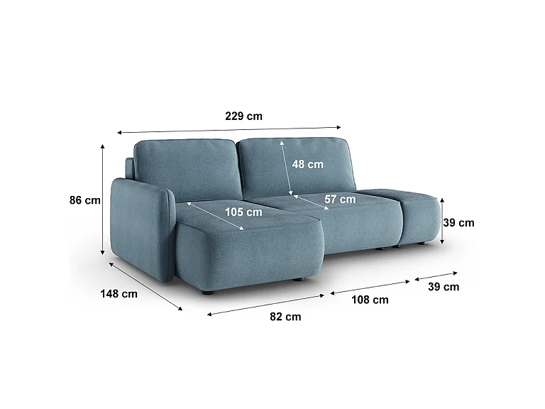 Canapé d'angle réversible et convertible 3 places avec coffre Alessio Bleu clair