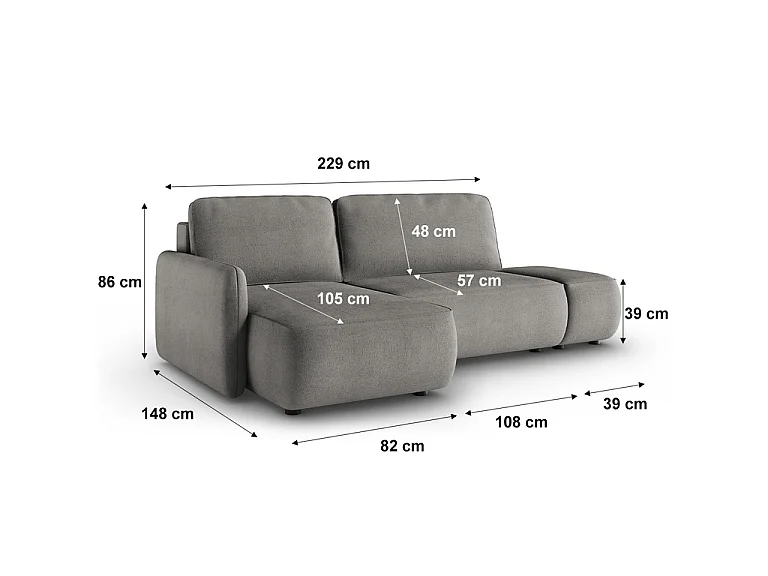 Canapé d'angle réversible et convertible 3 places avec coffre Alessio Gris