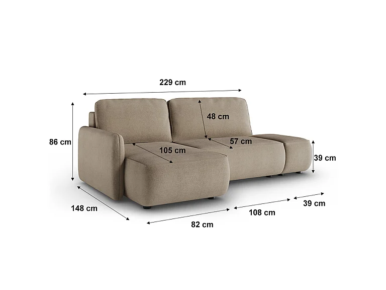 Canapé d'angle réversible et convertible 3 places avec coffre Alessio Taupe