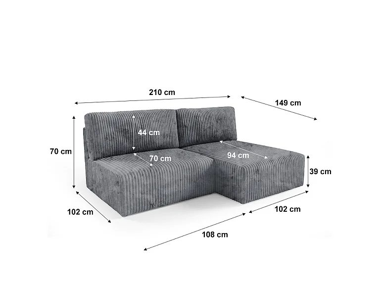 Canapé d'angle réversible et convertible 3 places avec coffre Angela Gris foncé