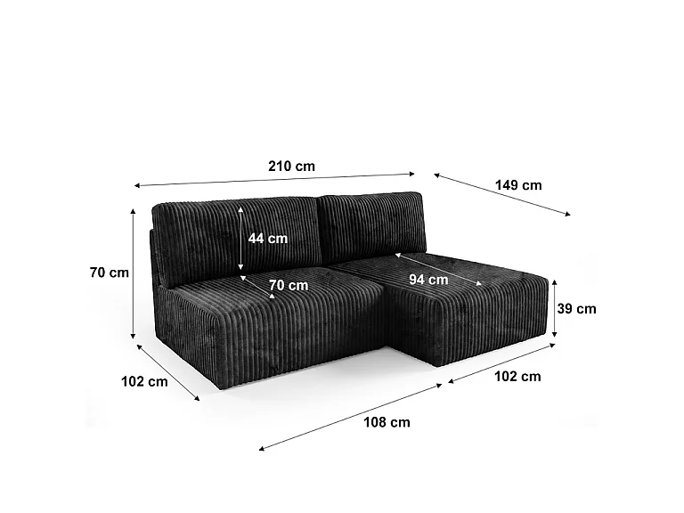 Canapé d'angle réversible et convertible 3 places avec coffre Angela Noir