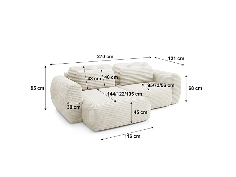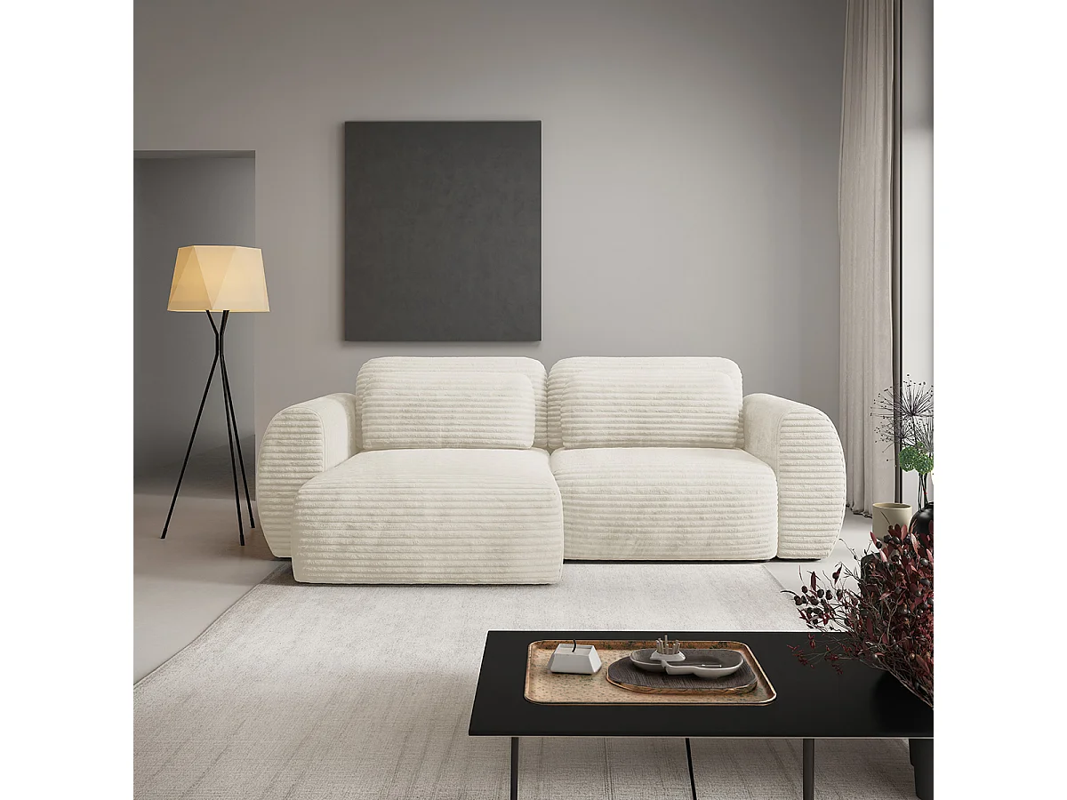 Canapé d'angle réversible et convertible 3 places avec coffre Camilla Blanc cassé