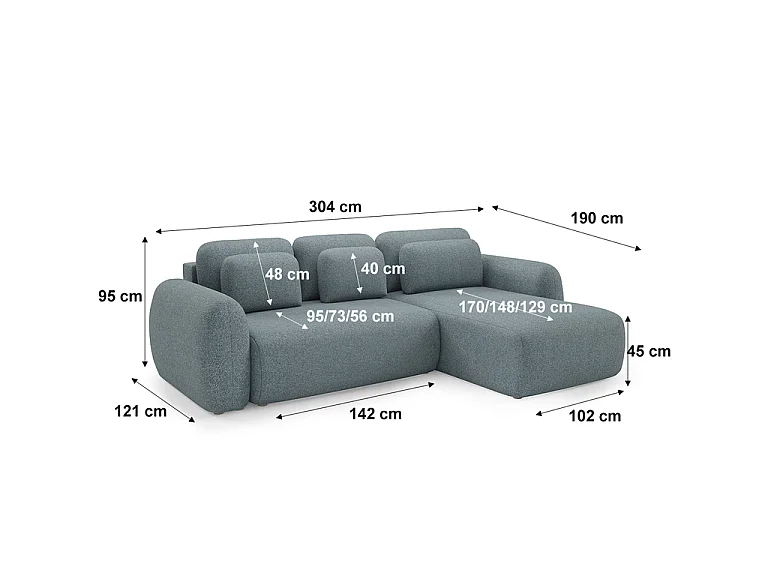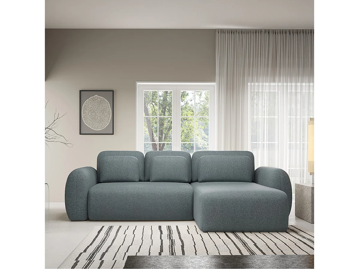 Canapé d'angle réversible et convertible 3 places avec coffre Carmela Bleu