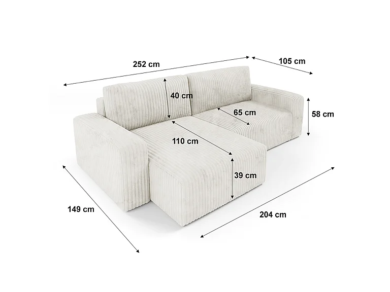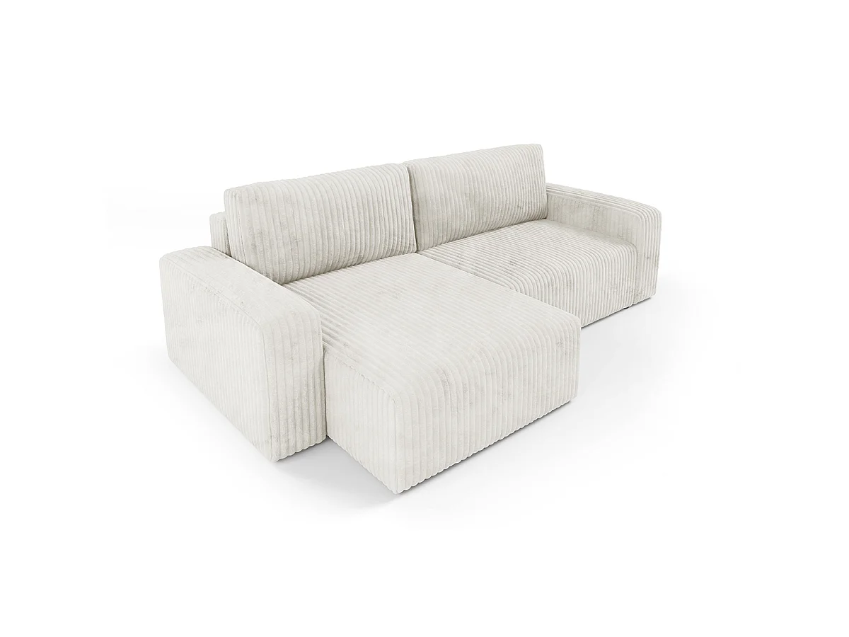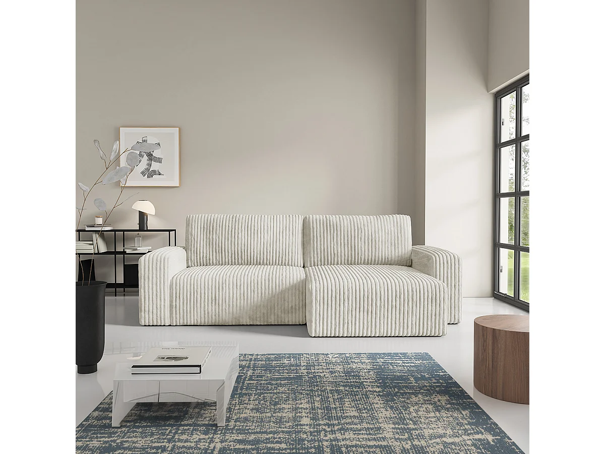 Canapé d'angle réversible et convertible 3 places avec coffre et accoudoirs Angela Blanc cassé