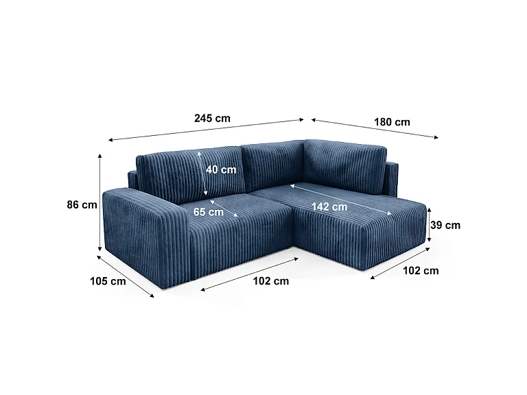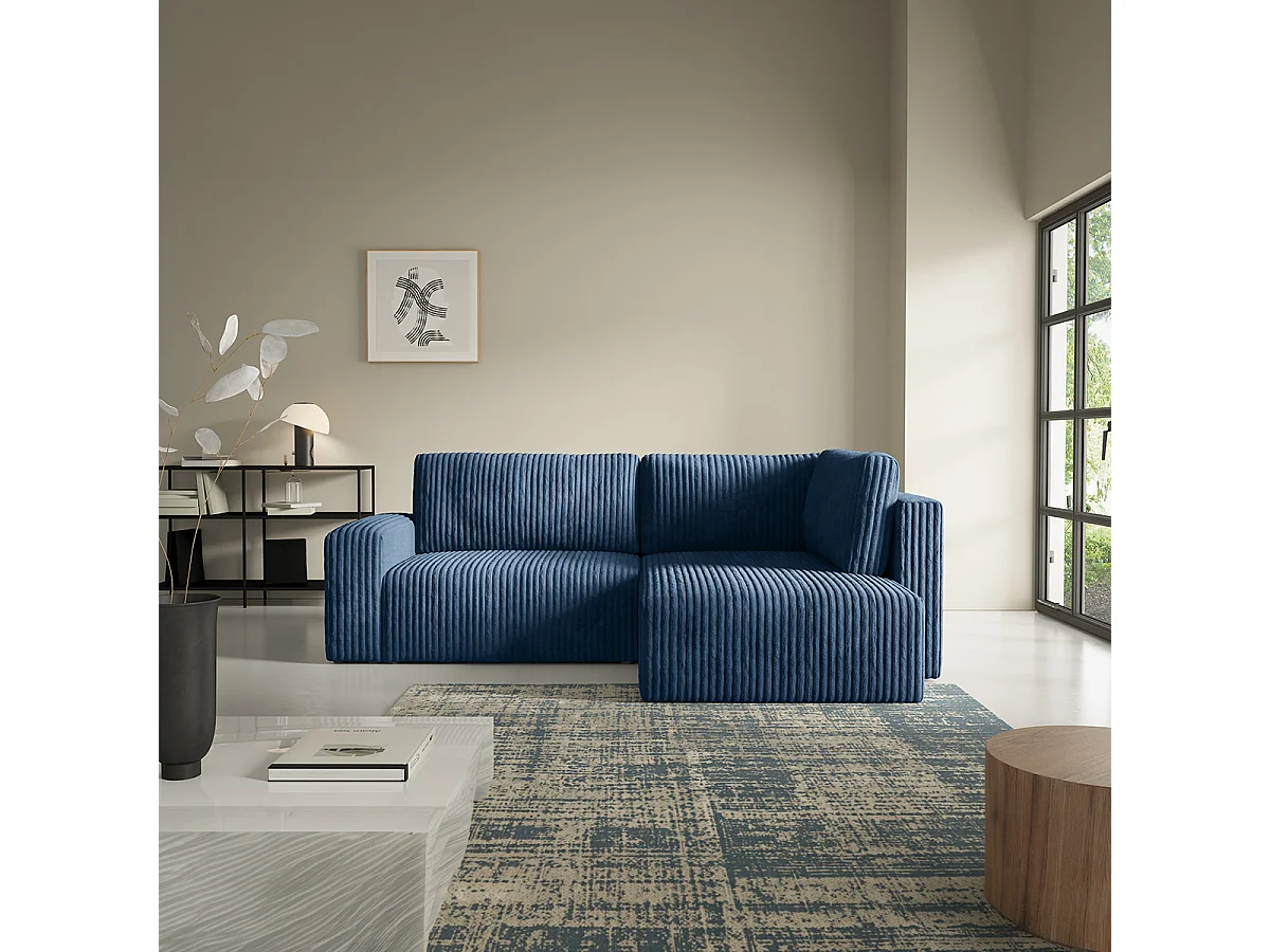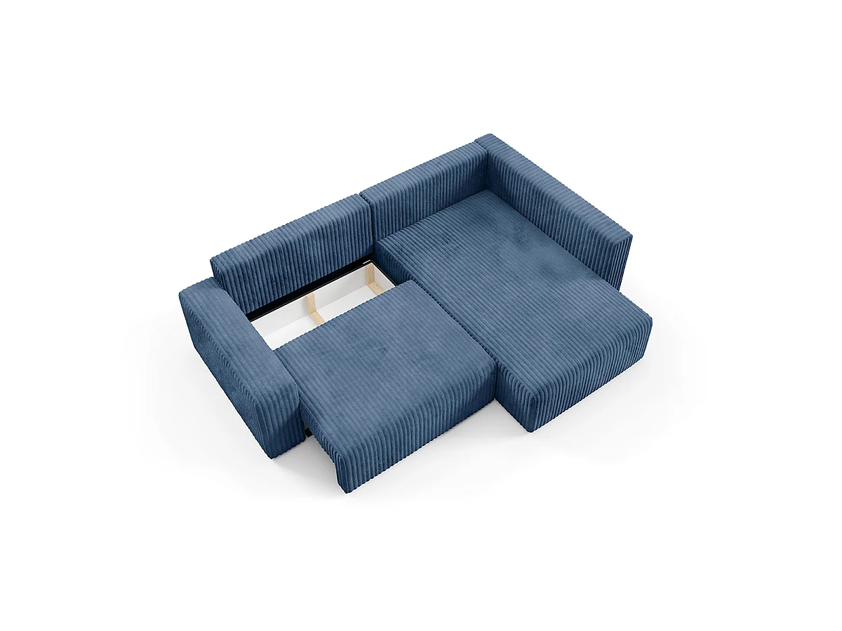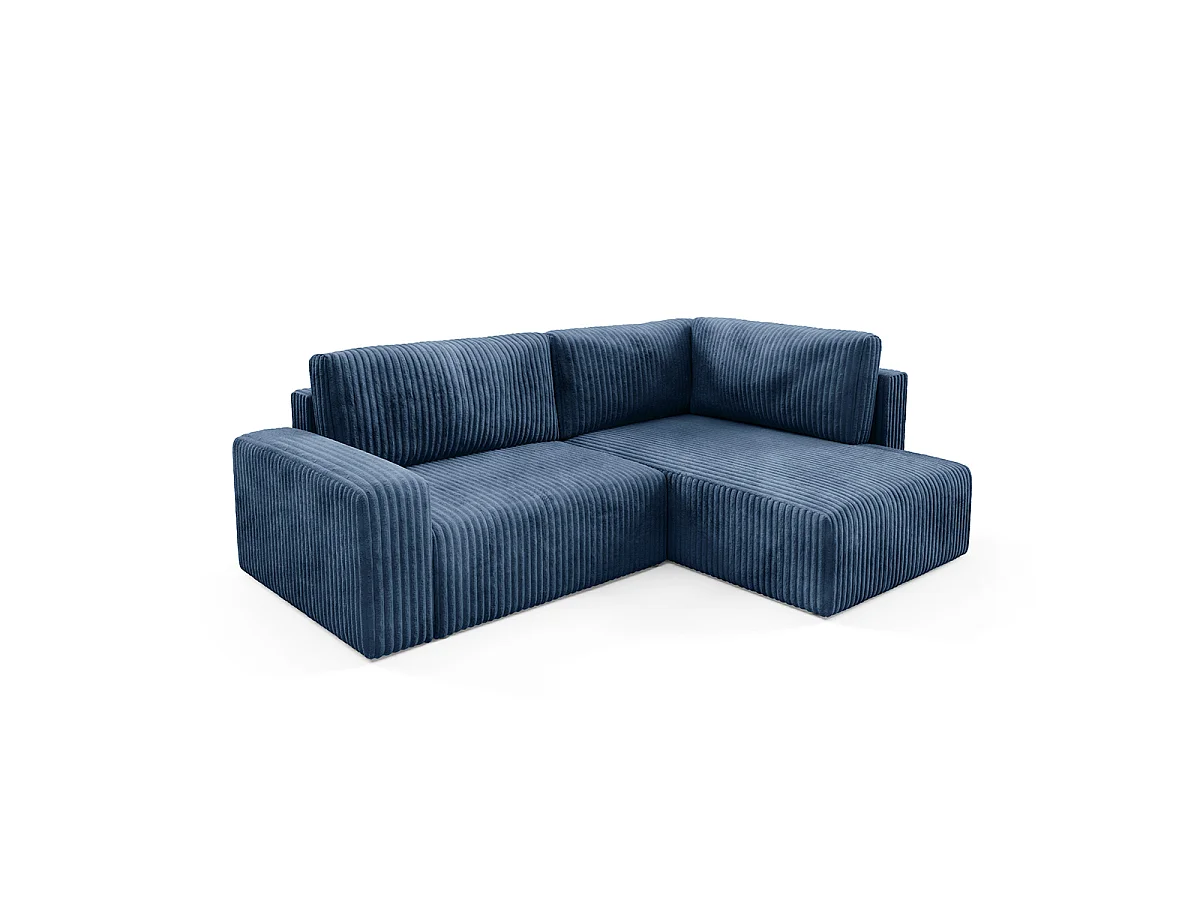 Canapé d'angle réversible et convertible 4 places avec coffre et accoudoirs Angela Bleu marine