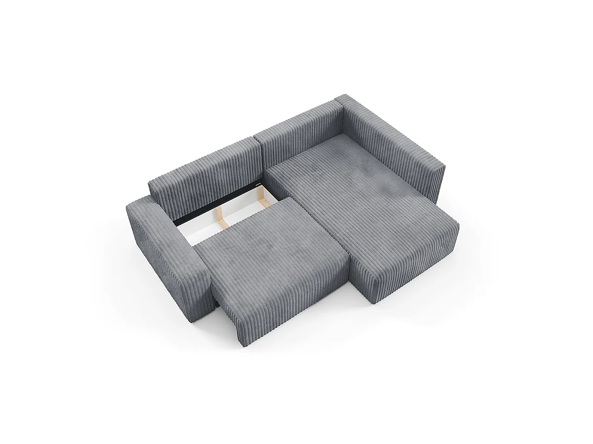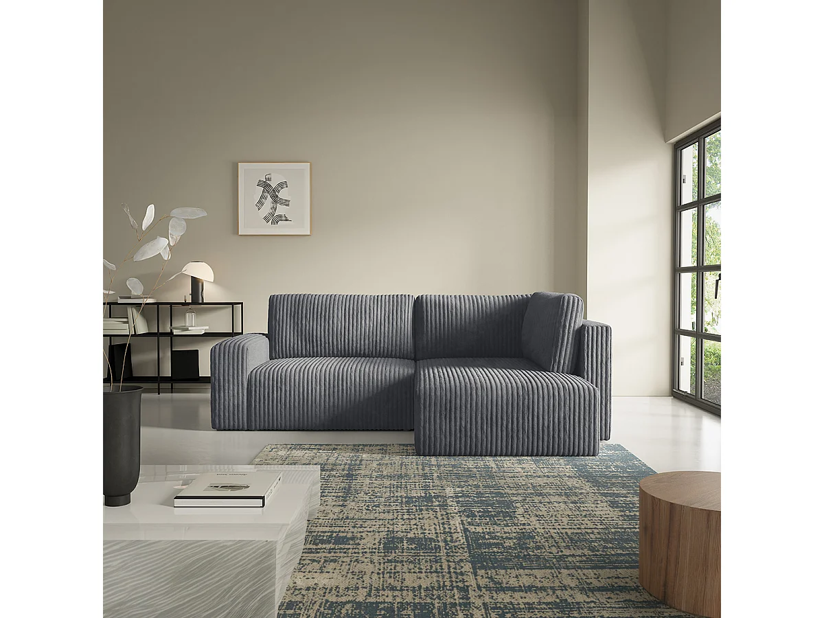 Canapé d'angle réversible et convertible 4 places avec coffre et accoudoirs Angela Gris foncé