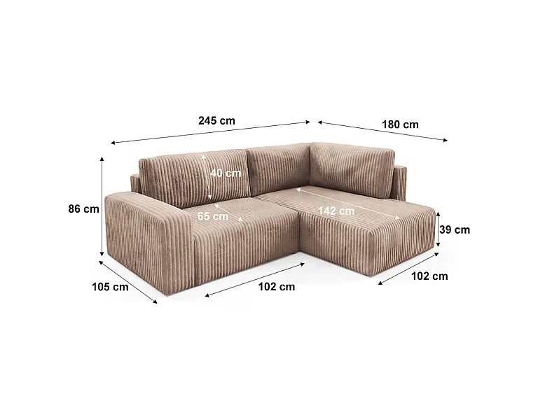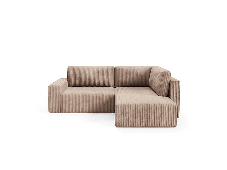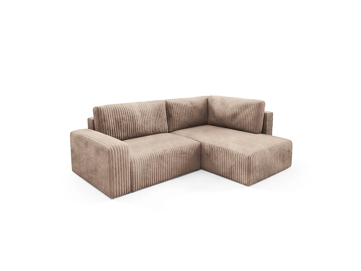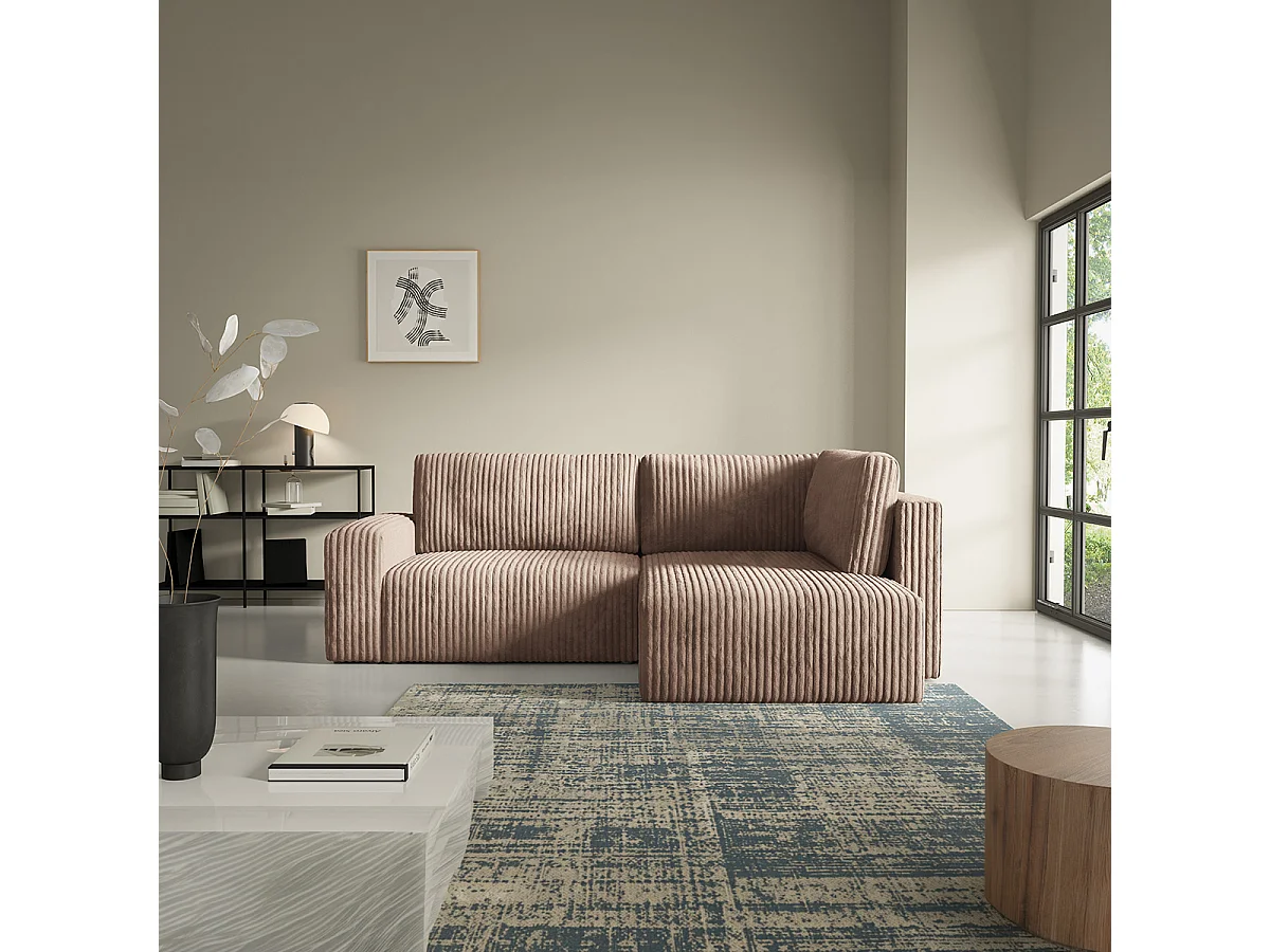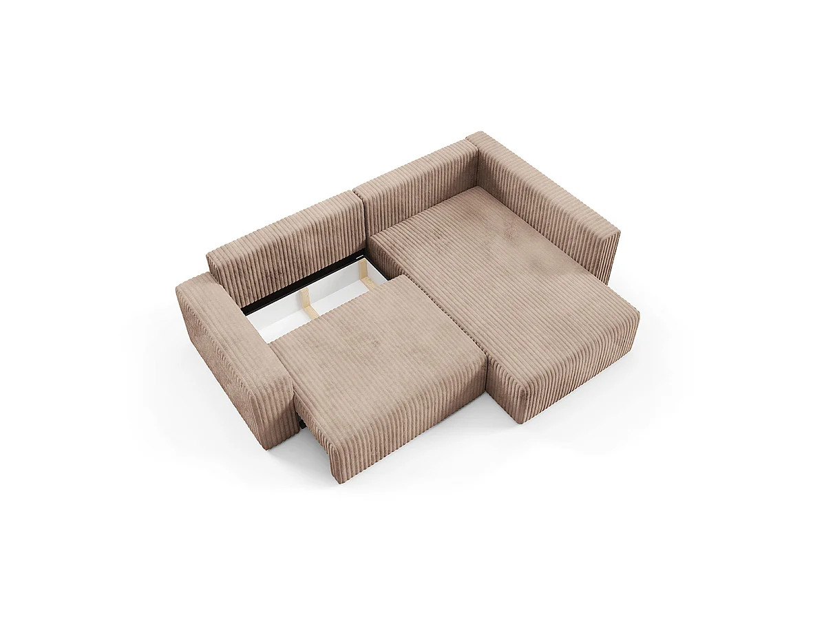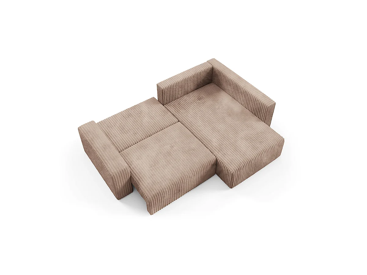 Canapé d'angle réversible et convertible 4 places avec coffre et accoudoirs Angela Marron clair