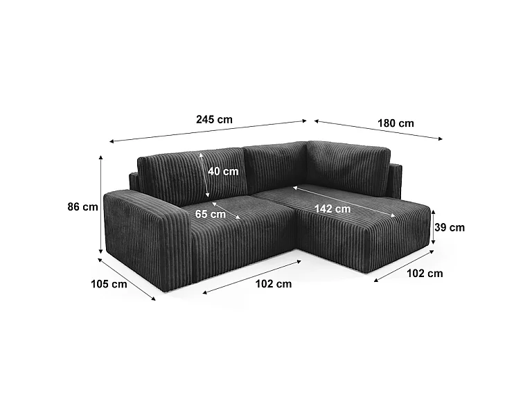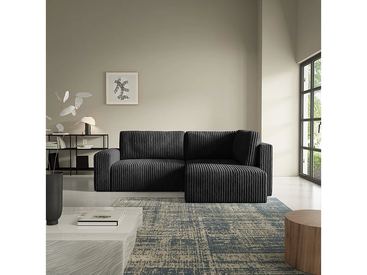 Canapé d'angle réversible et convertible 4 places avec coffre et accoudoirs Angela Noir
