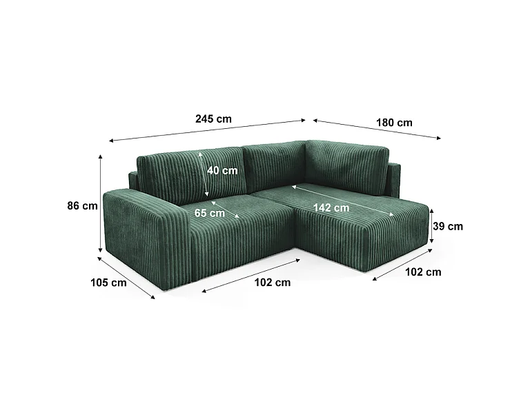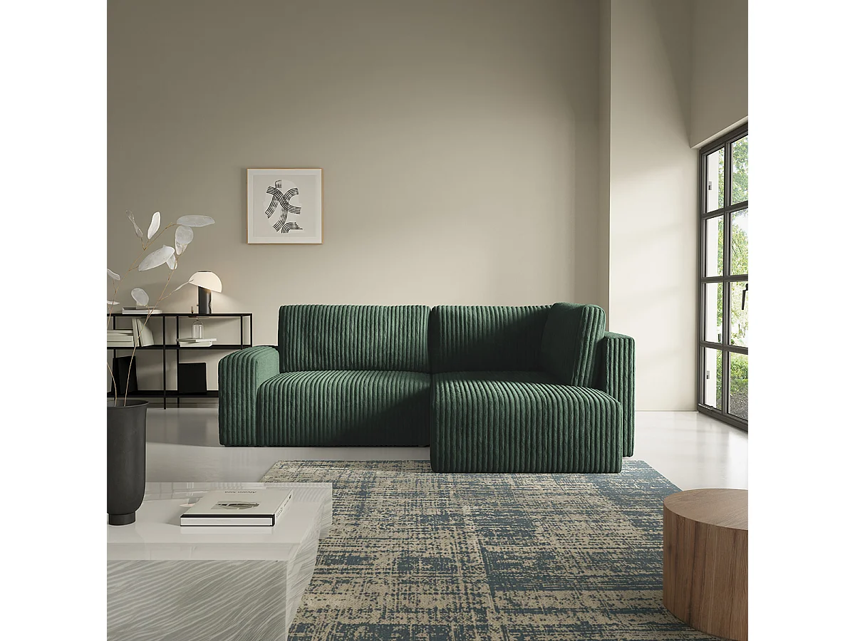 Canapé d'angle réversible et convertible 4 places avec coffre et accoudoirs Angela Vert sapin