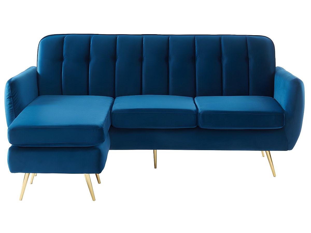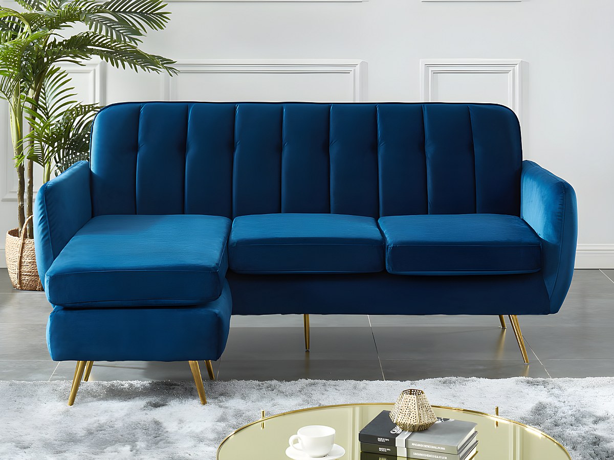 Canapé d'angle réversible et modulable en velours BLAYNE - Bleu nuit
