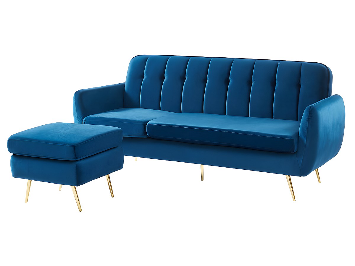 Avec ses pieds en métal doré, son revêtement en velours, son pouf modulable et son dossier strié, le canapé BLAYNE ne manque pas d'atouts pour vous séduire ! Telle une invitation à vous asseoir, il n'attend que vous !