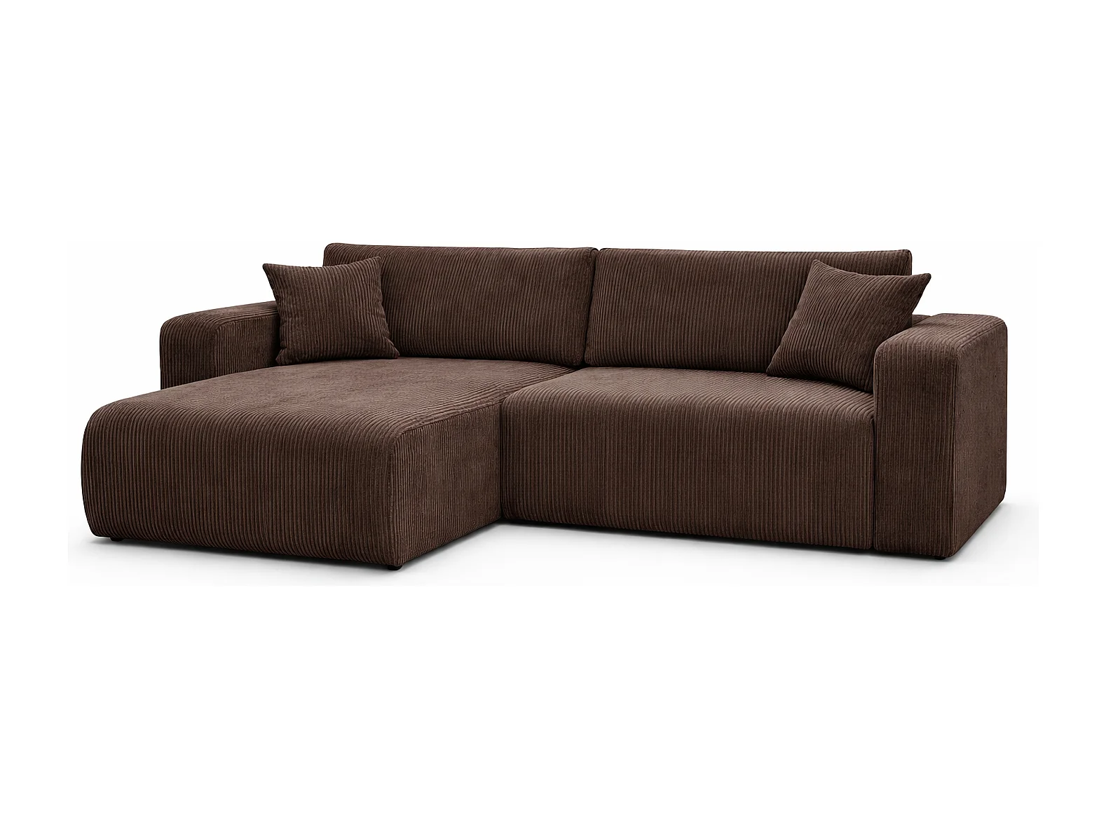 Canapé d’angle réversible FLORA L convertible – Velours côtelé brun chocolat, fonction couchage, grand coffre de rangement, angle universel gauche/droite