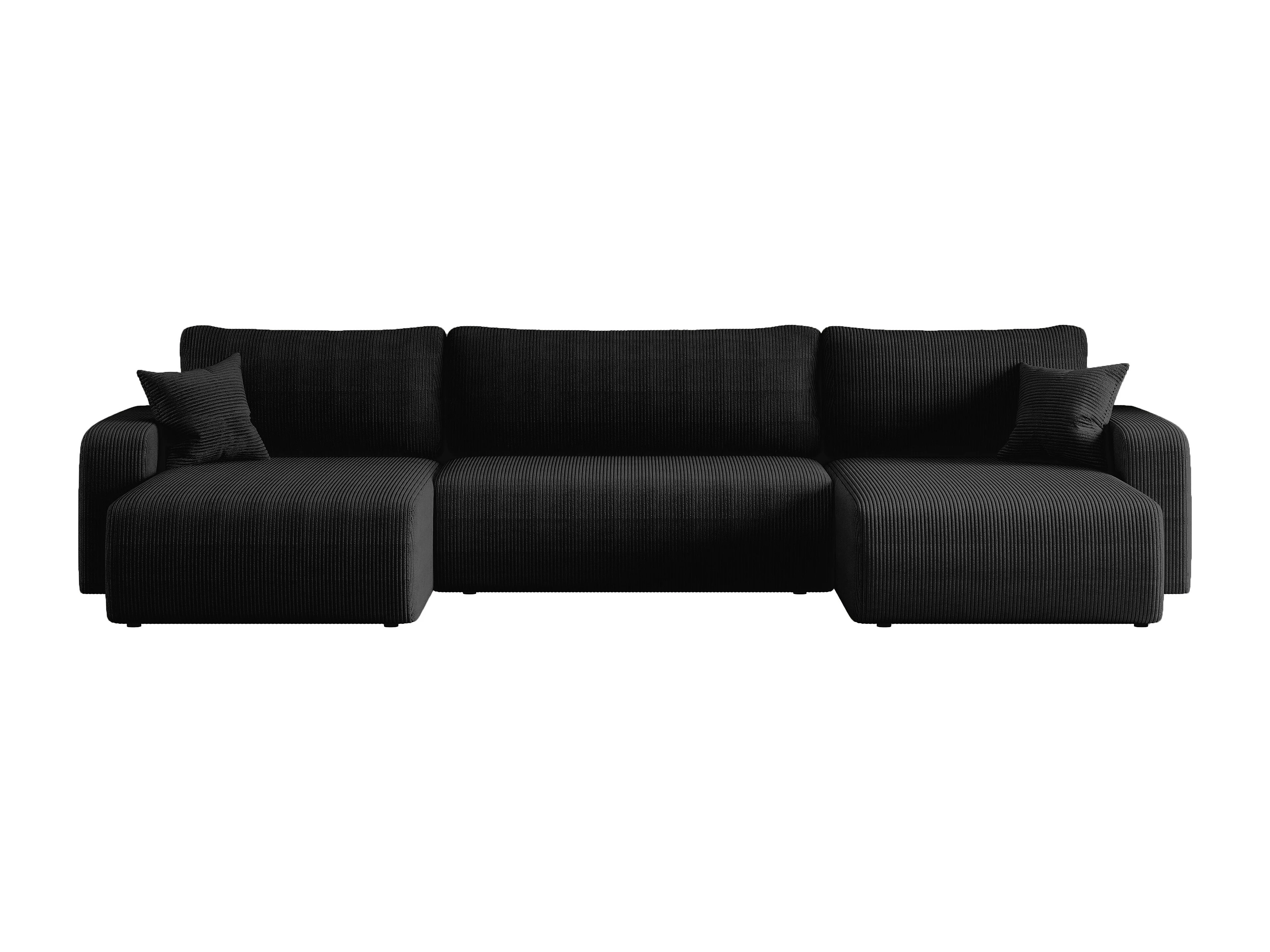 Canapé d’angle réversible PIANIOO U convertible – Velours côtelé noir, grand coffre de rangement, fonction couchage, angle universel gauche/droite