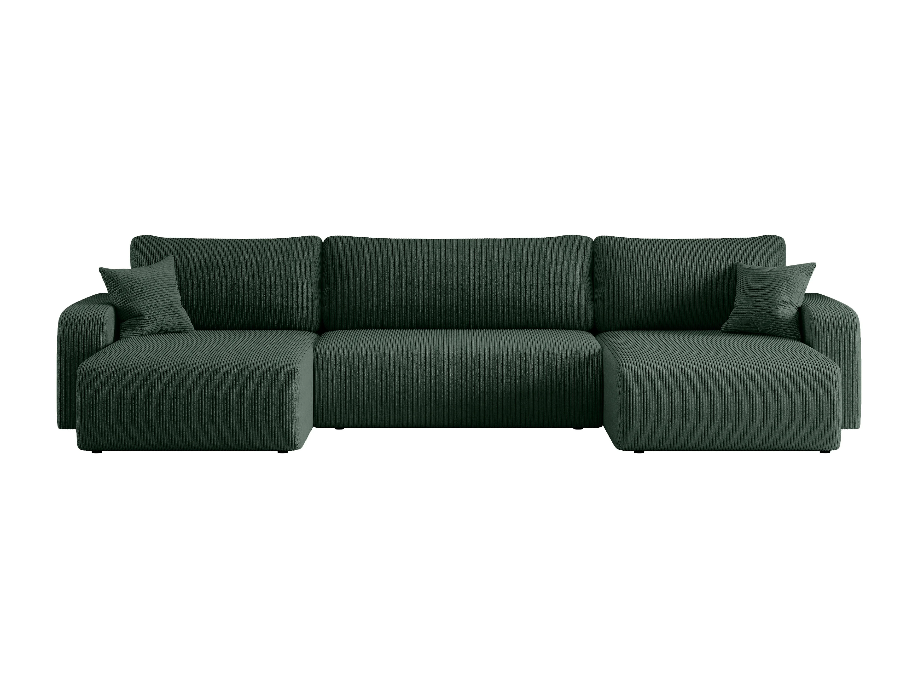 Canapé d’angle réversible PIANIOO U convertible – Velours côtelé vert bouteille, grand coffre de rangement, fonction couchage, angle universel gauche/droite