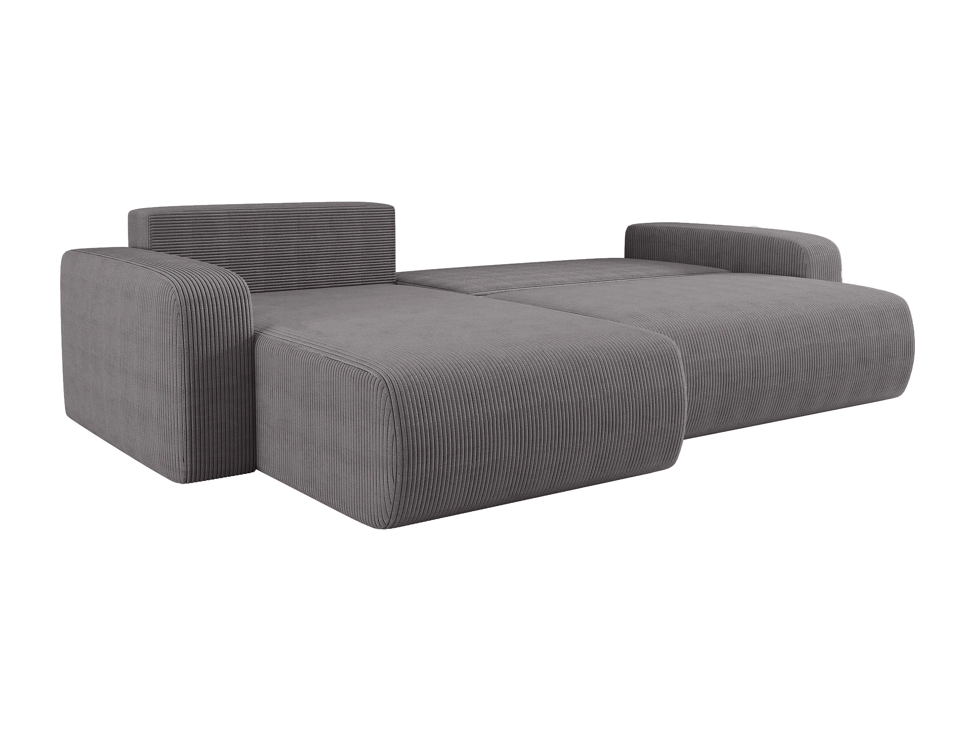 Canapé d’angle réversible PIANIOO XL convertible – Velours côtelé Gris, grand coffre de rangement, fonction couchage, angle universel gauche/droite