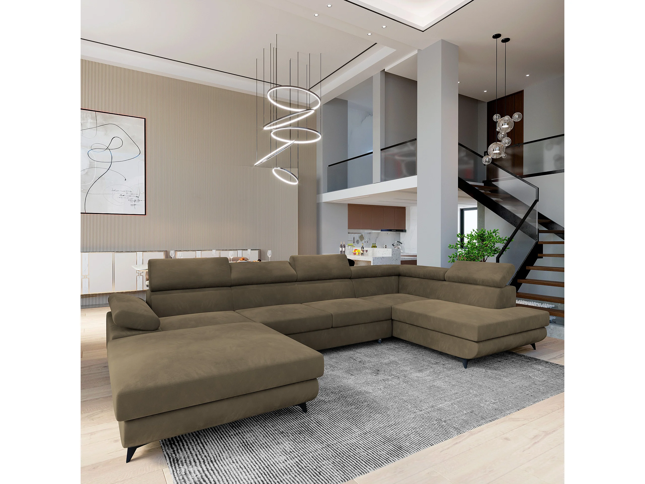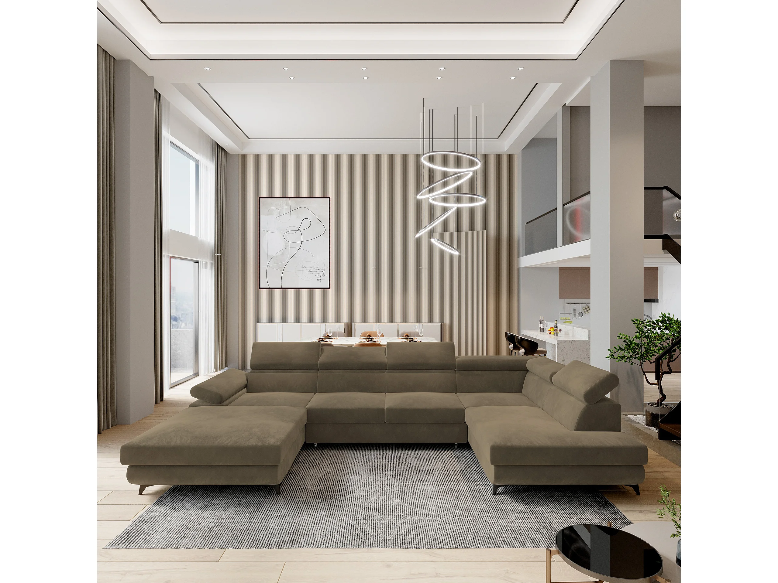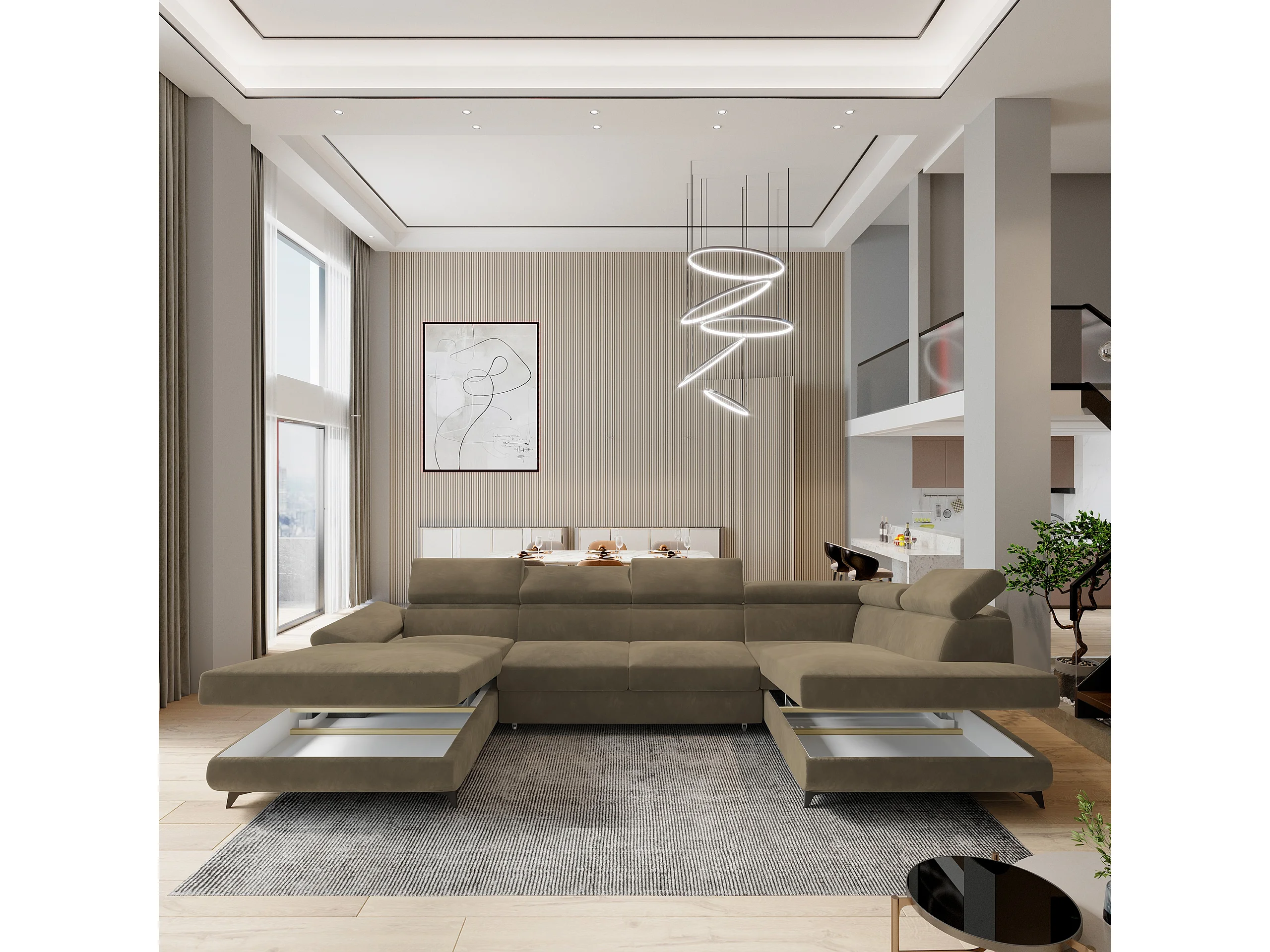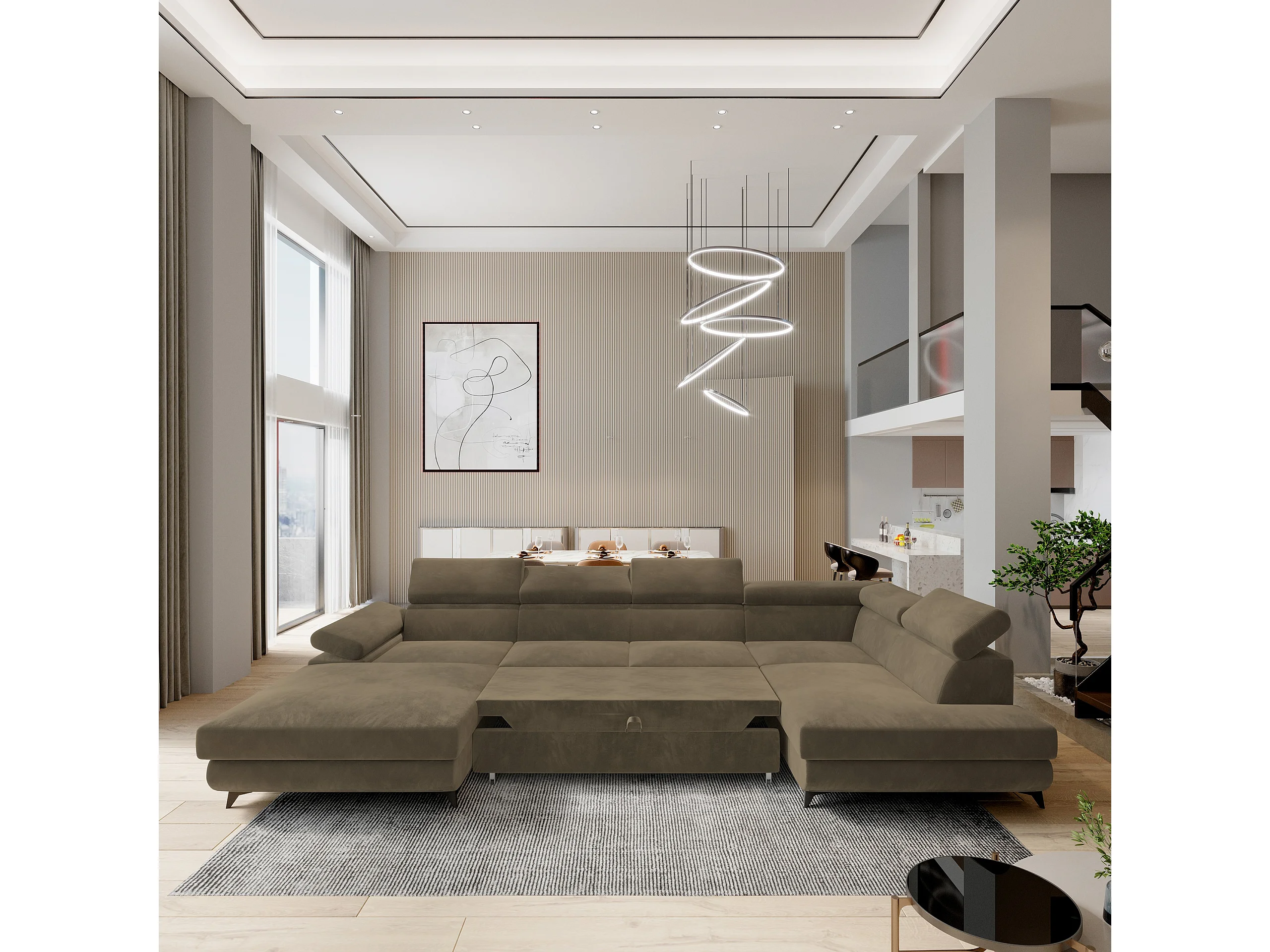Canapé D'angle Rubano Beige En Velours Avec Fonction De Couchage
