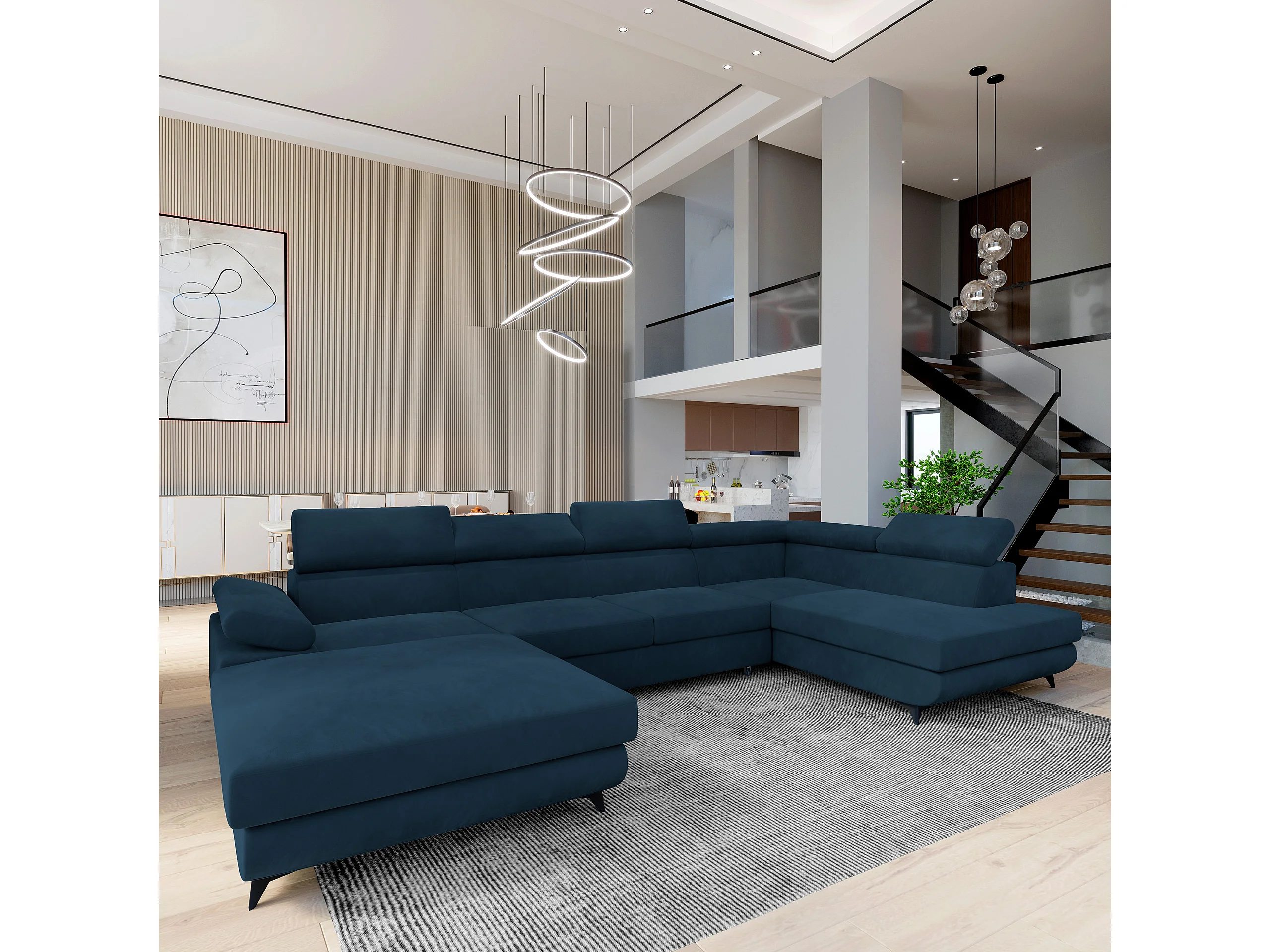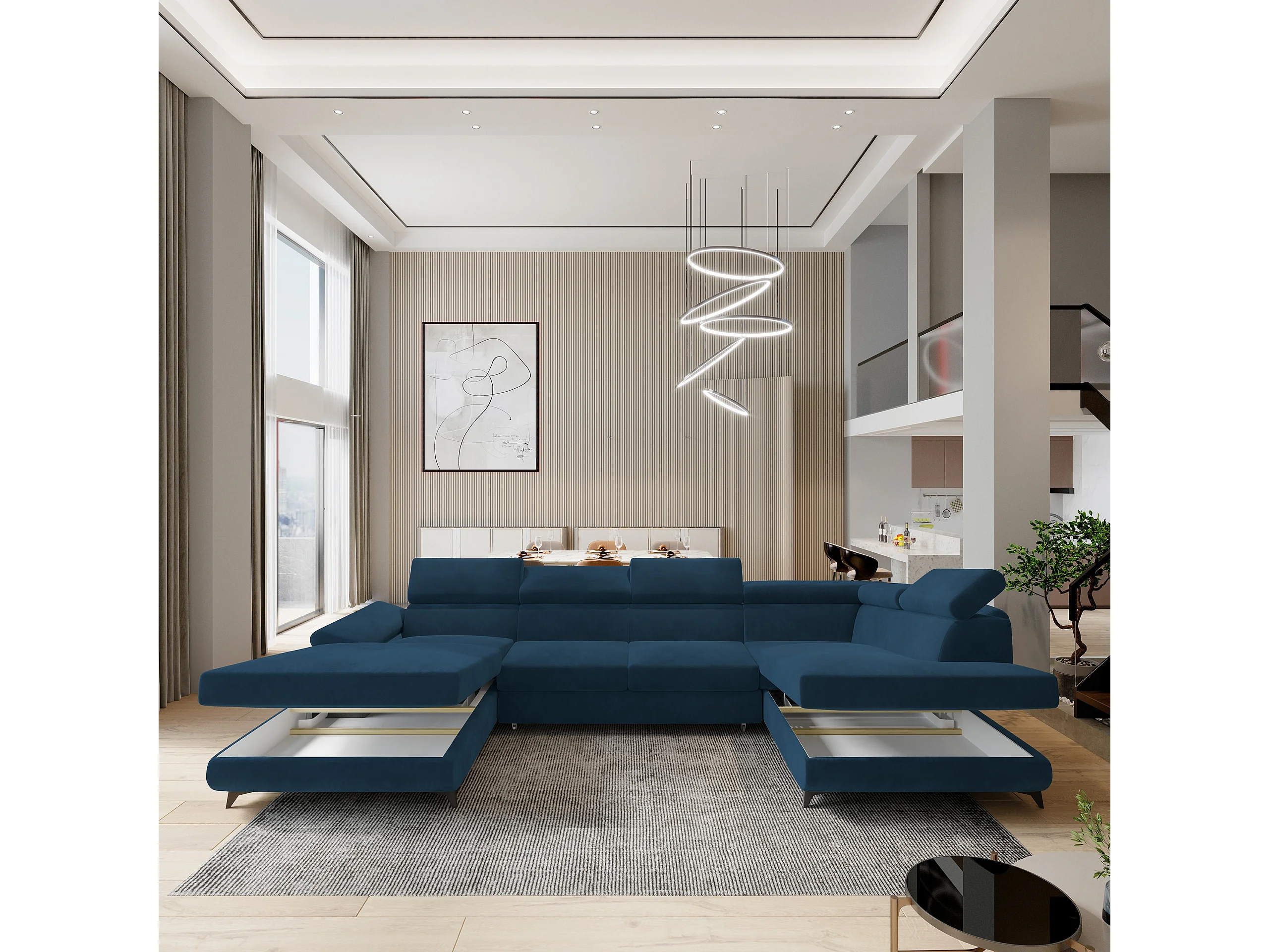 Canapé D'angle Rubano Bleu En Velours Avec Fonction De Couchage