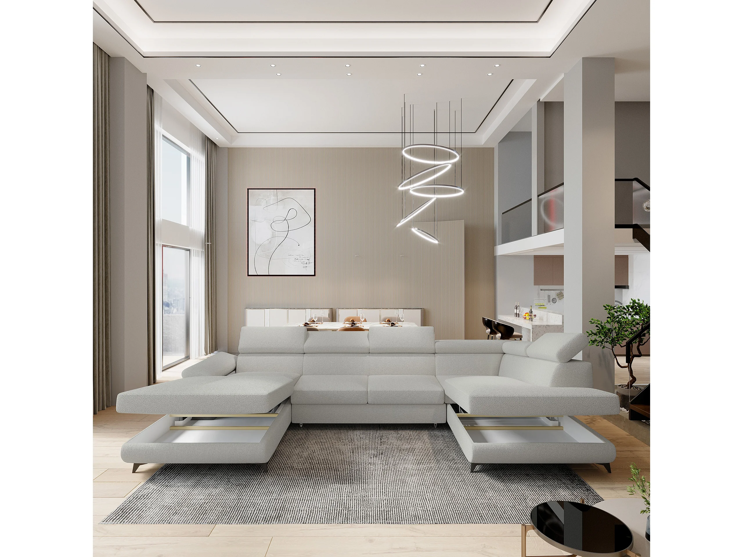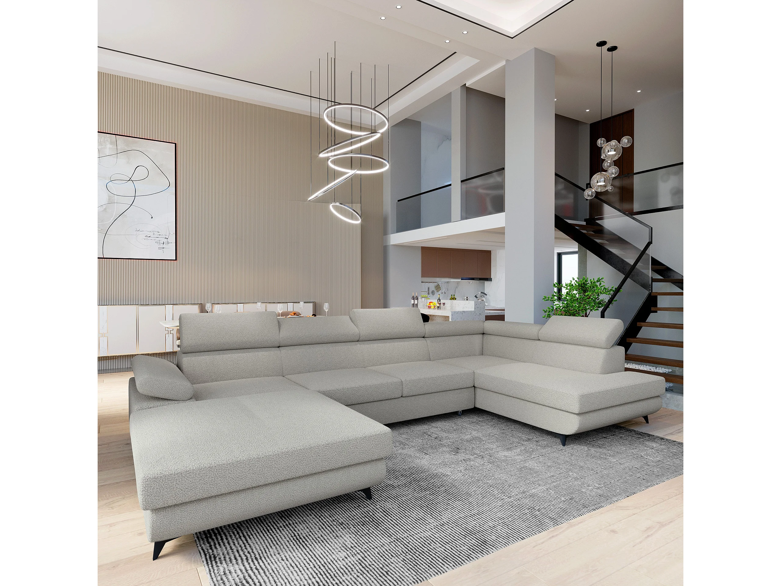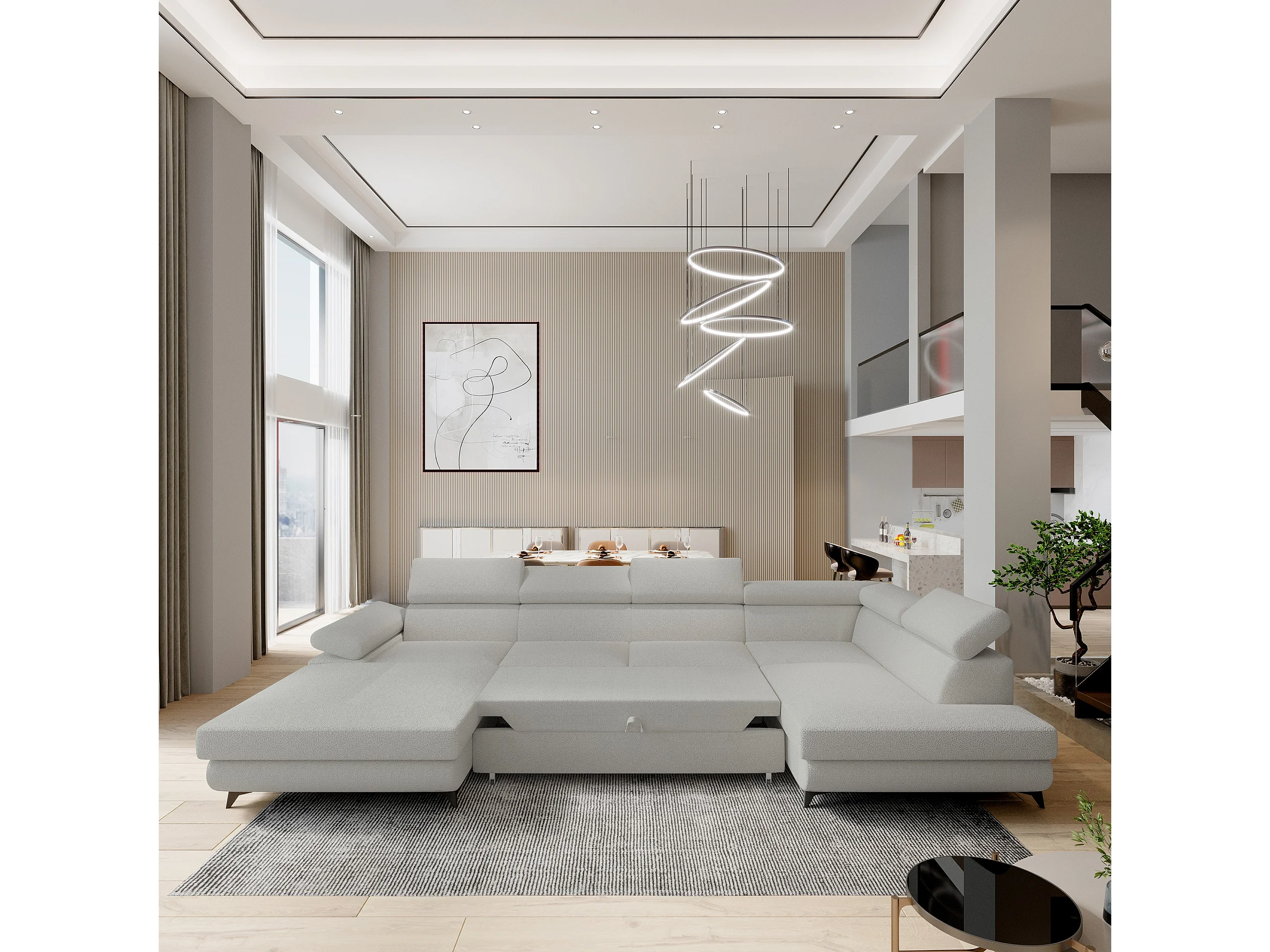 Canapé D'angle Rubano Gris Clair En Bouclé Avec Fonction De Couchage