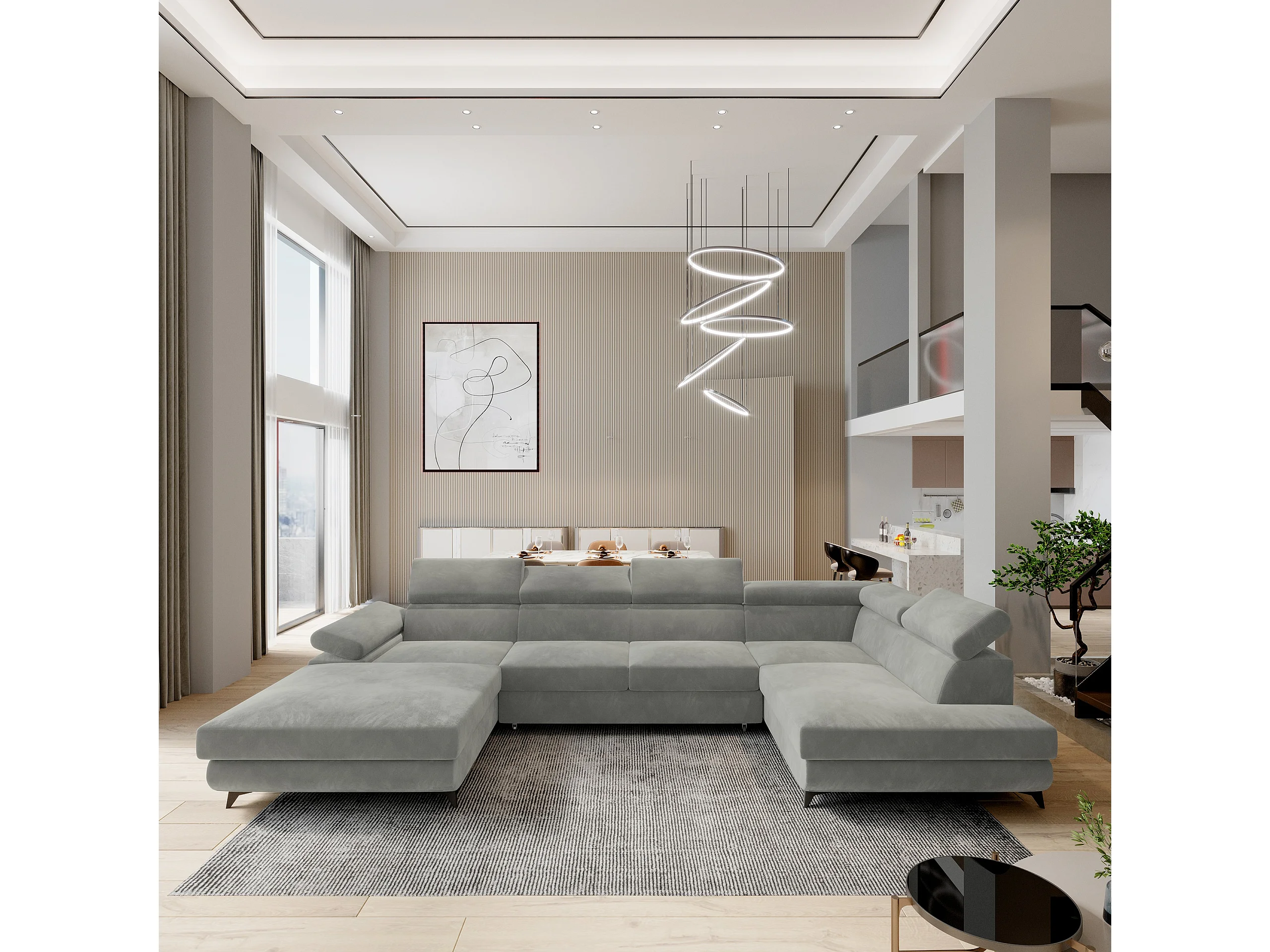 Canapé D'angle Rubano Gris Clair En Velours Avec Fonction De Couchage