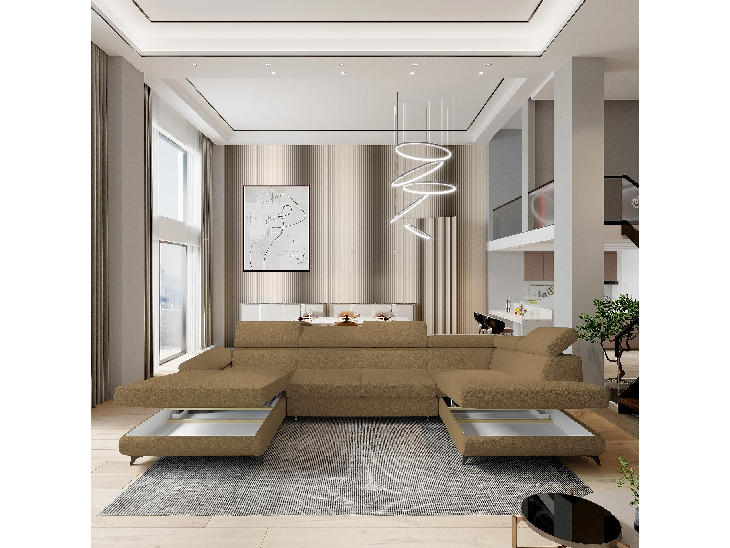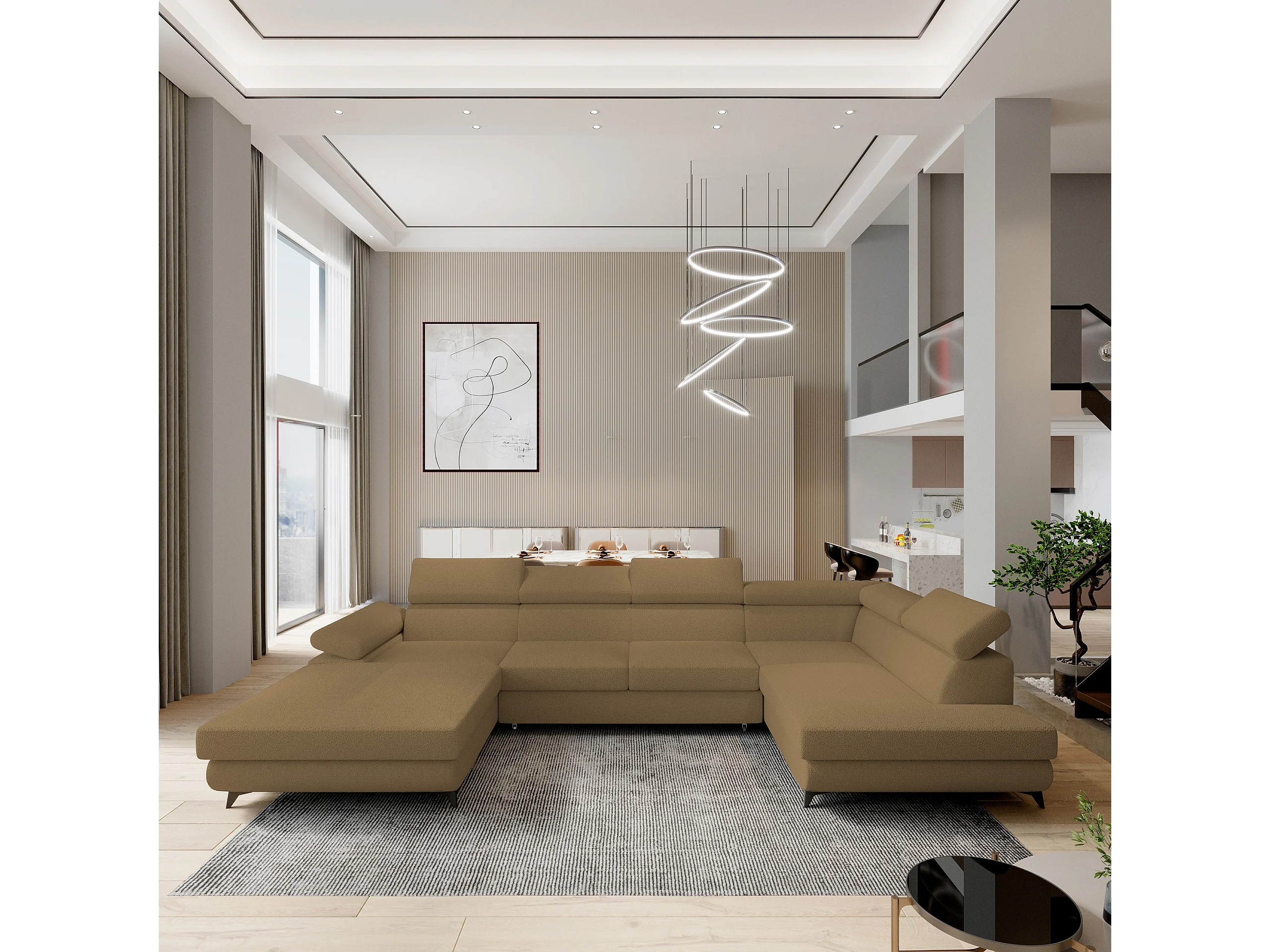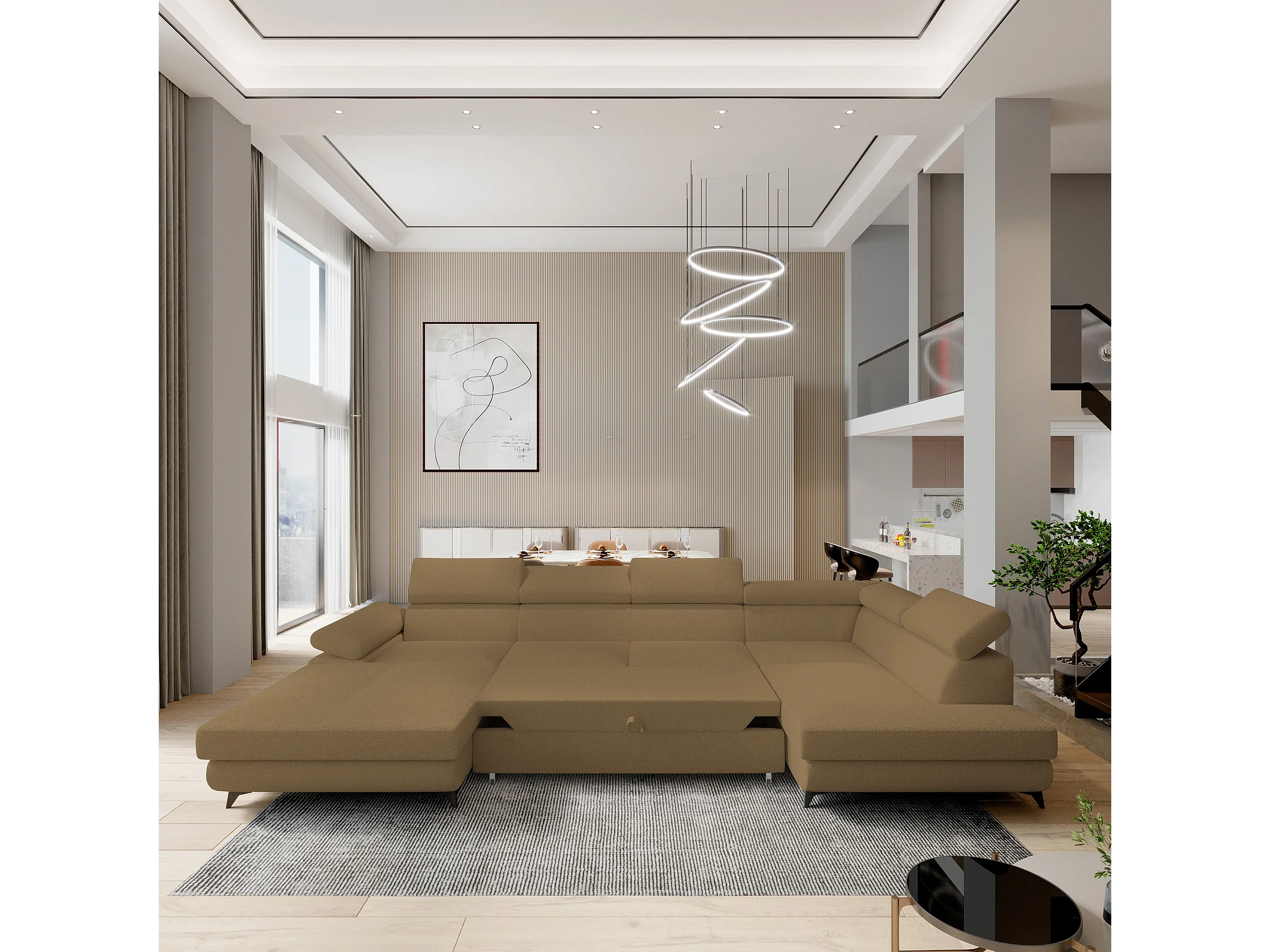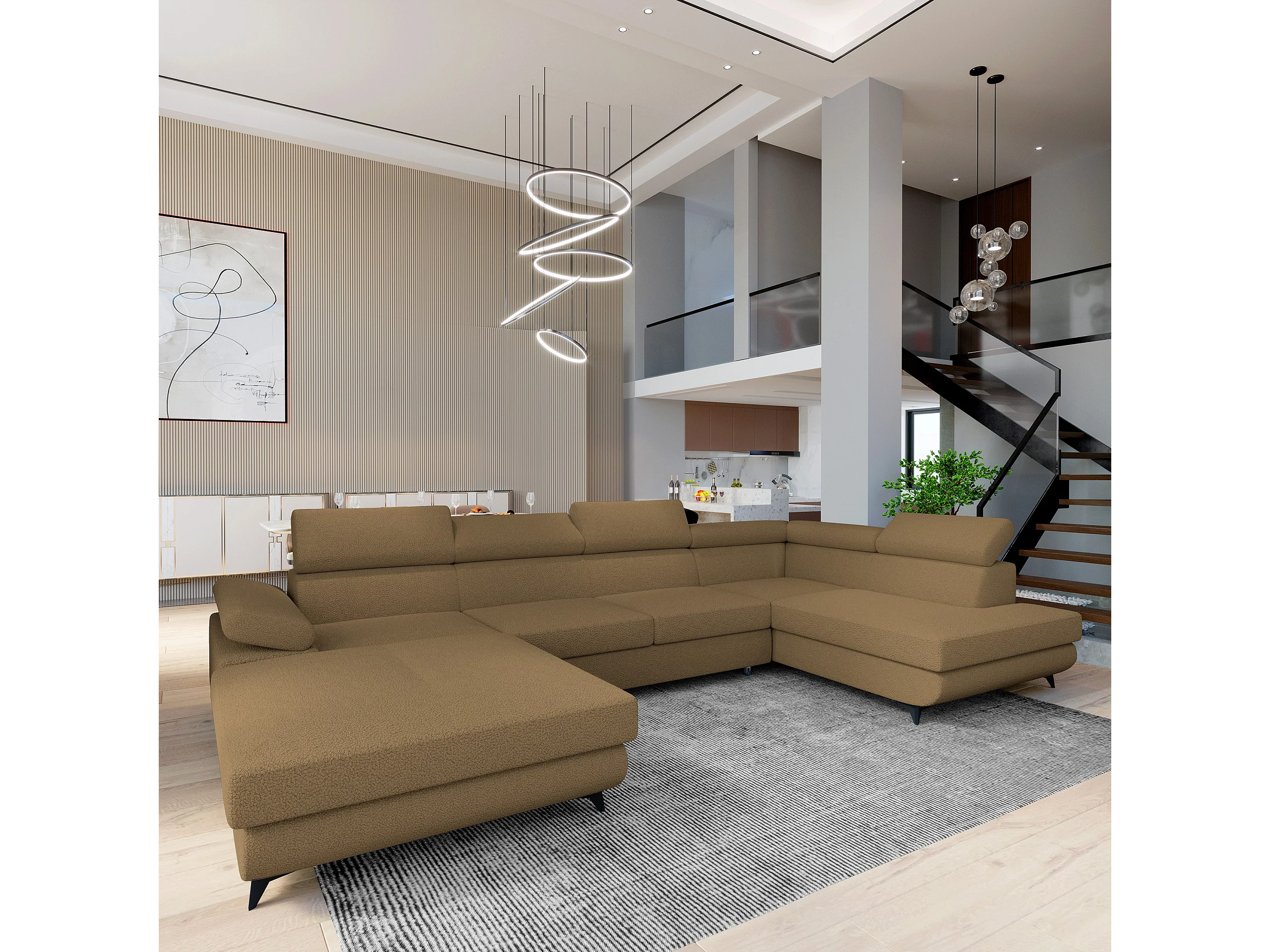 Canapé D'angle Rubano Orange En Bouclé Avec Fonction De Couchage