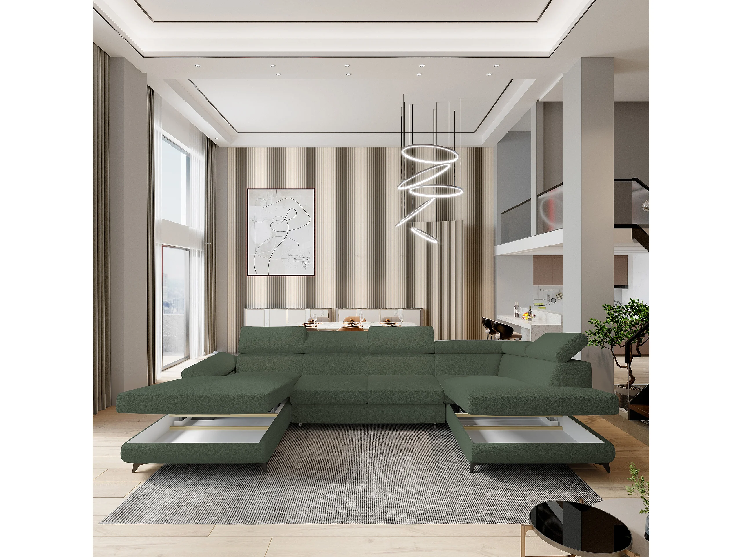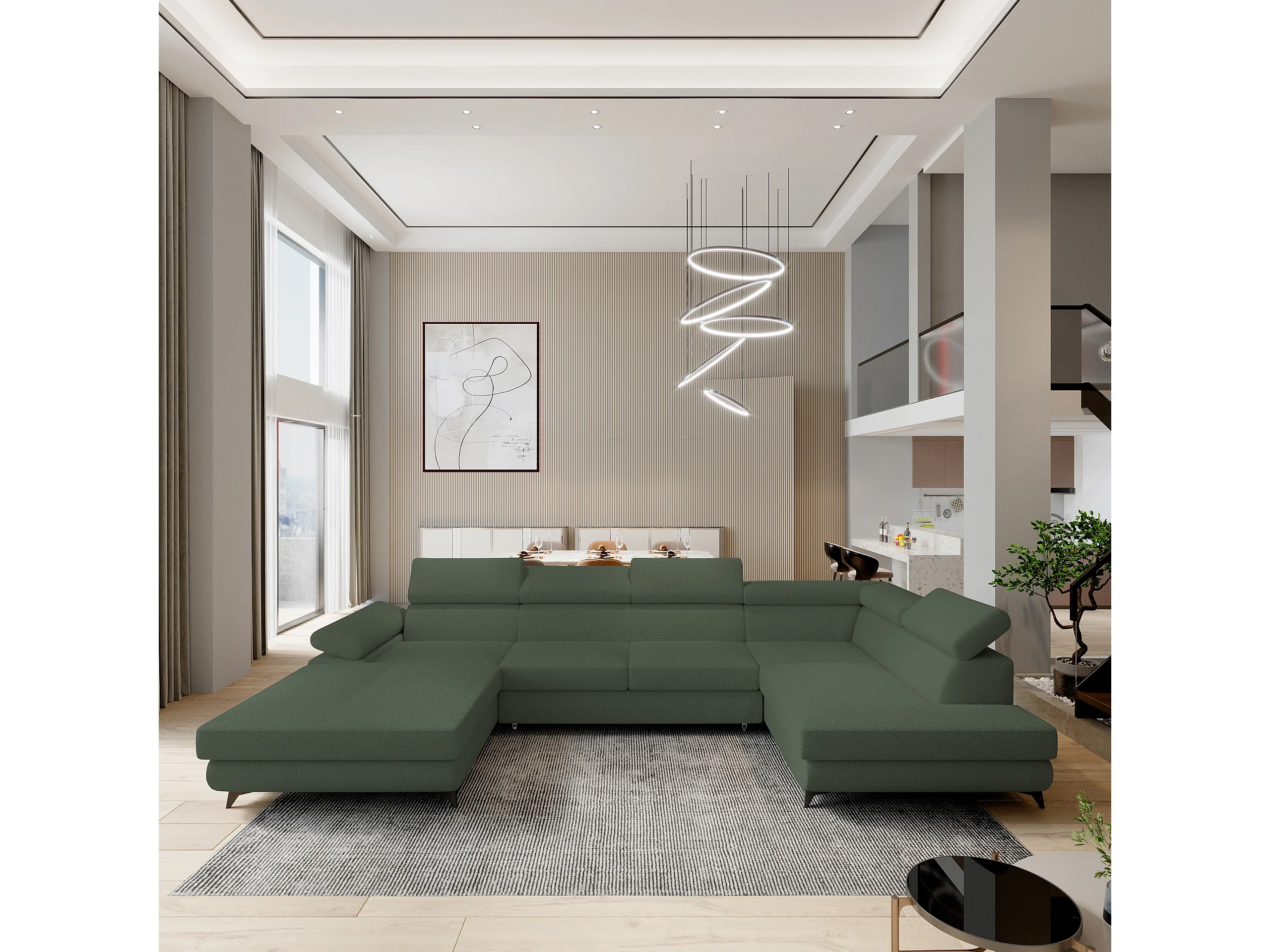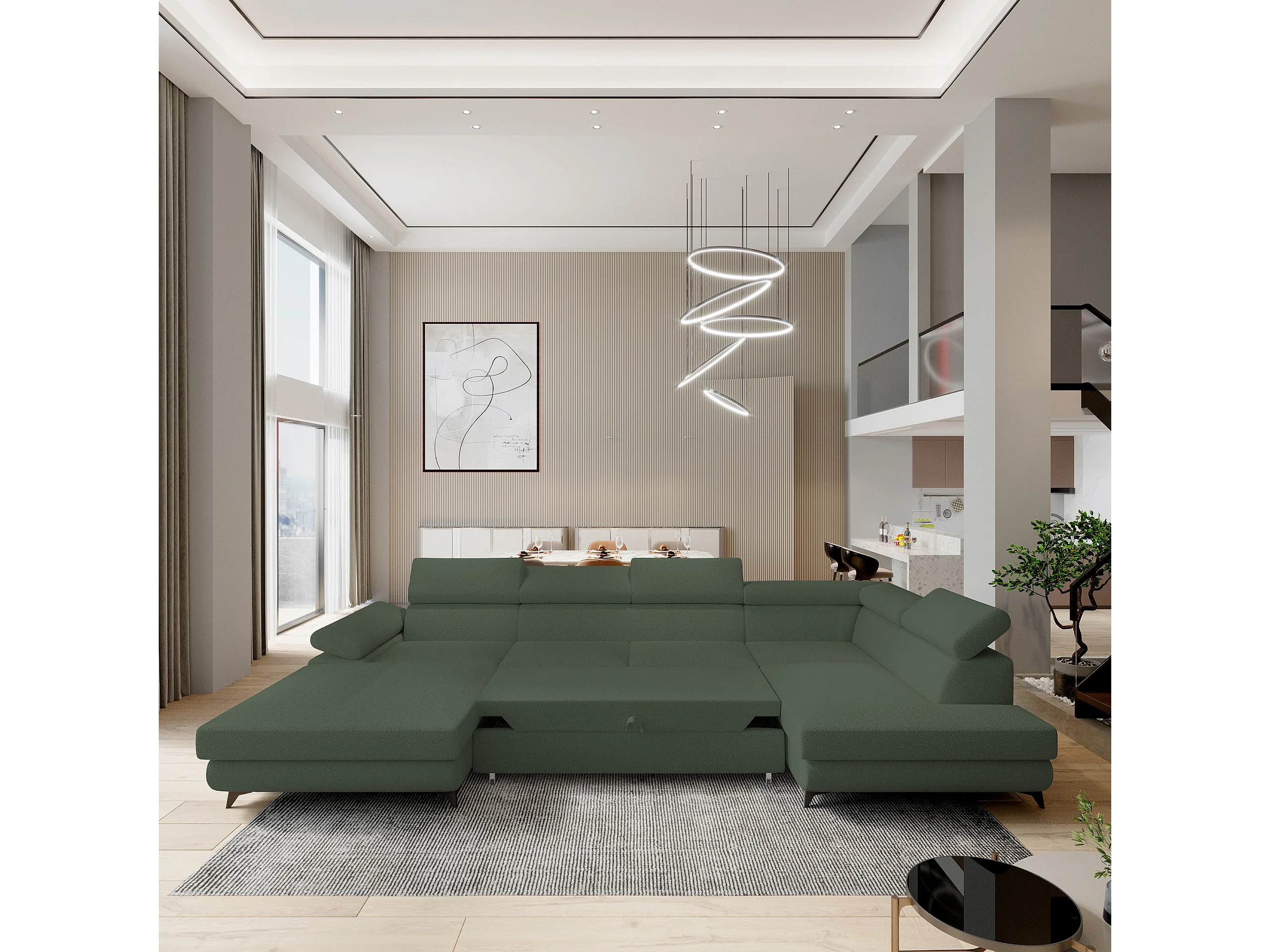 Canapé D'angle Rubano Vert En Bouclé Avec Fonction De Couchage