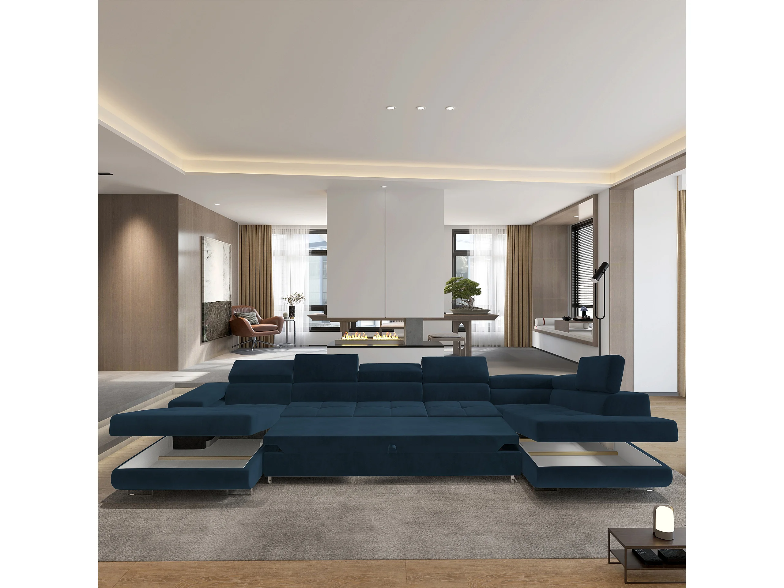 Canapé D'angle Toriva Bleu En Velours Avec Fonction De Couchage