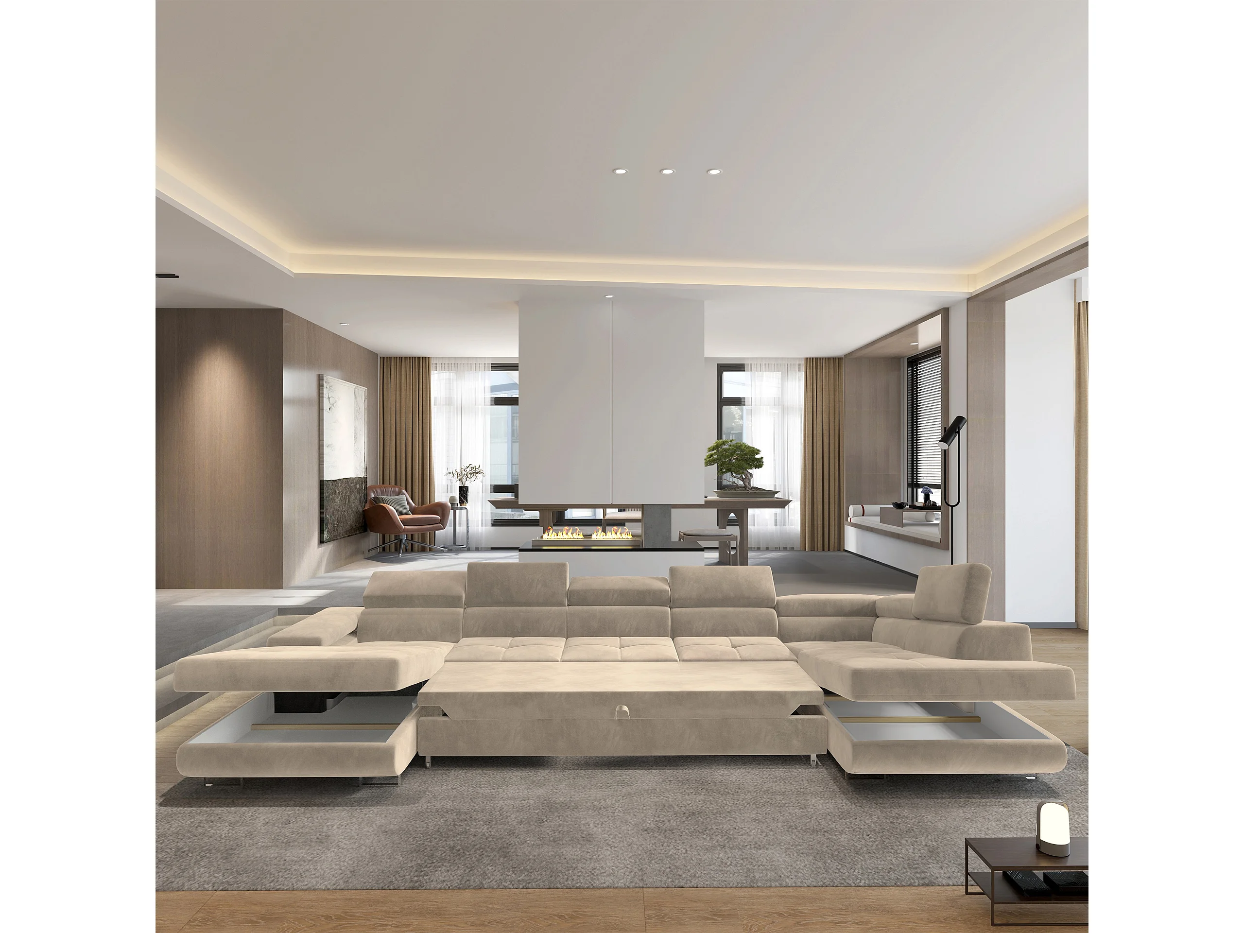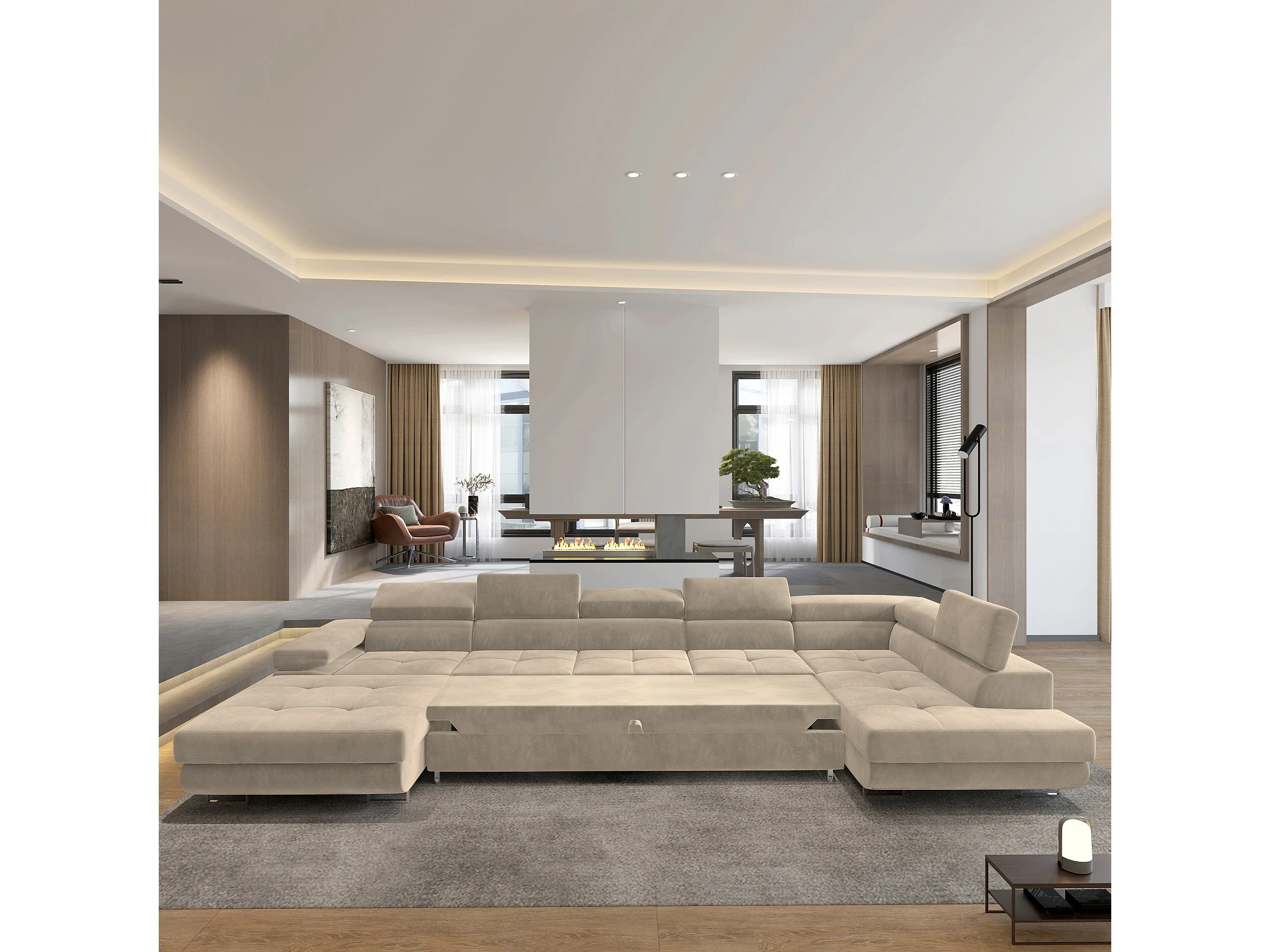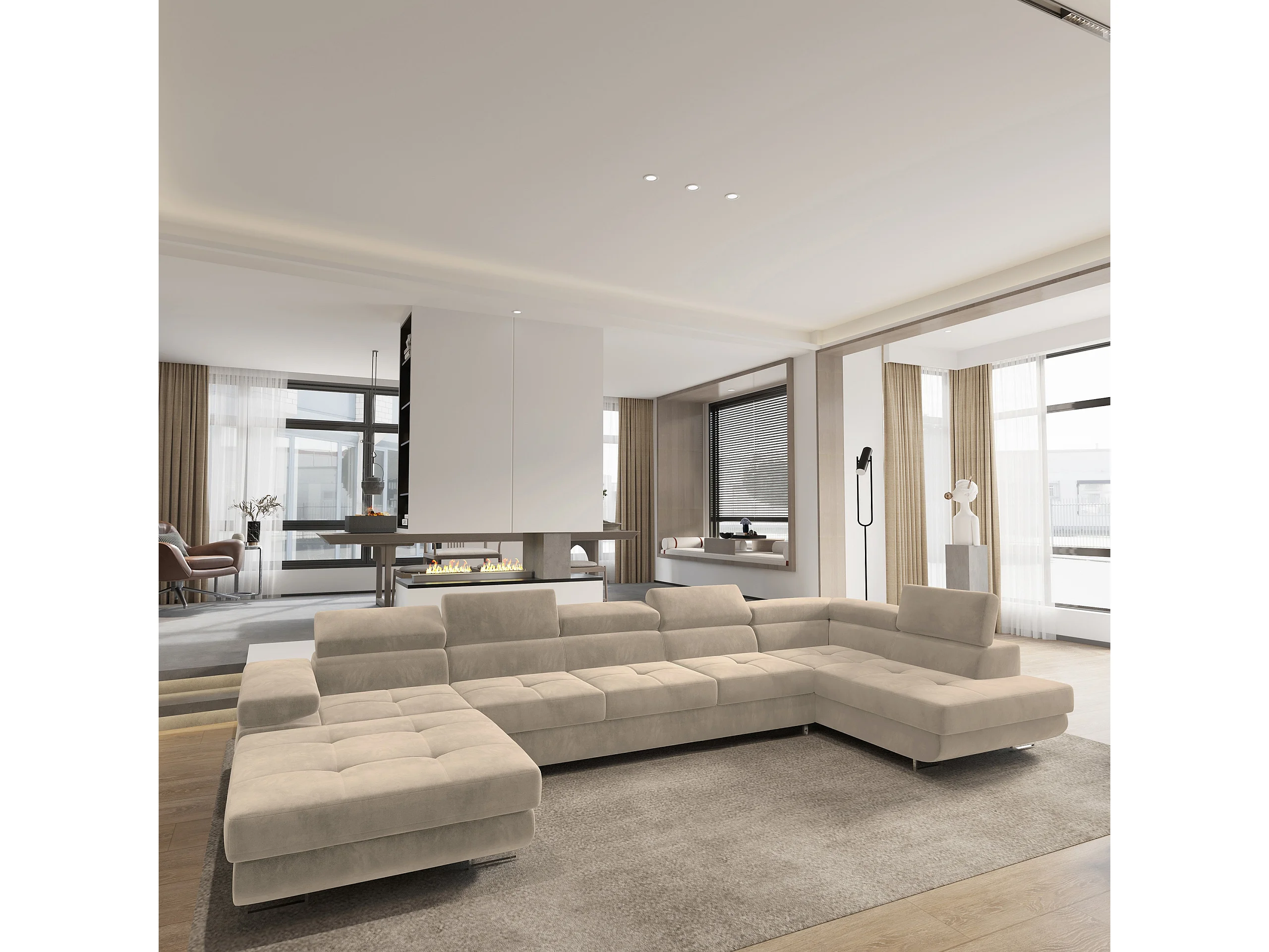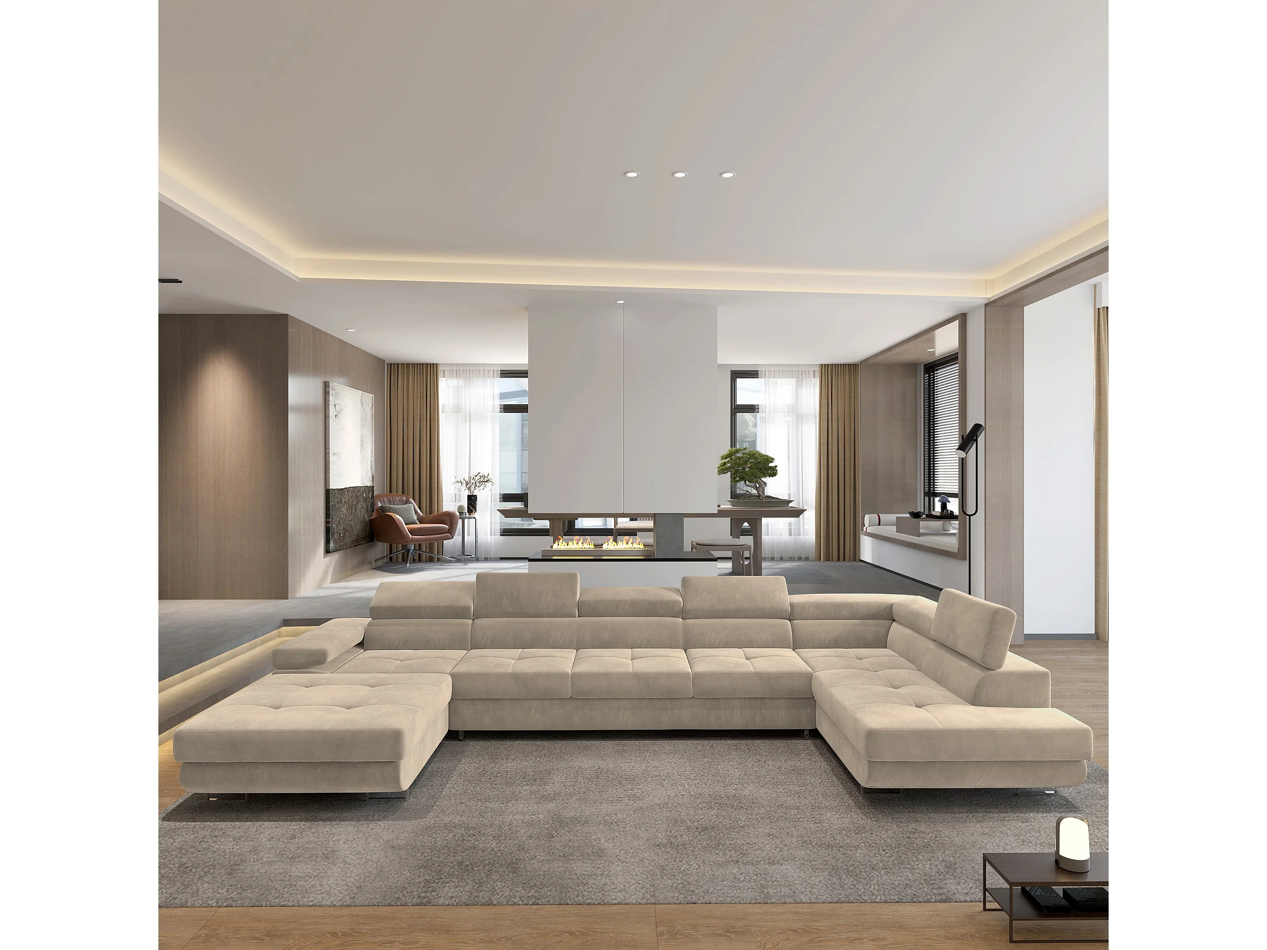 Canapé D'angle Toriva Crème En Velours Avec Fonction De Couchage
