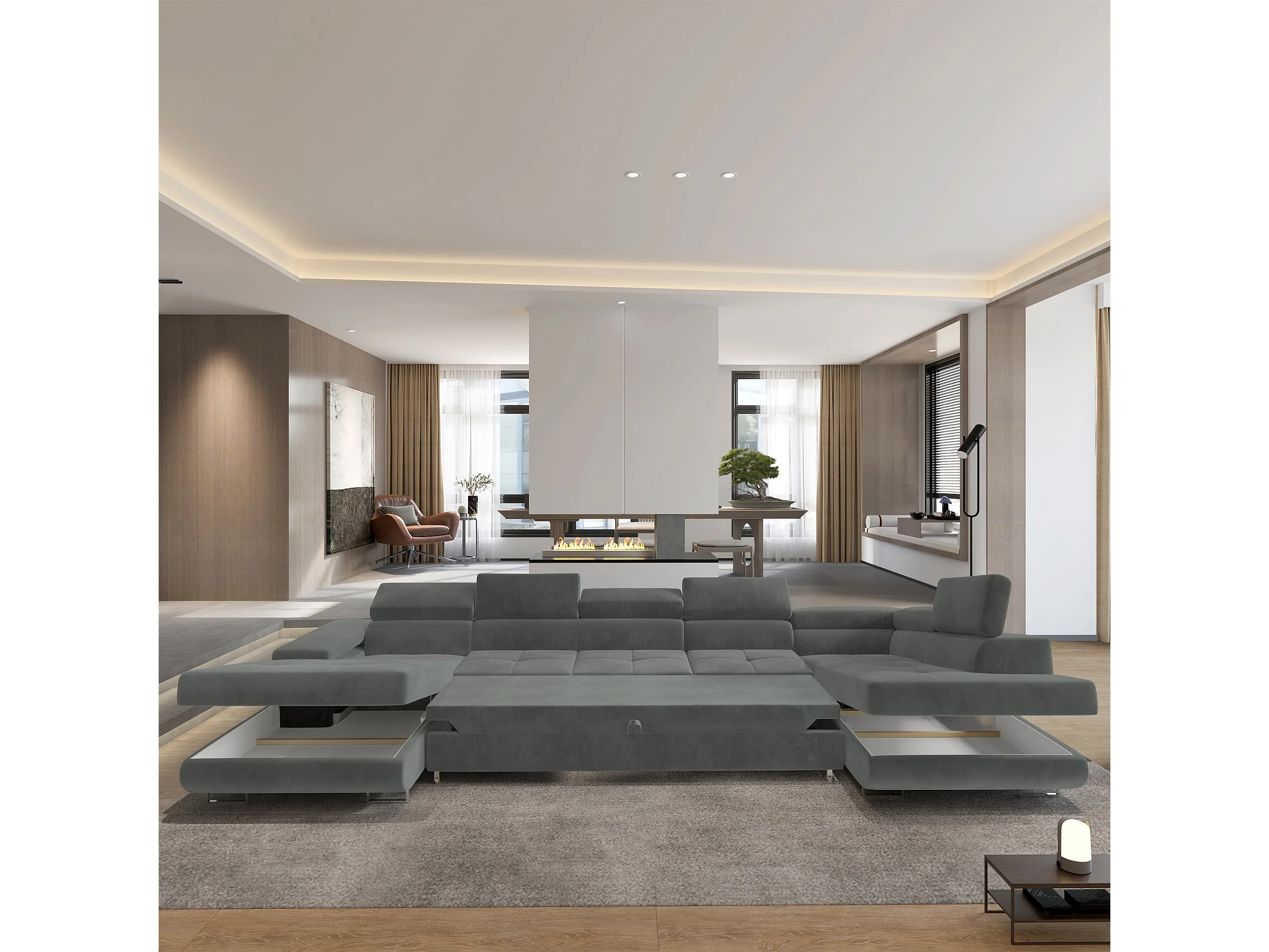 Canapé D'angle Toriva Gris En Velours Avec Fonction De Couchage