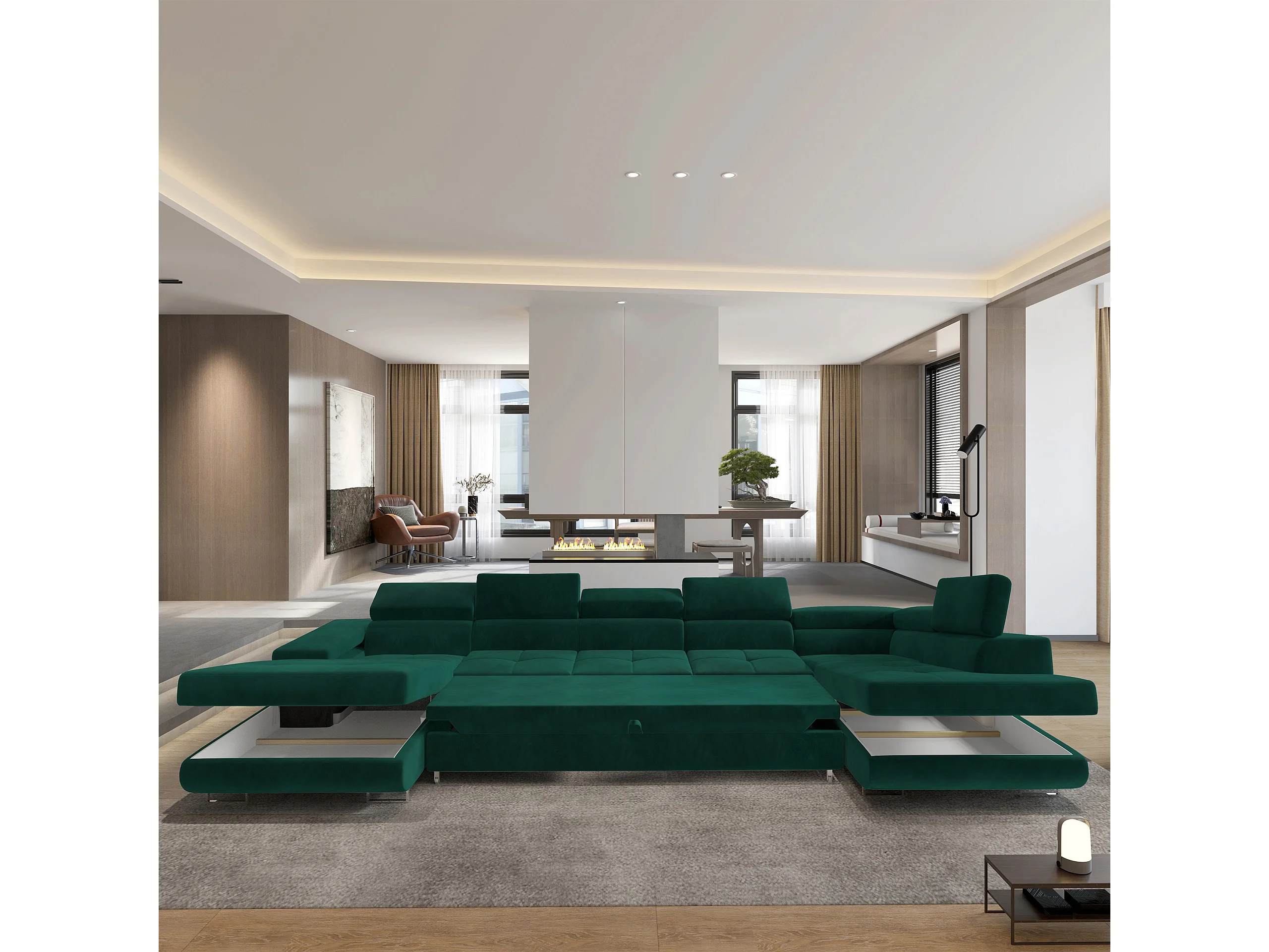 Canapé D'angle Toriva Vert Sapin En Velours Avec Fonction De Couchage