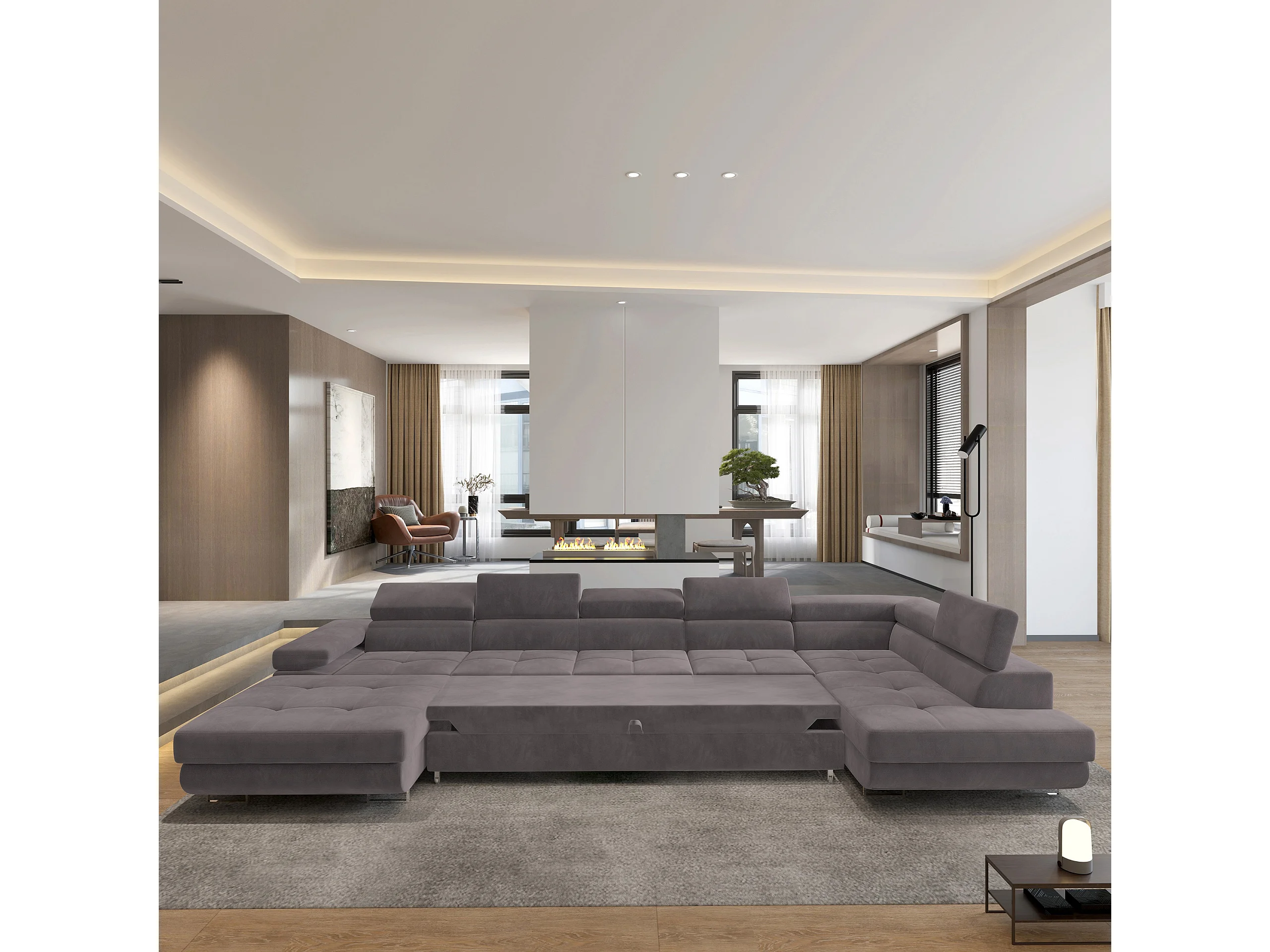 Canapé D'angle Toriva Violet En Velours Avec Fonction De Couchage