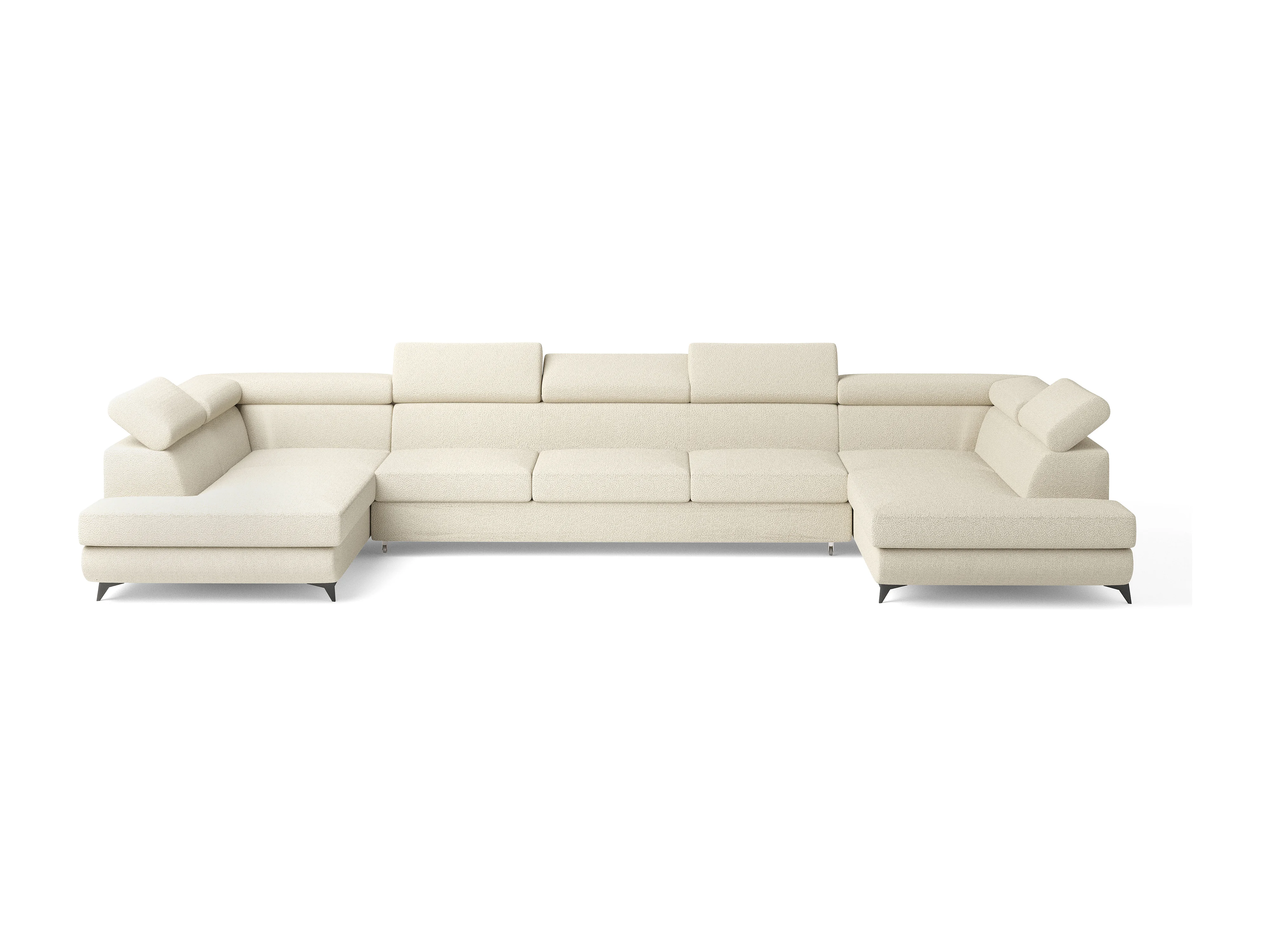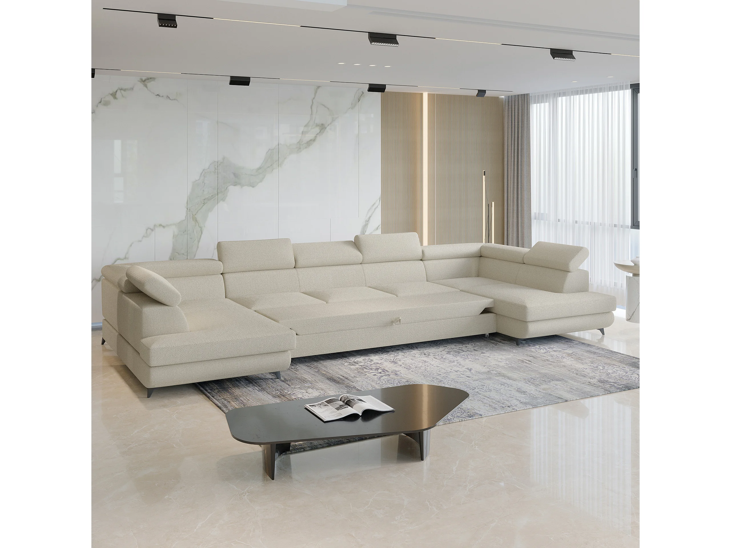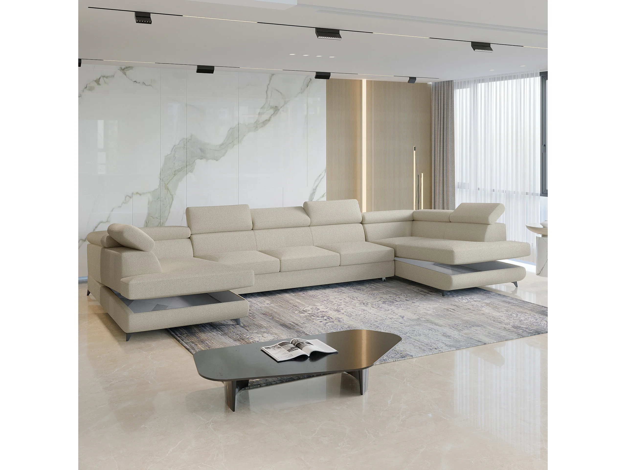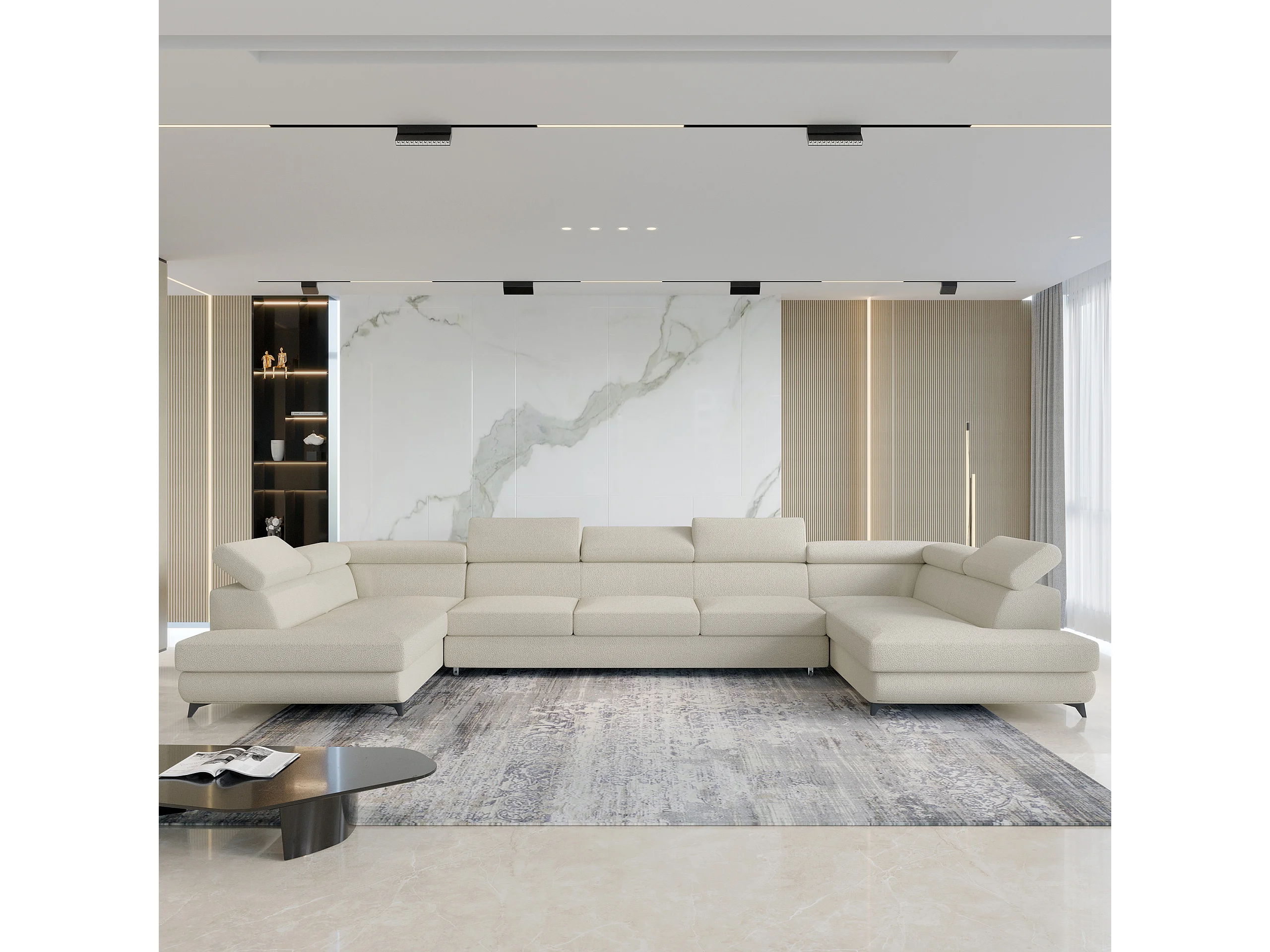 Canapé d'angle URMANO Crème en bouclé avec fonction de couchage