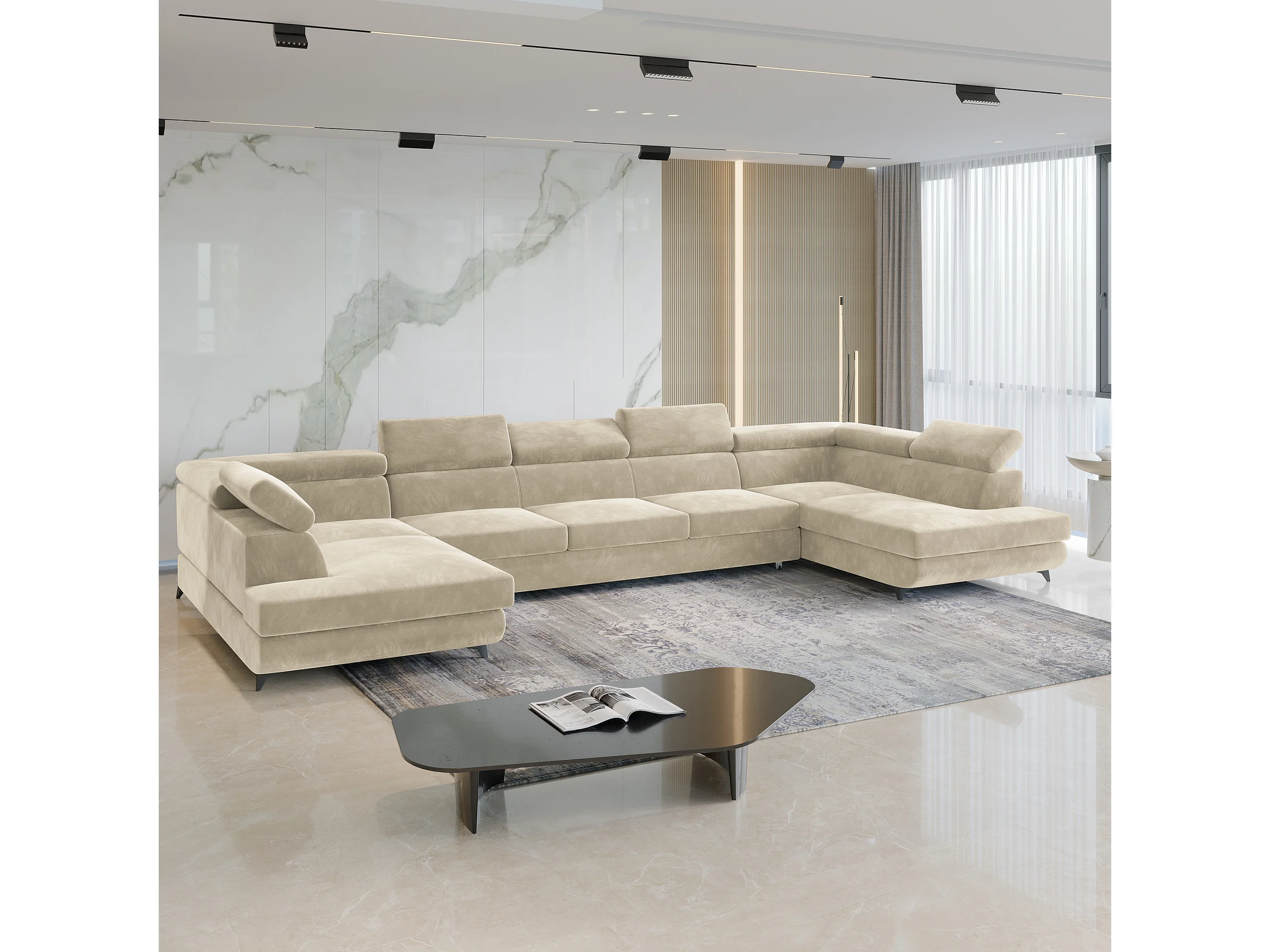 Canapé d'angle URMANO Crème en velours avec fonction de couchage