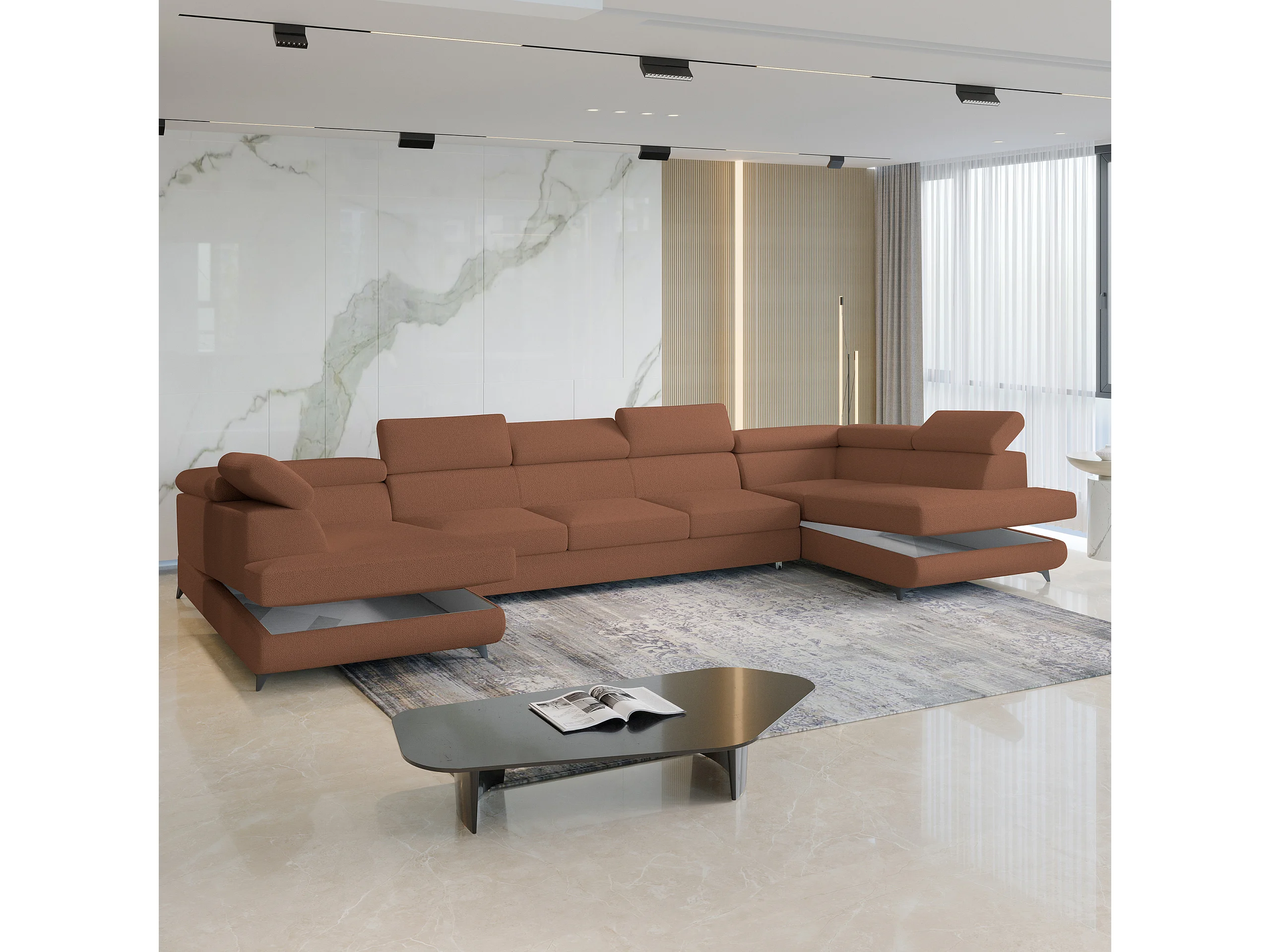 Canapé d'angle URMANO Cuivré en bouclé avec fonction de couchage