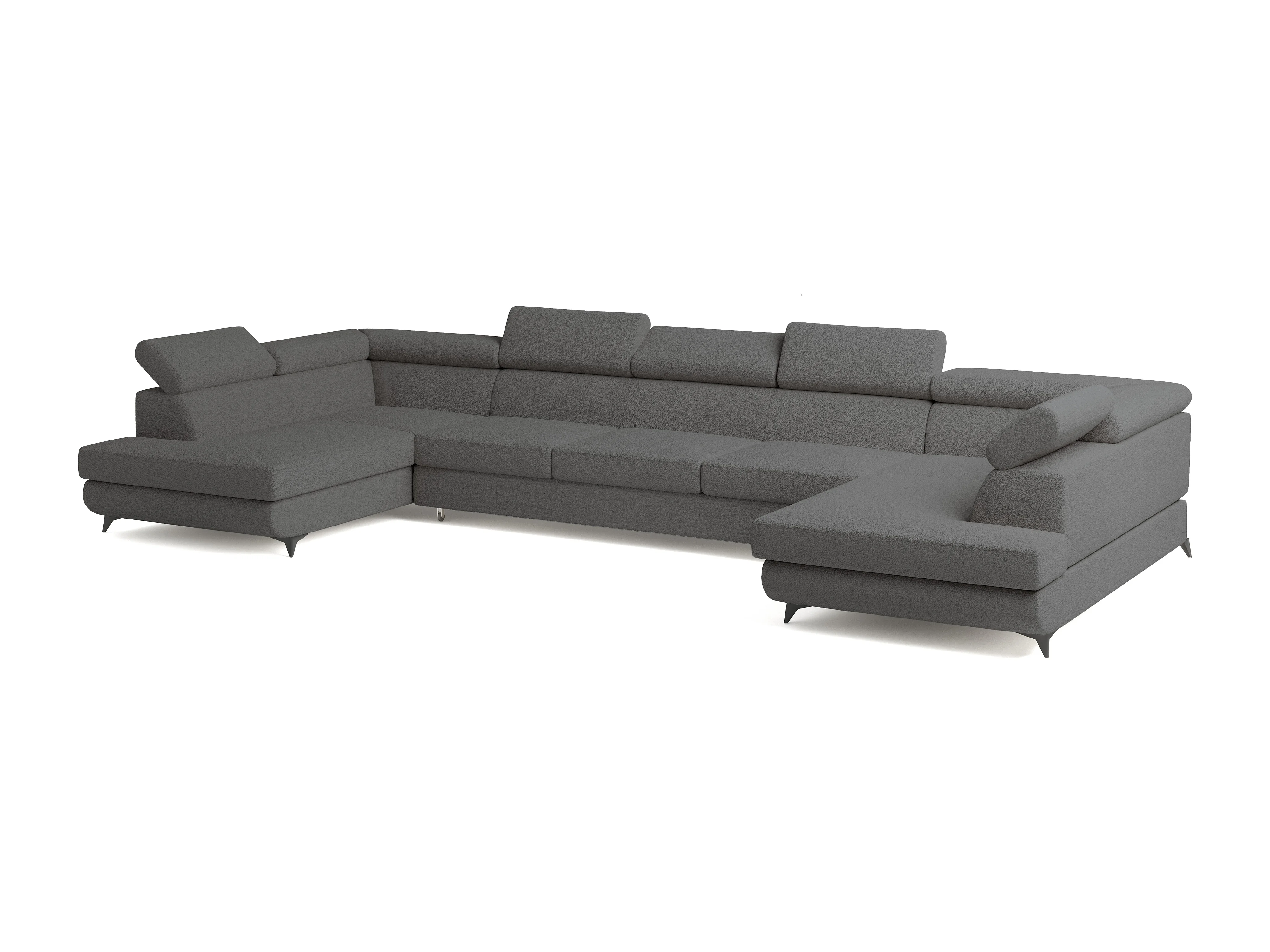 Canapé d'angle URMANO Gris en bouclé avec fonction de couchage