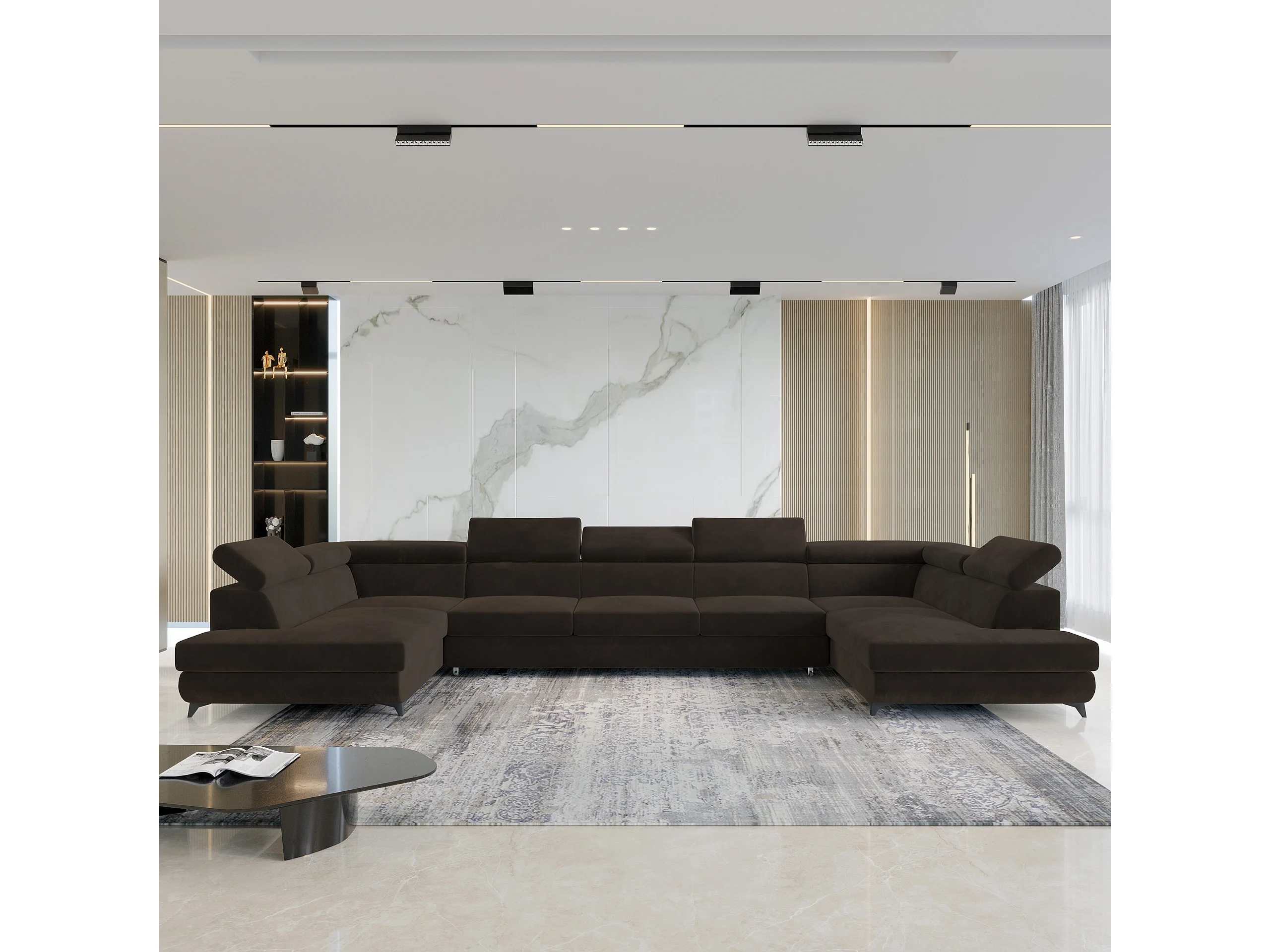 Canapé d'angle URMANO Marron en velours avec fonction de couchage