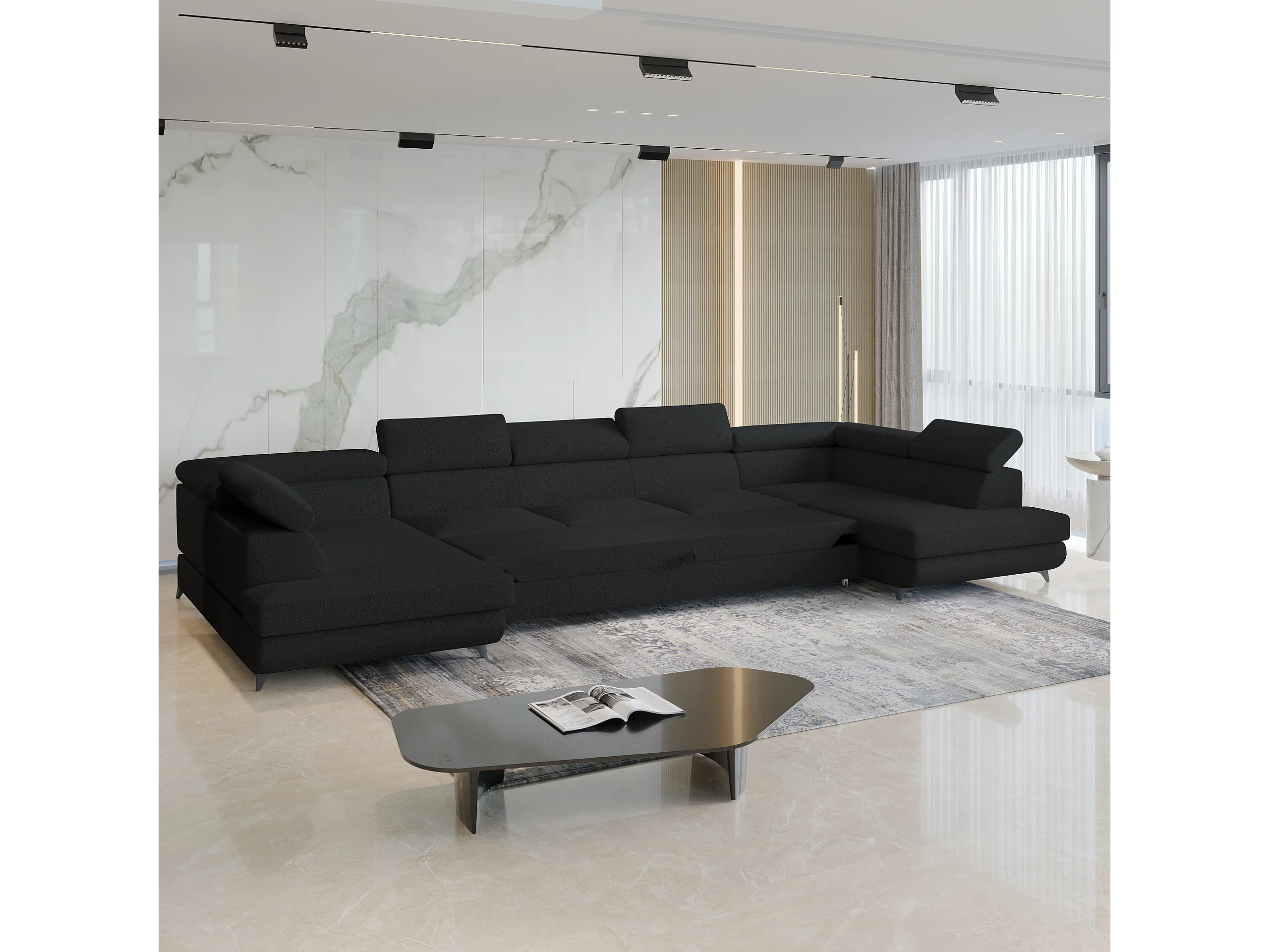 Canapé d'angle URMANO Noir en bouclé avec fonction de couchage