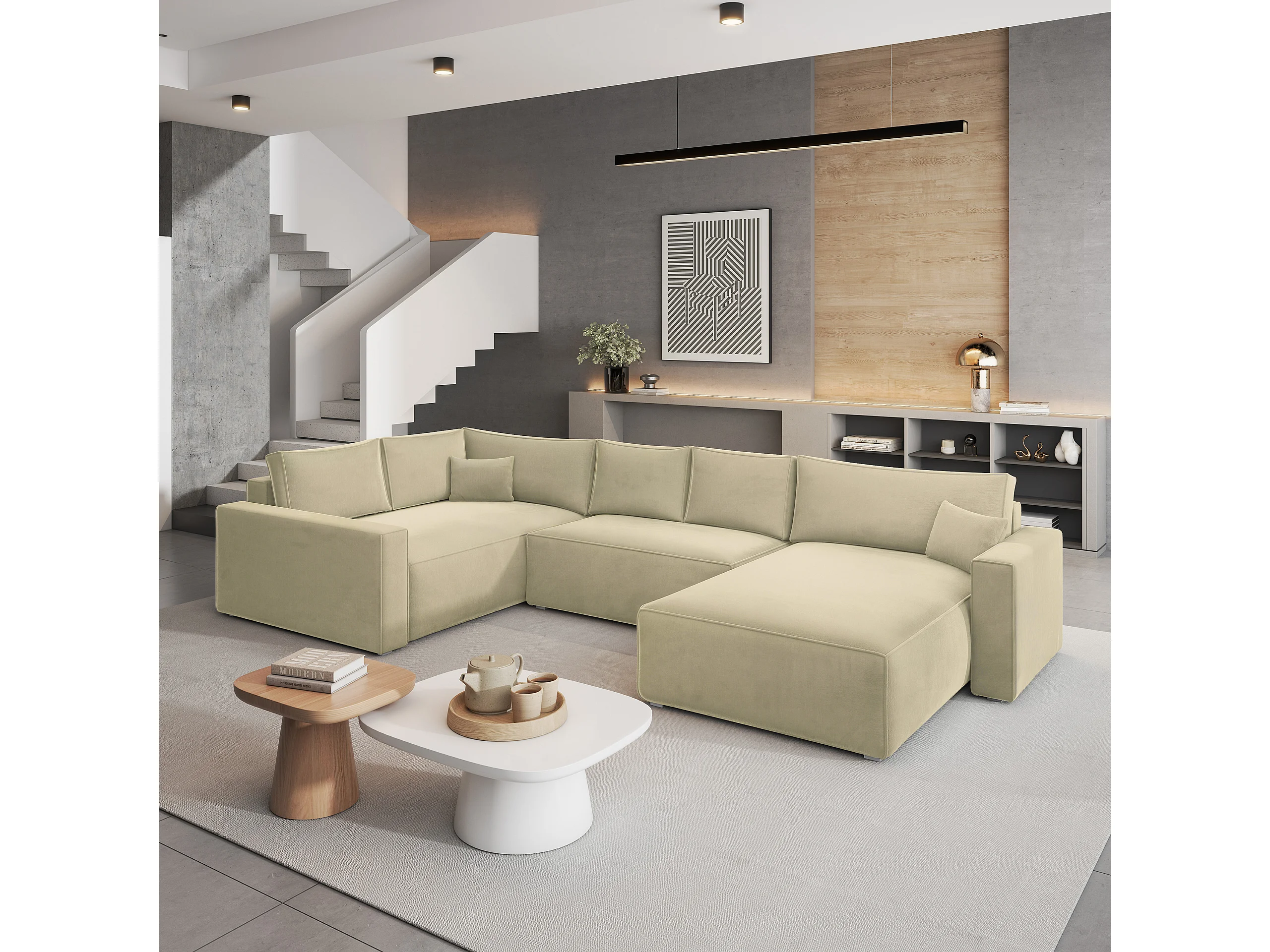 Canapé D'angle Velami Crème En Velours Avec Fonction De Couchage