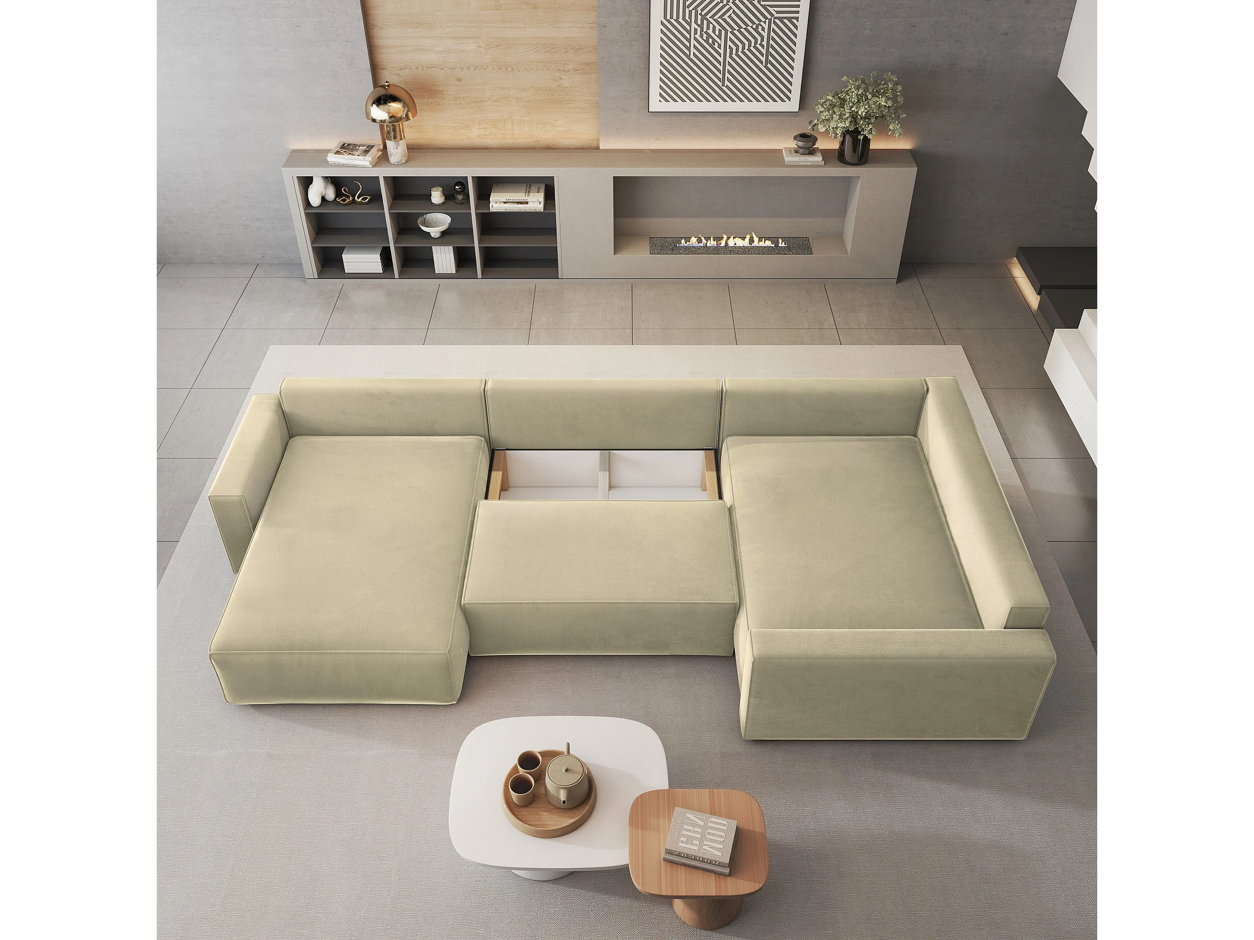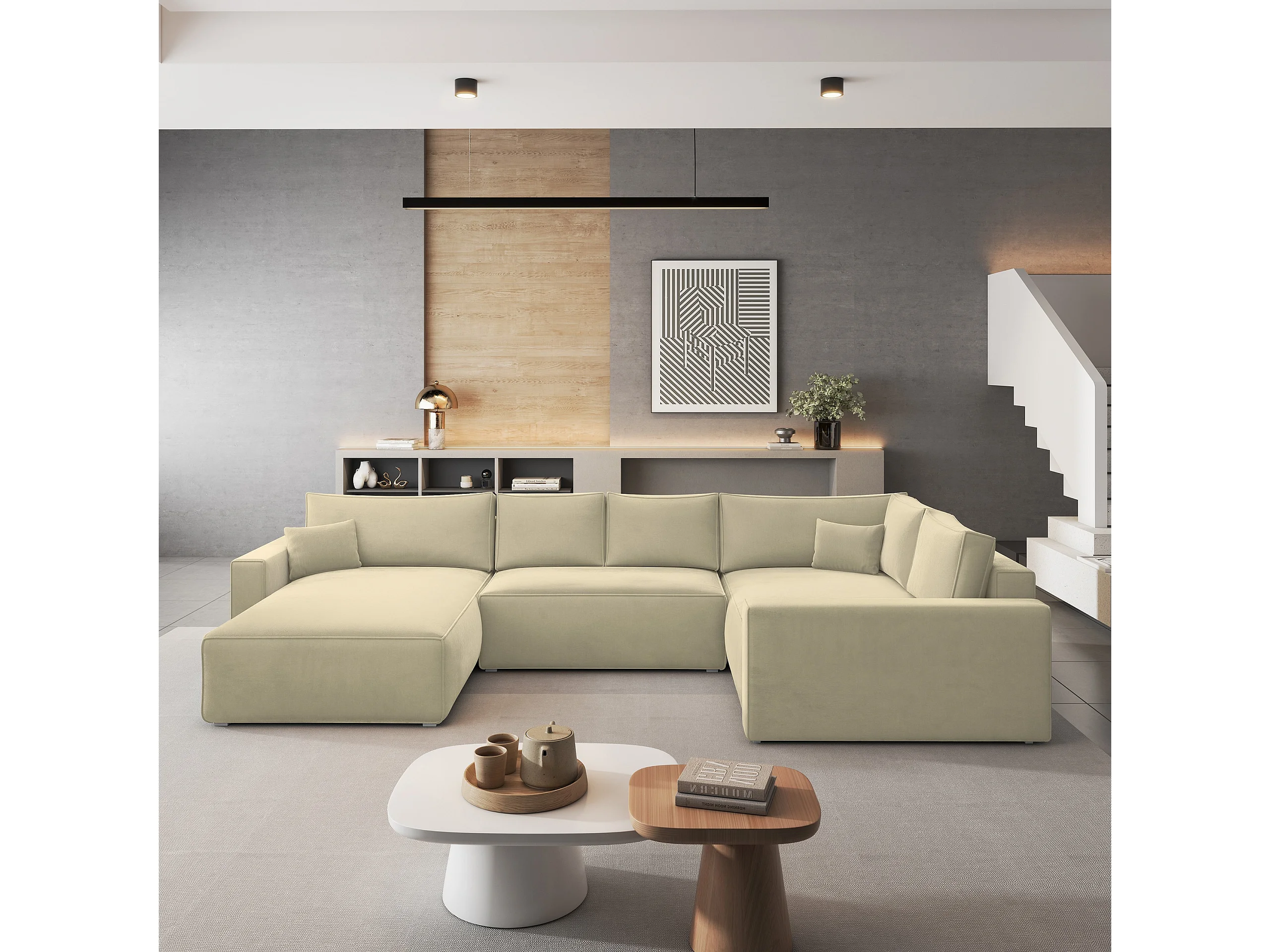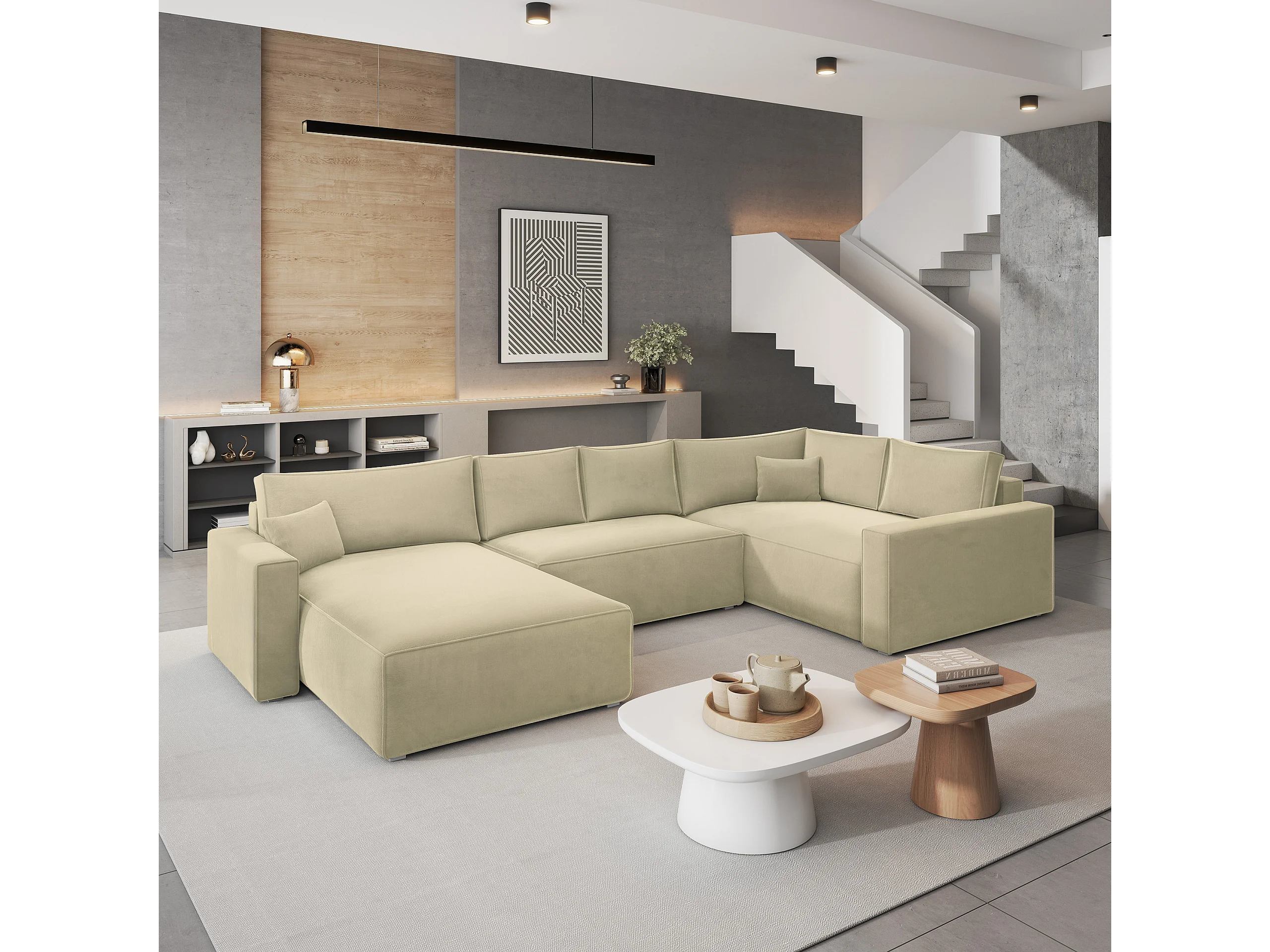 Canapé D'angle Velami Crème En Velours Avec Fonction De Couchage